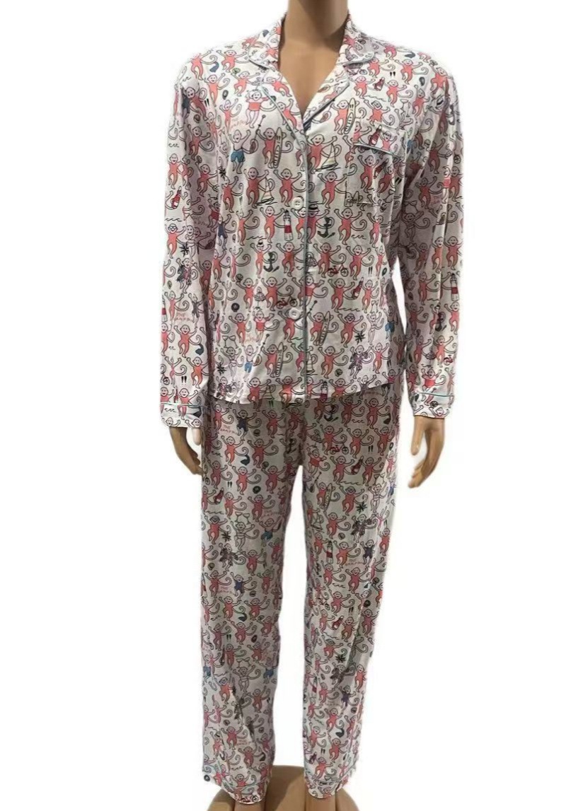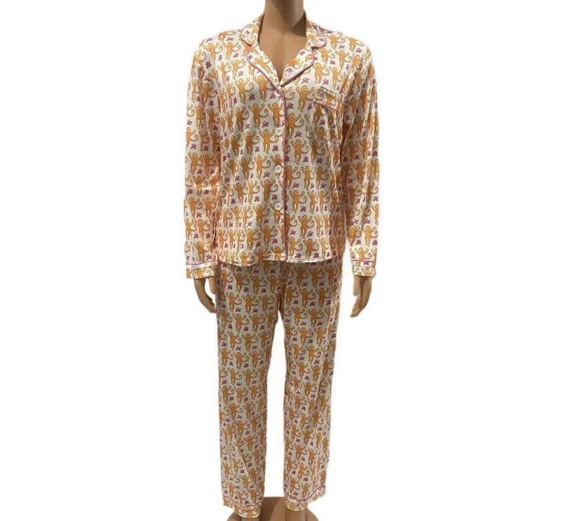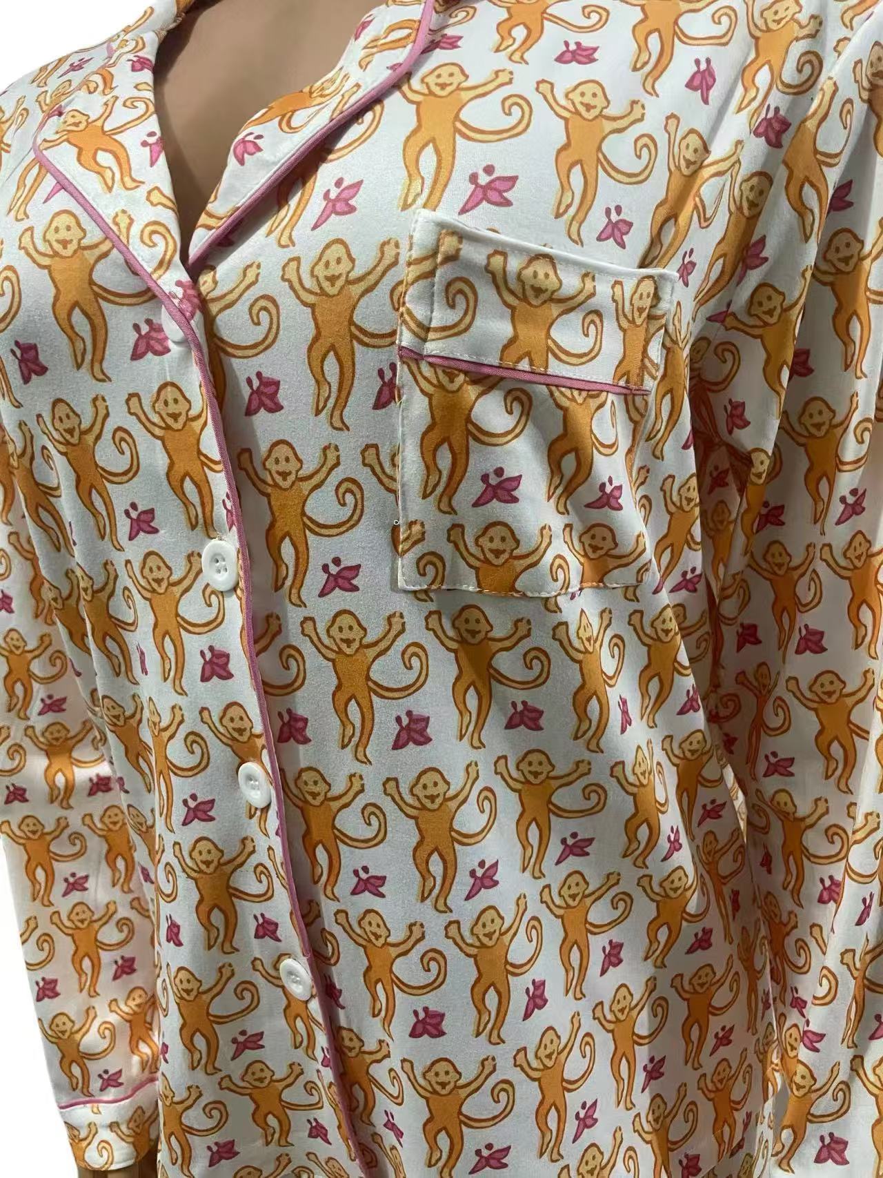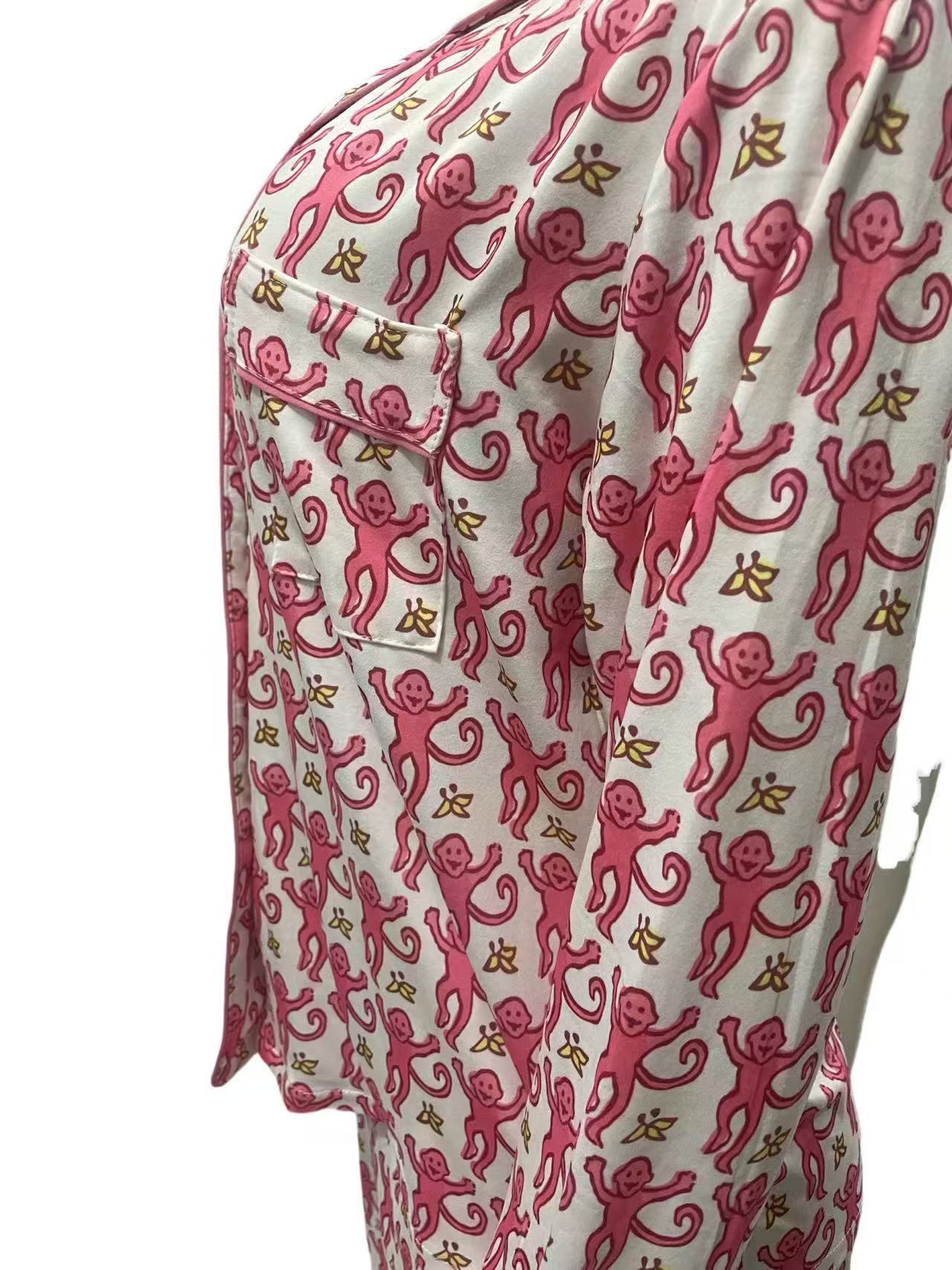 2024 년 가을 폭발 유럽과 미국의 집 옷 긴 소매 인쇄 폴로 레저 세트 국경 간 대외 무역 여성 잠옷 세트