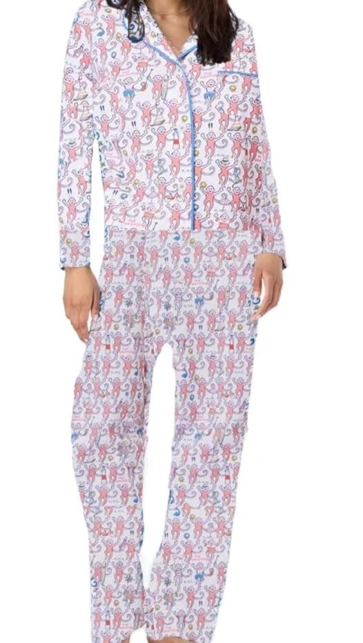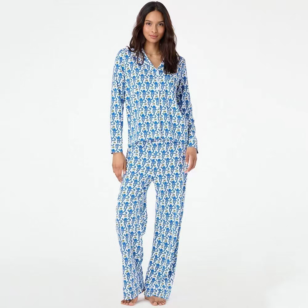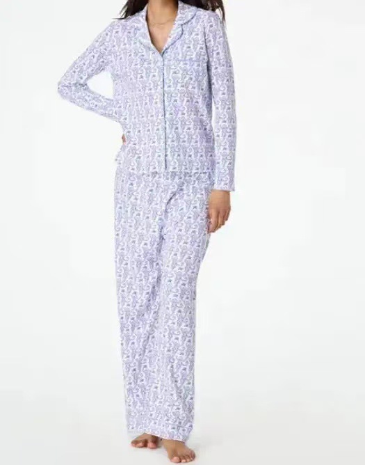 2024 년 가을 폭발 유럽과 미국의 집 옷 긴 소매 인쇄 폴로 레저 세트 국경 간 대외 무역 여성 잠옷 세트스토어 가기