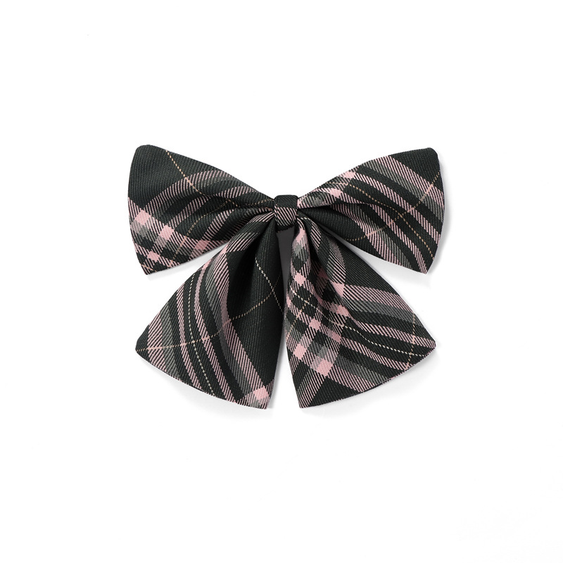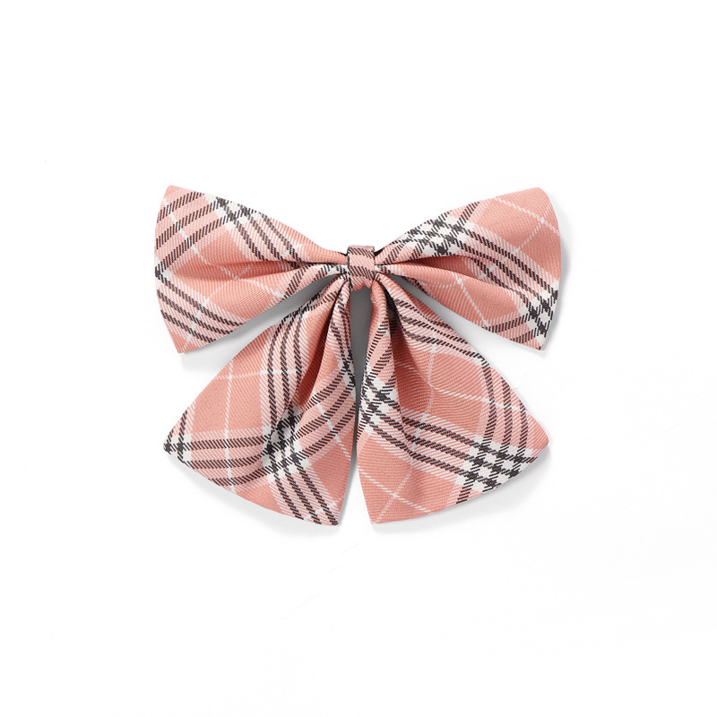 • 피치 핑크 체크 무늬 나비 넥타이