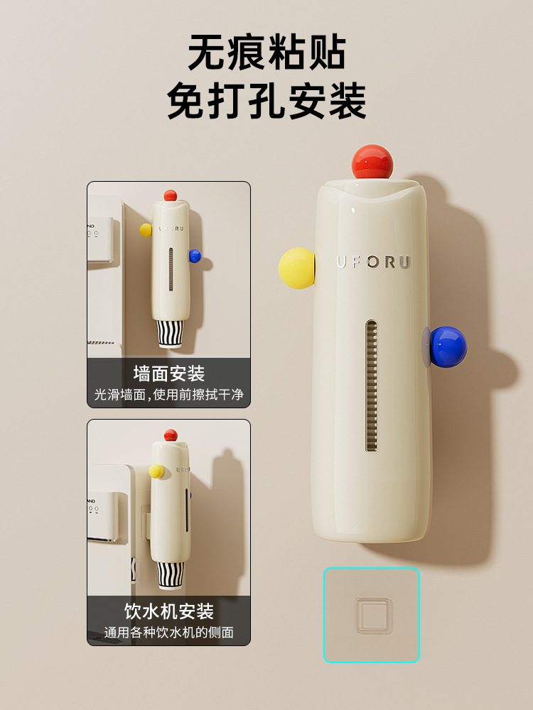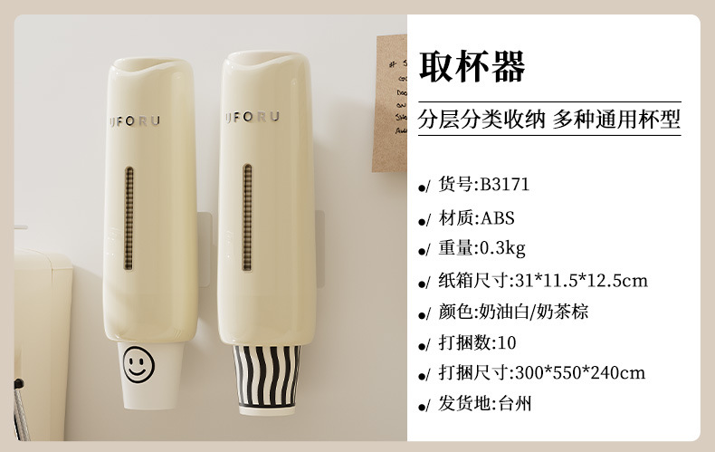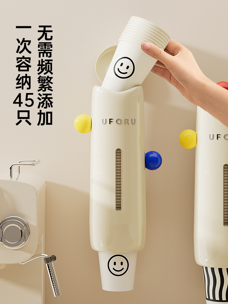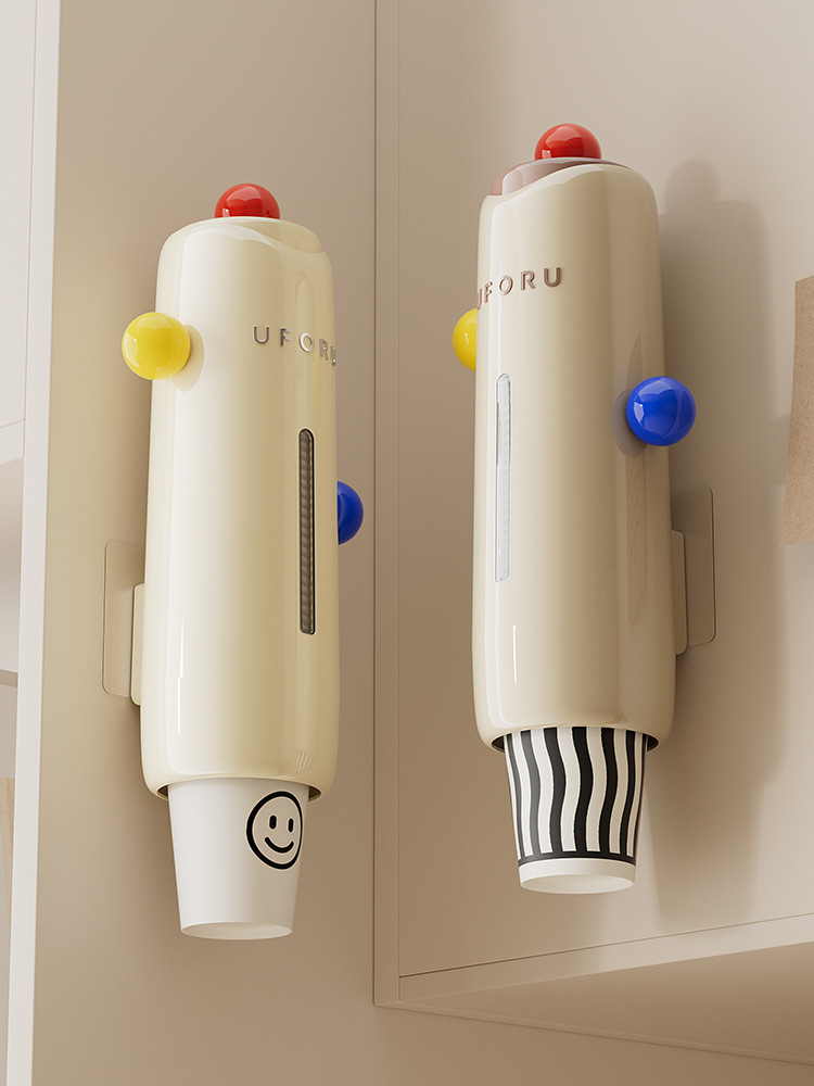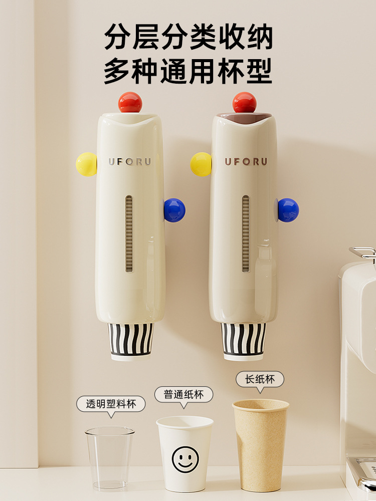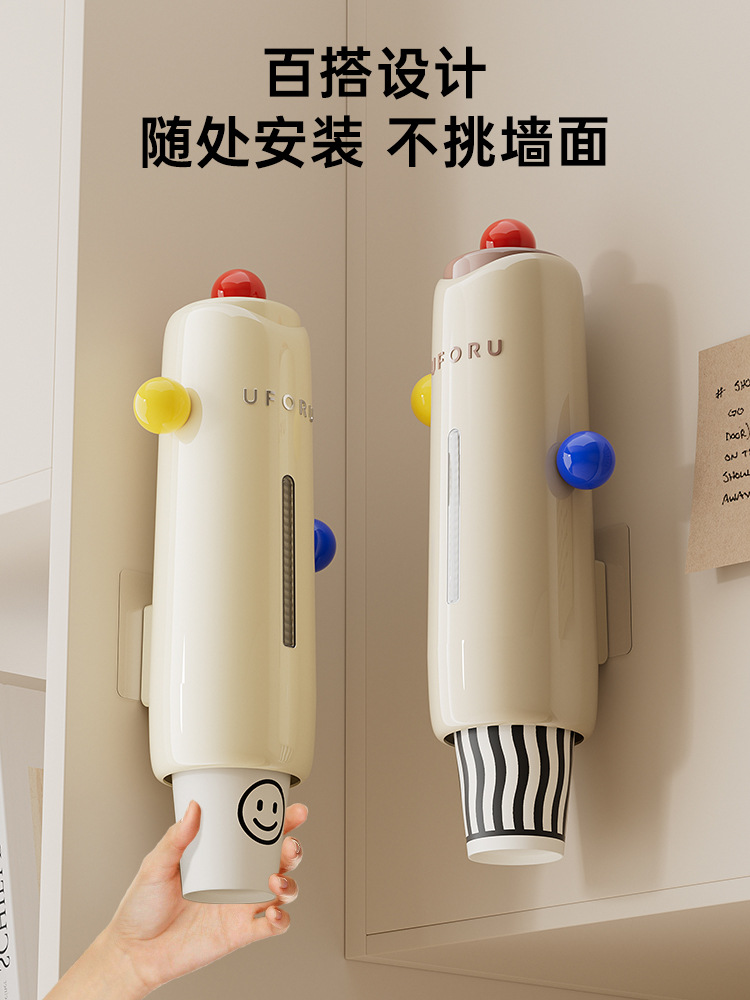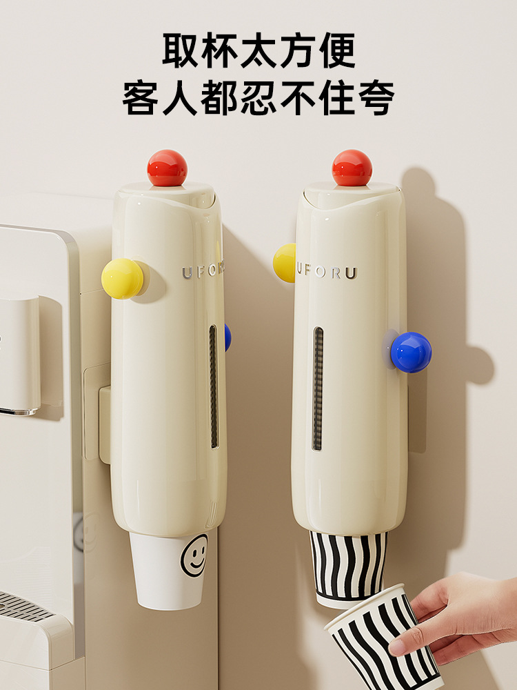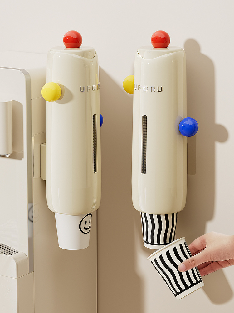 일회용 컵 디스펜서, 무타공 벽걸이형, 정수기 옆 방진 종이컵 홀더, 플라스틱 주방 수납