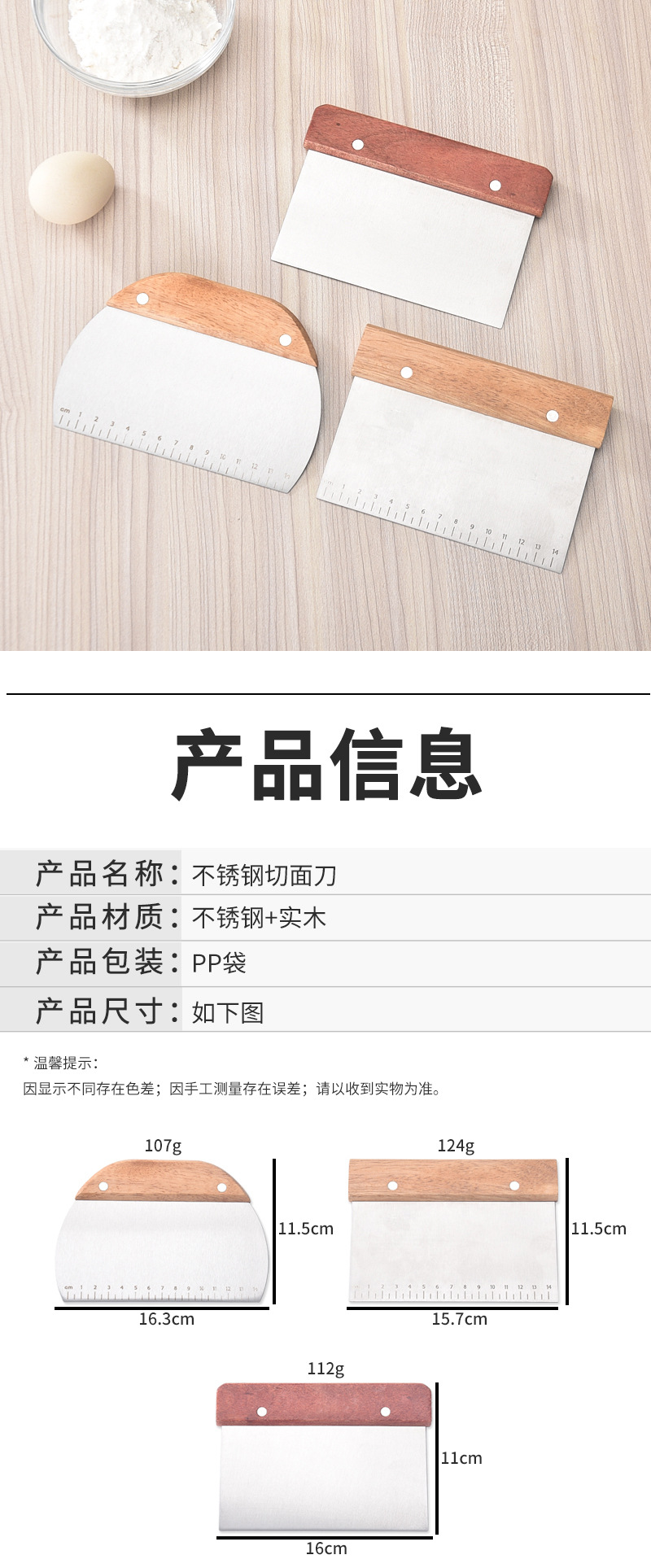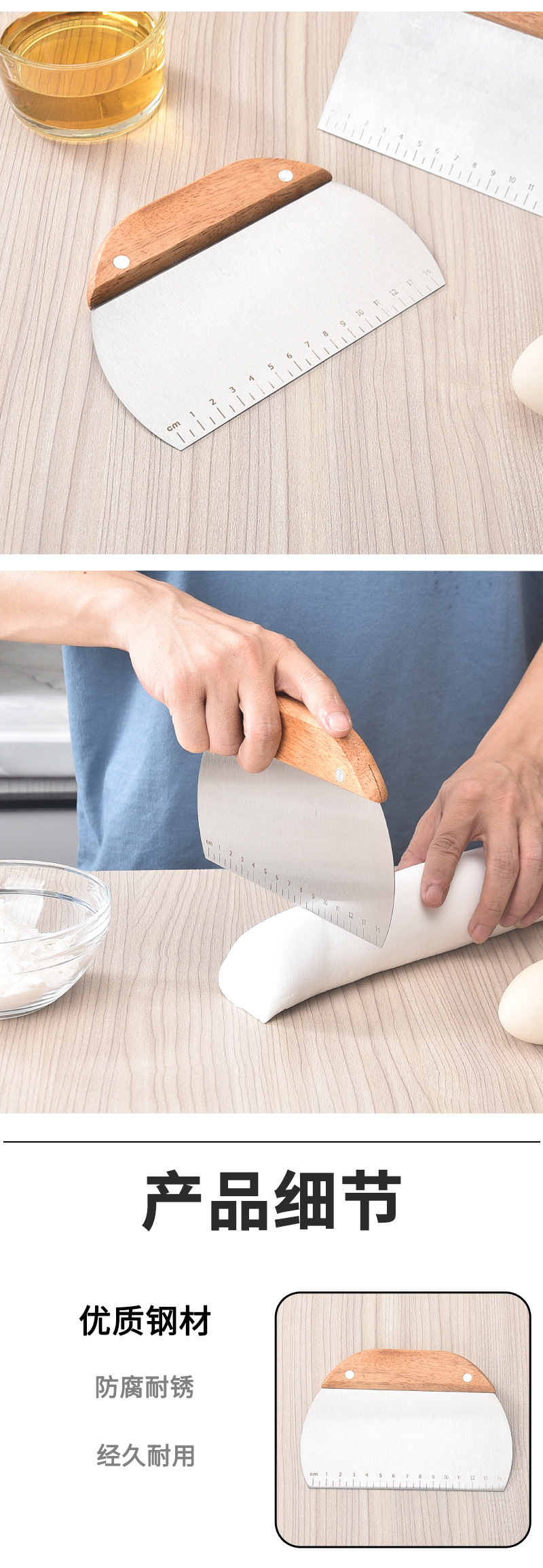 반죽 절단용 특수 칼, 스테인리스 나무 손잡이, 두꺼운 반죽 절단용 칼, 쌀국수 절단용 스크레이퍼, 눈금이 있는 절단칼, 스크레이퍼, 반죽 절단용 칼