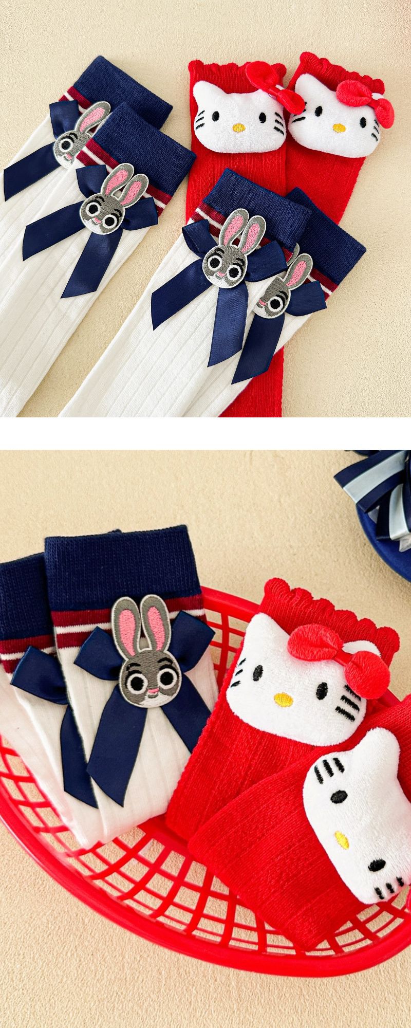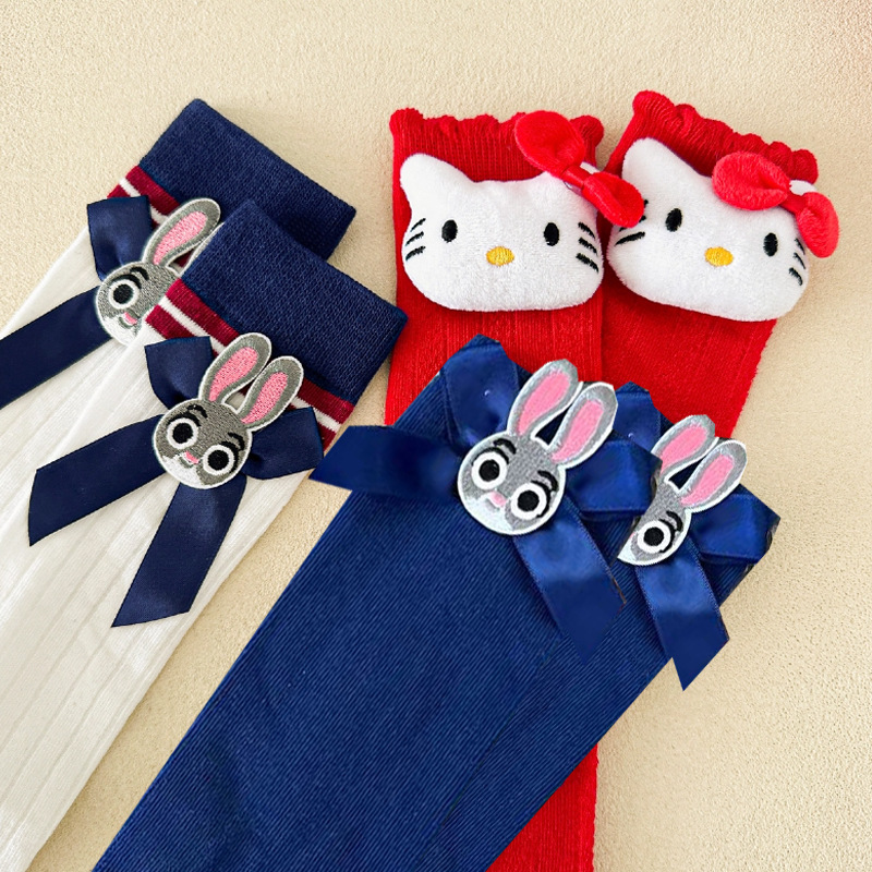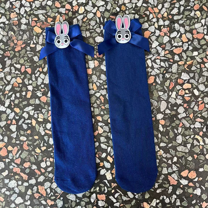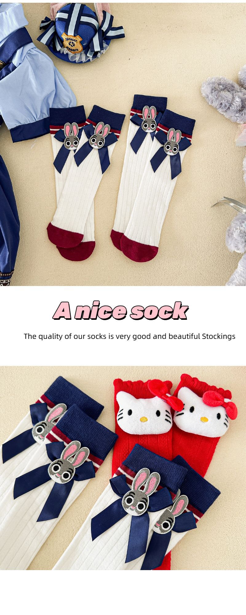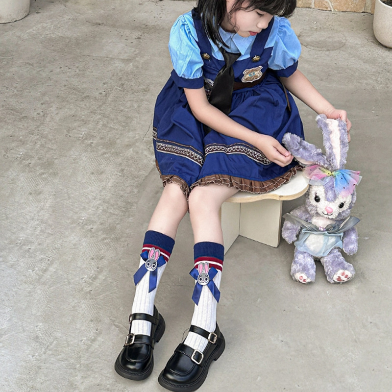 소녀 양말 주디 토끼 경찰관 튜브 양말 소녀 Bowknot 대학 스타일 송아지 양말 아기 스타킹 도매스토어 가기