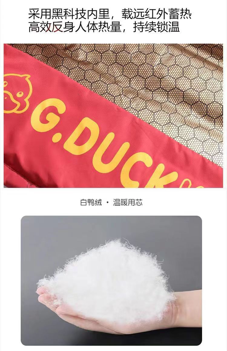 소년과 소녀를 위한 정통 작은 노란색 오리 어린이 다운 재킷, 중대형 어린이 블랙 골드 그래핀 가열 비수기 다운 재킷