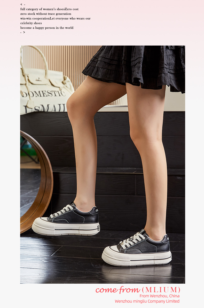 1층 소가죽 화이트 슈즈 여성용 2025 봄 신상 두꺼운 밑창 키높이 스니커즈 여성용 다용도 캐주얼 슈즈 라운드 토 여성화