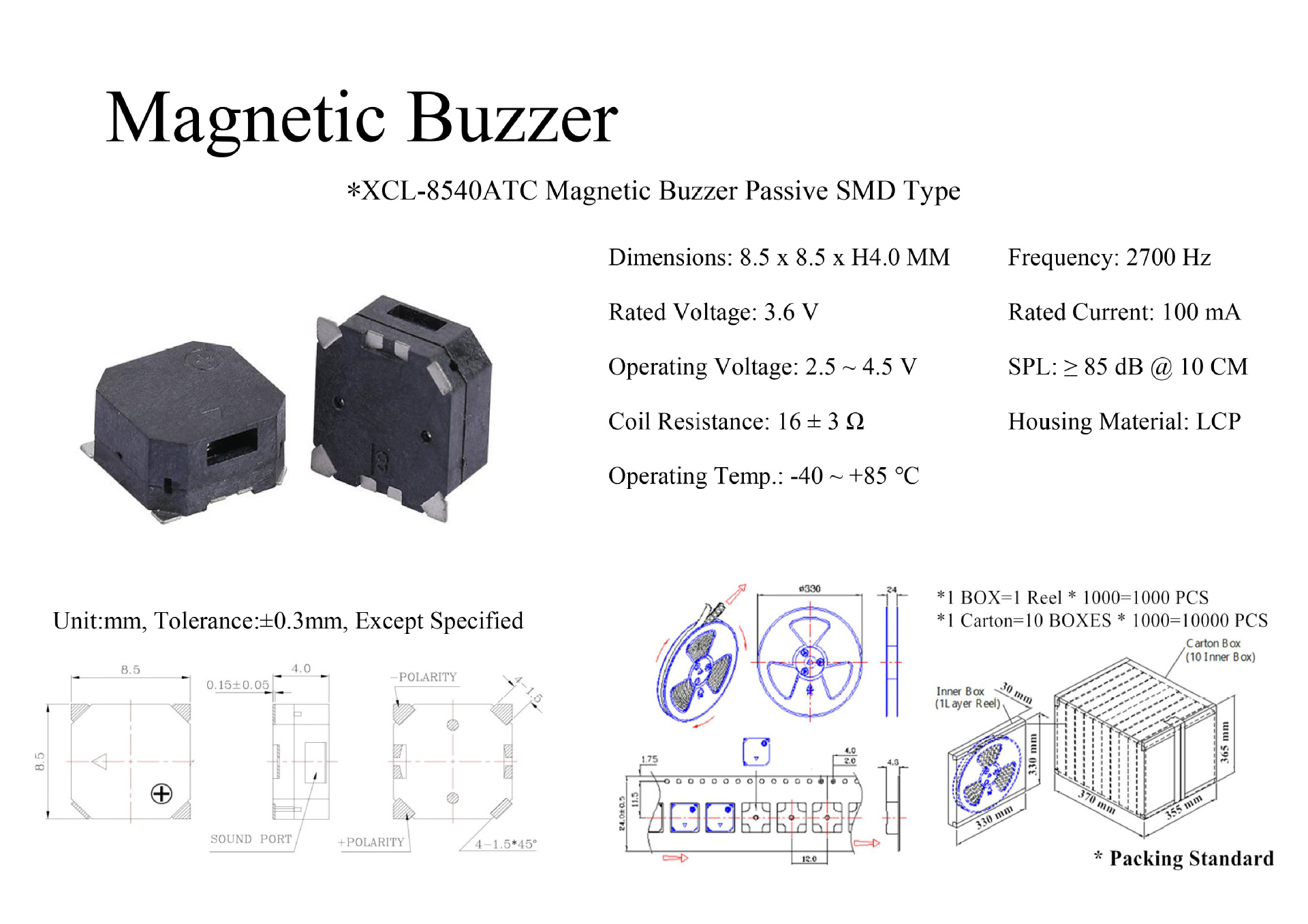 XCL-8540ATC 전자기 패치 버저 측 발음 수동 3.6V 16 유럽 공장 아울렛