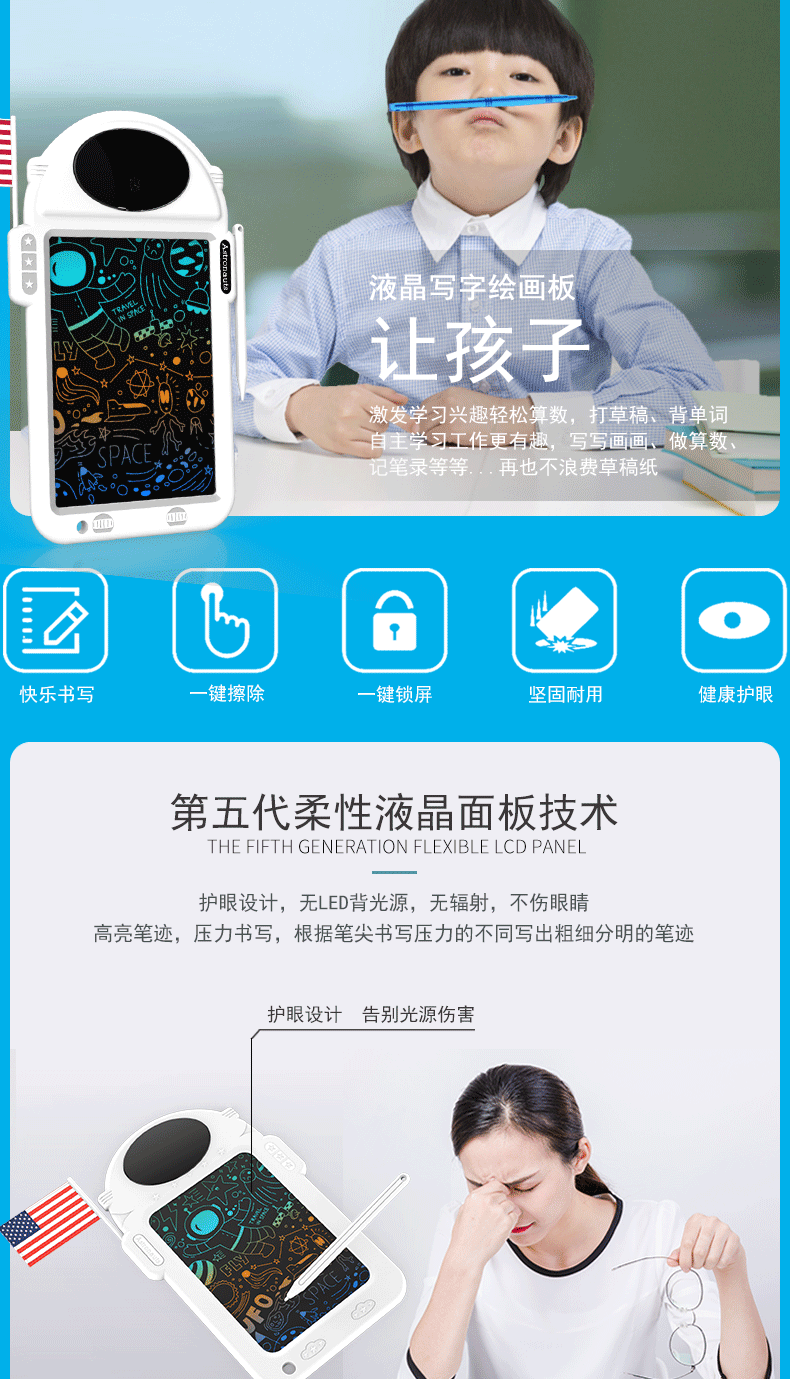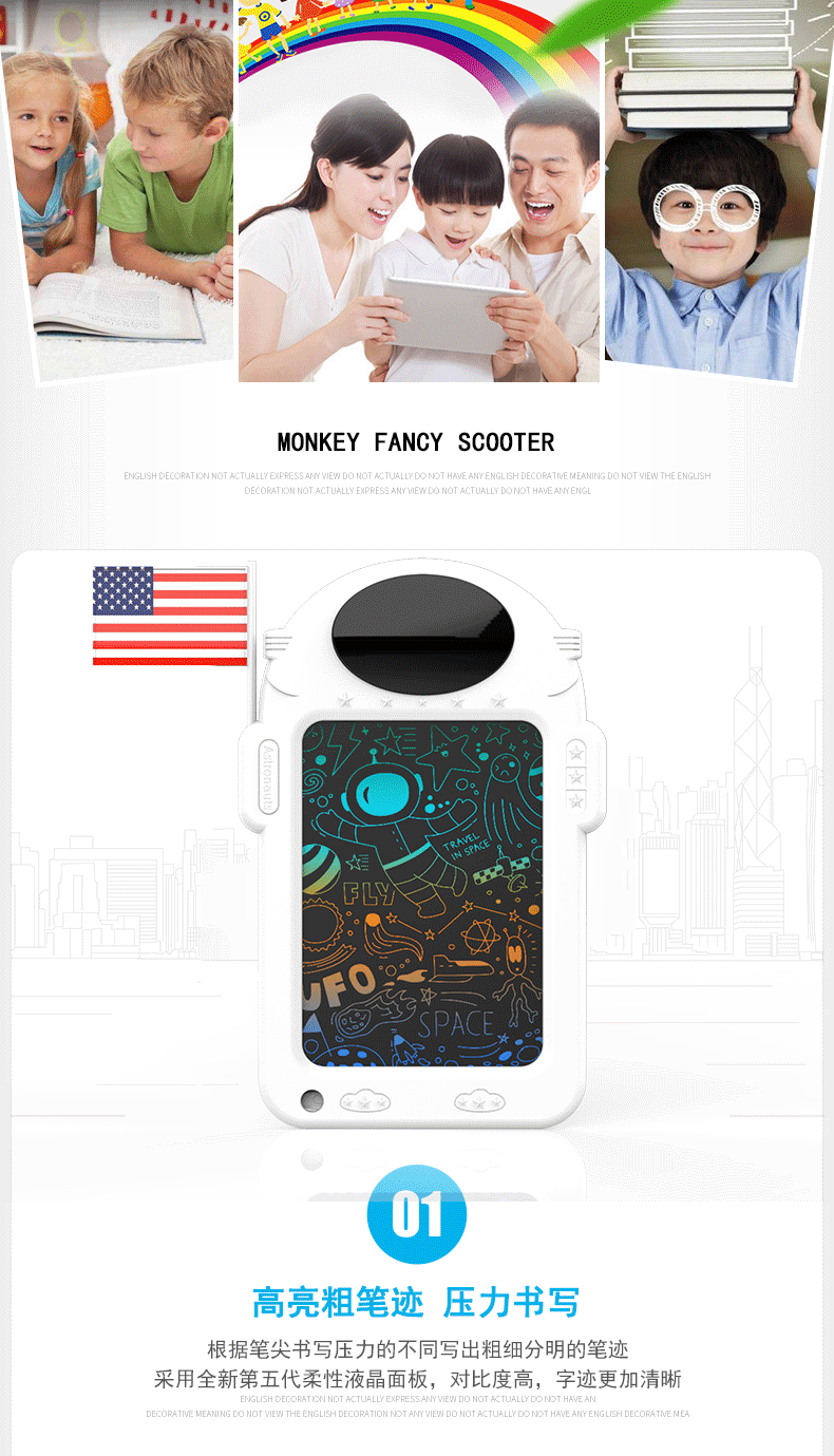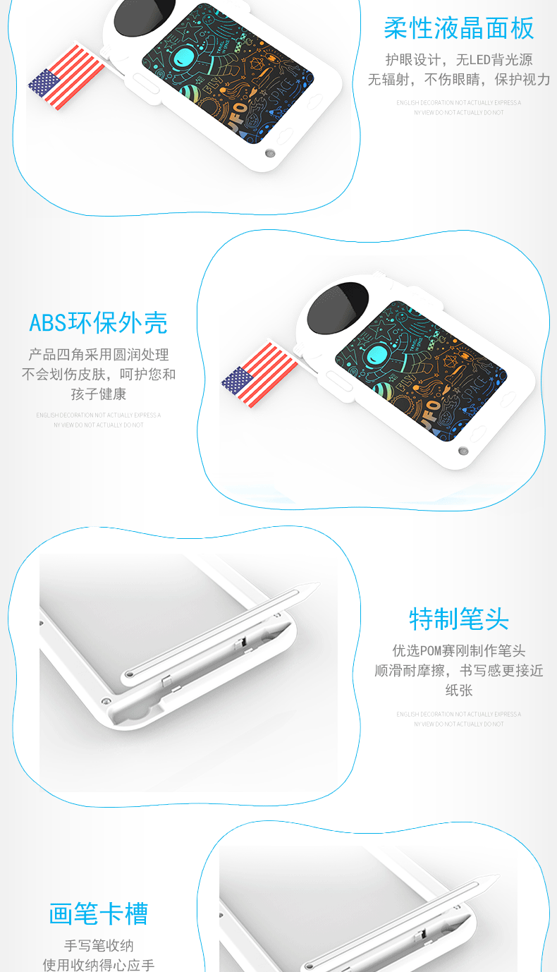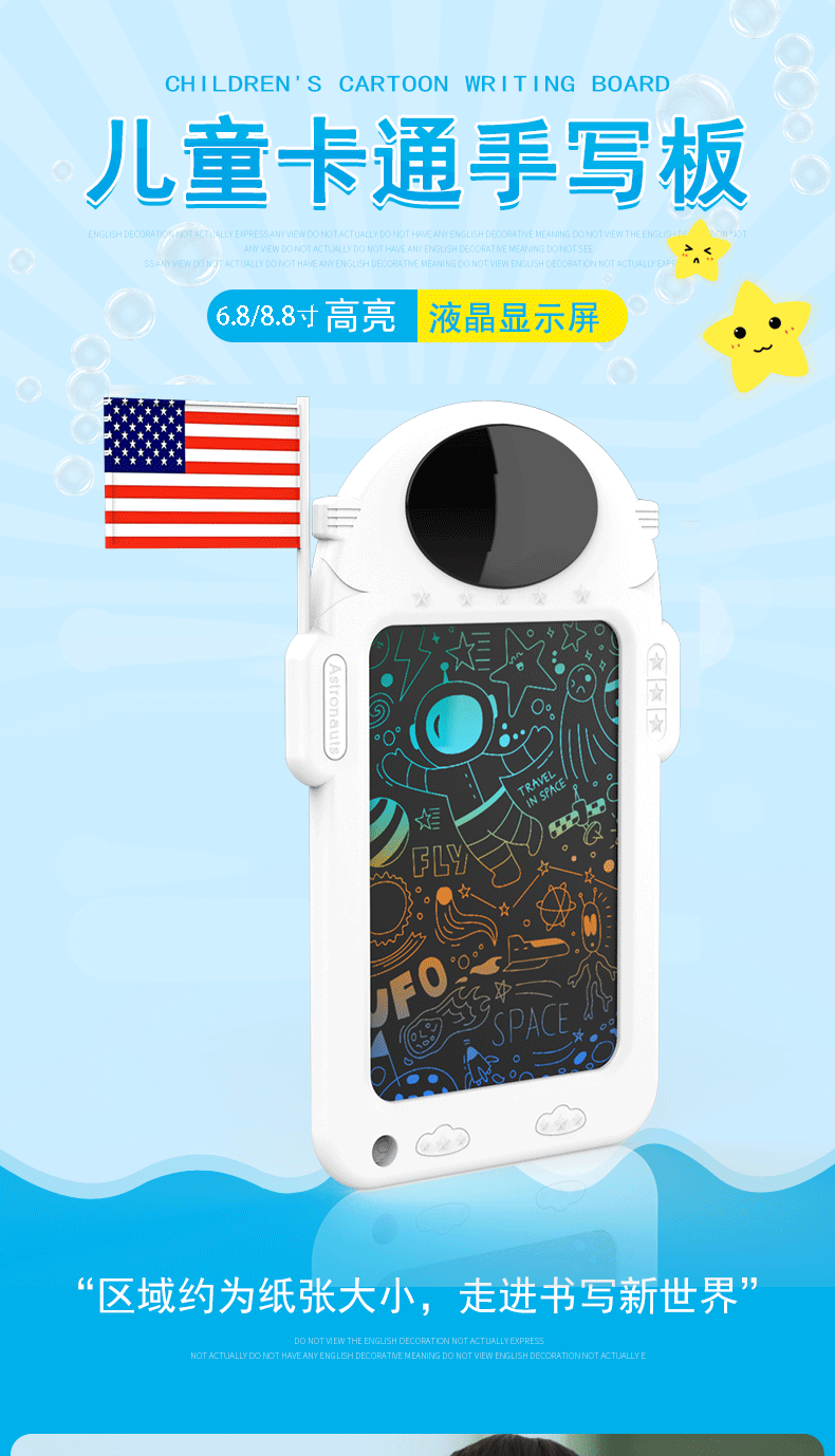 국경 8.8 인치 우주 비행사 만화 드로잉 보드 어린이 낙서 드로잉 보드 손 드로잉 보드 지울 수있는 LCD 필팅 보드