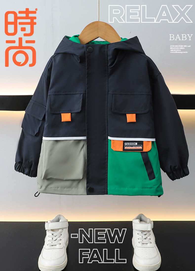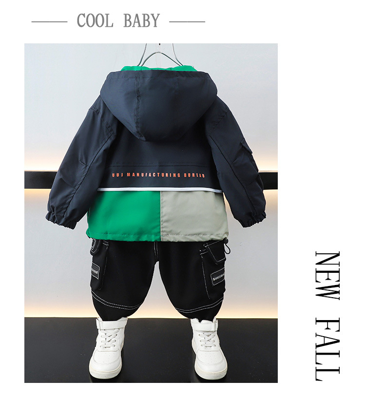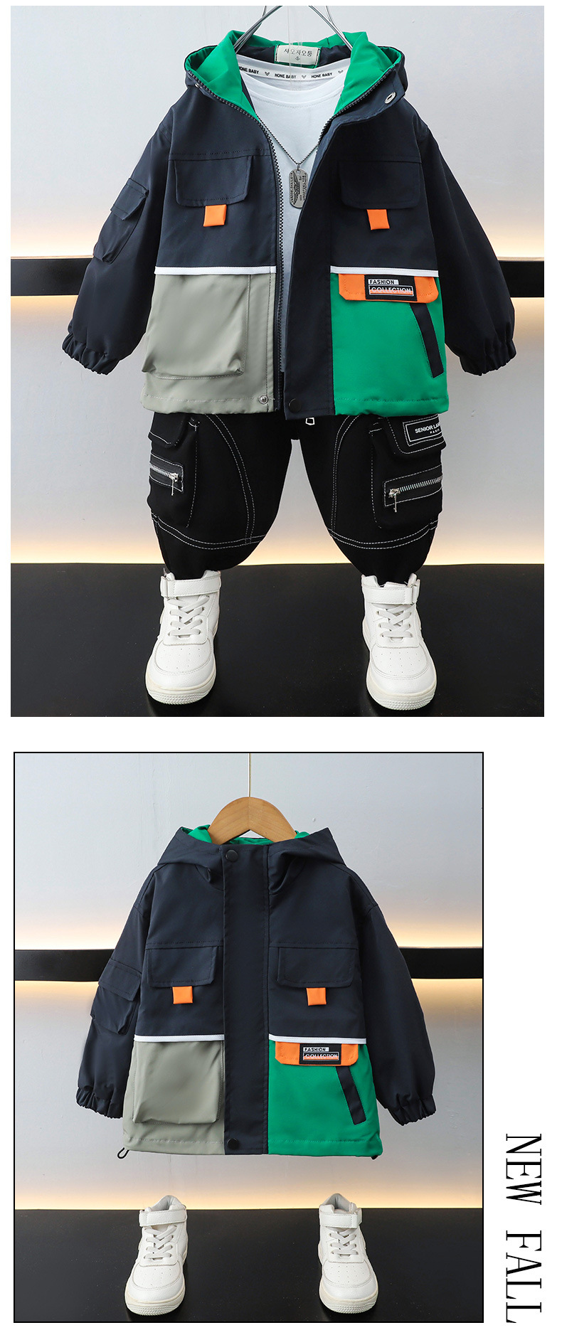 어린이 가을 컬러 매칭 코트 2024 봄과 가을 새로운 한국 잘 생긴 소년 후드 자켓 탑스토어 가기