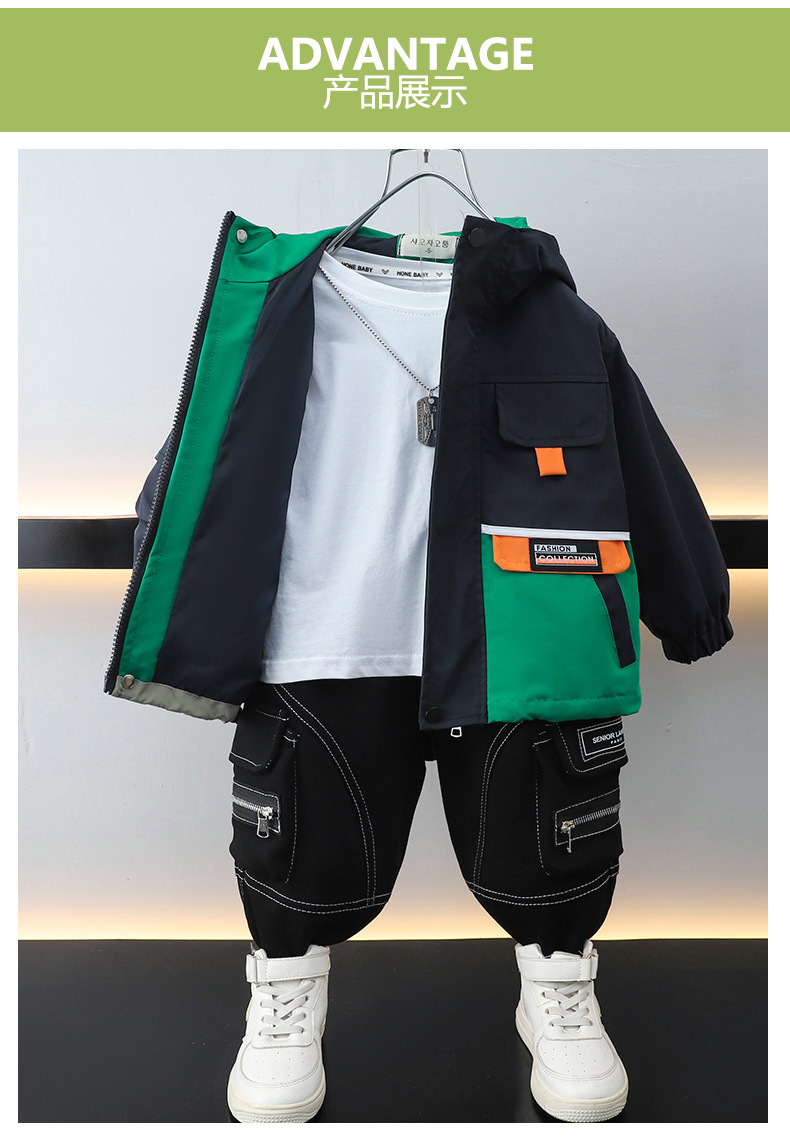 어린이 가을 컬러 매칭 코트 2024 봄과 가을 새로운 한국 잘 생긴 소년 후드 자켓 탑
