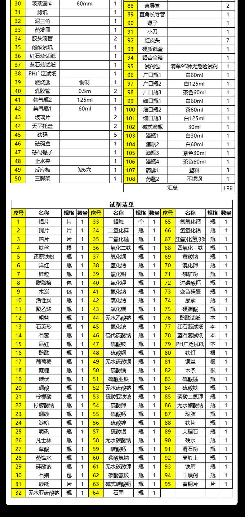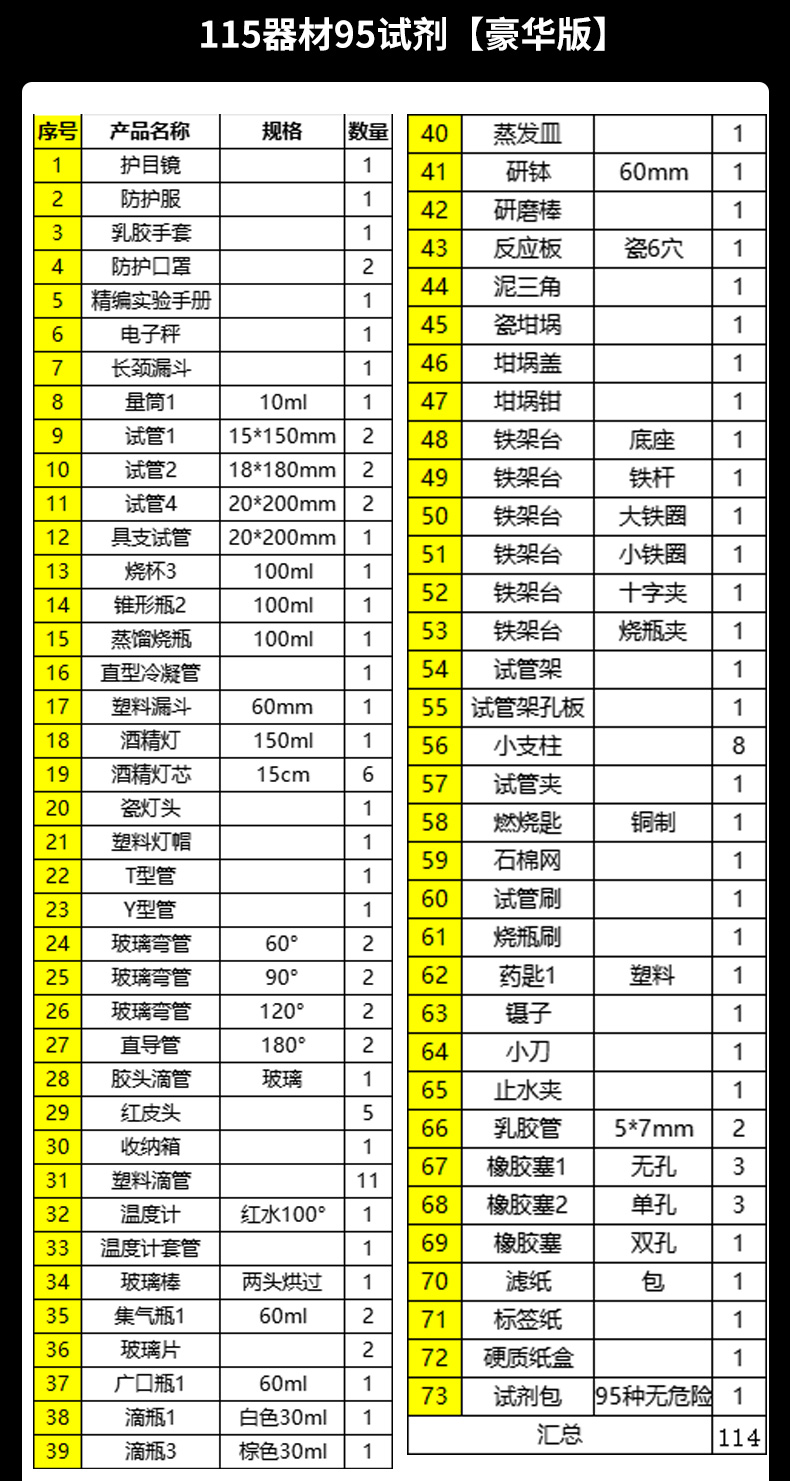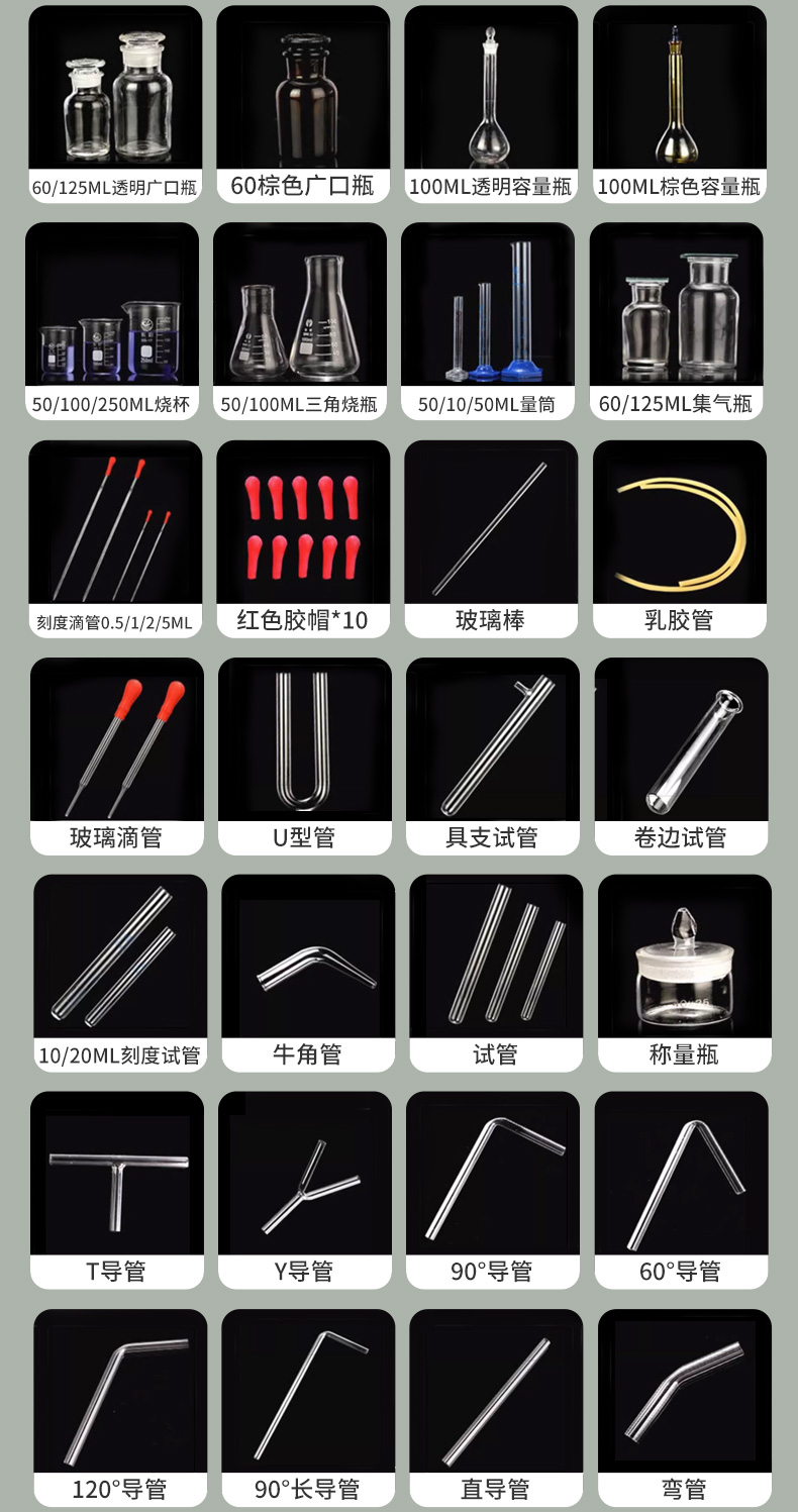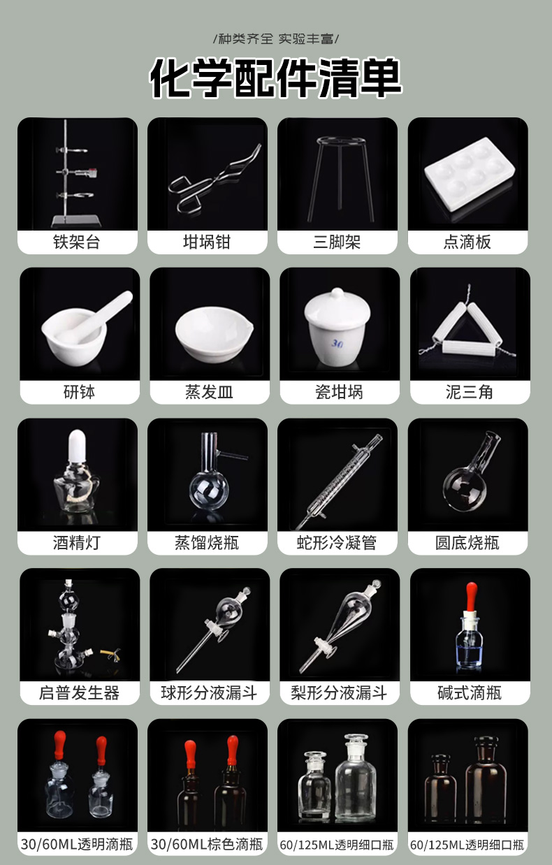 중학교 중학교 화학 실험 장비 전체 세트 세트 시약 비커 시험관 철 중학교 화학 실험