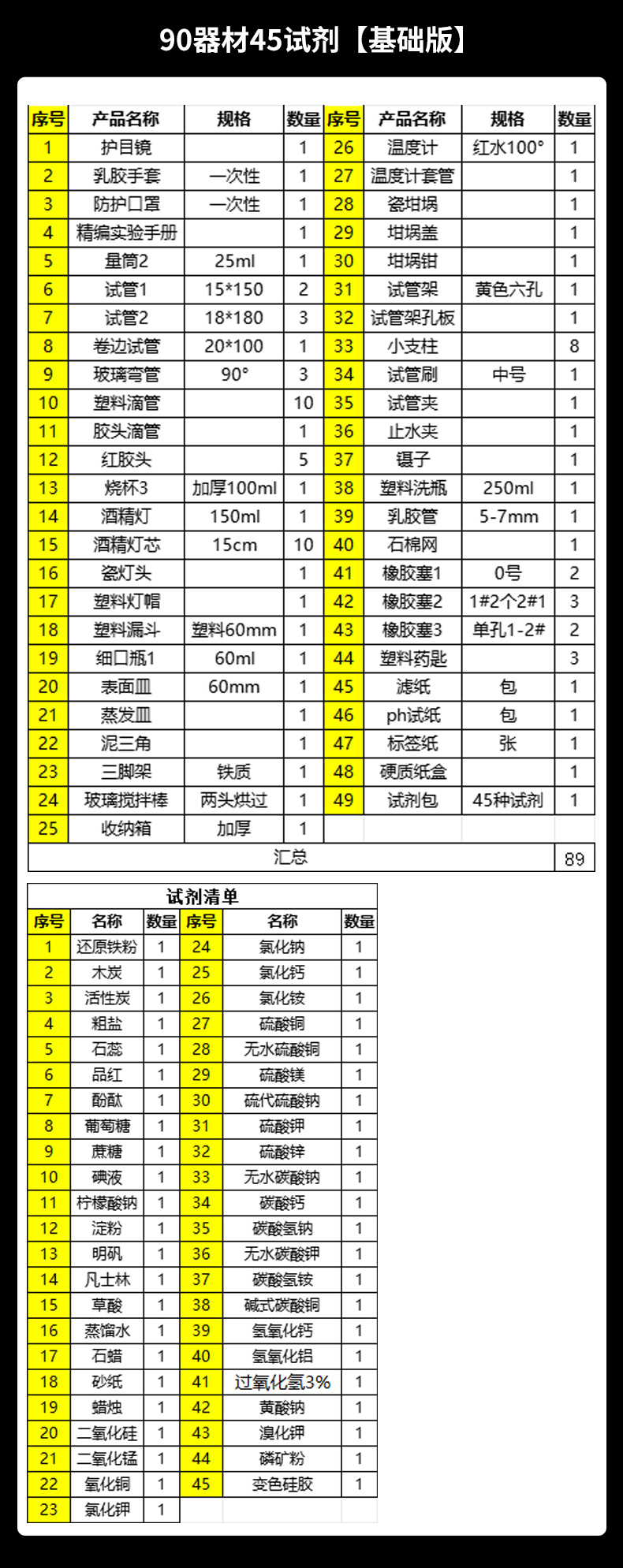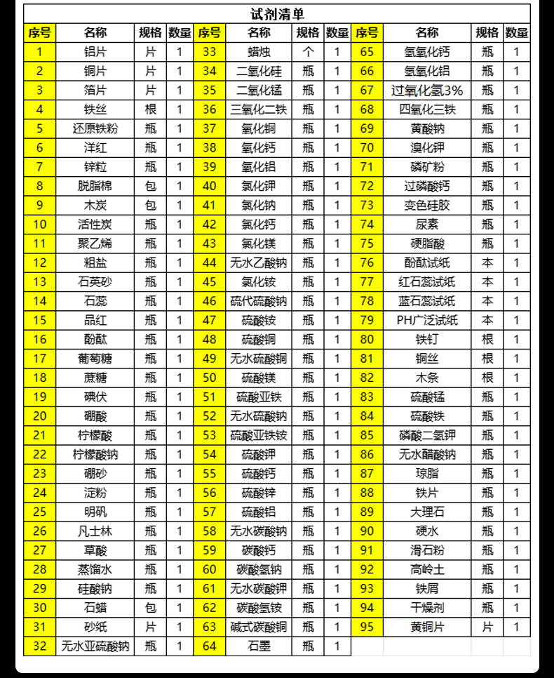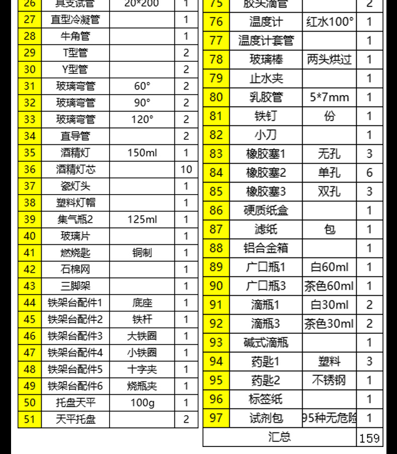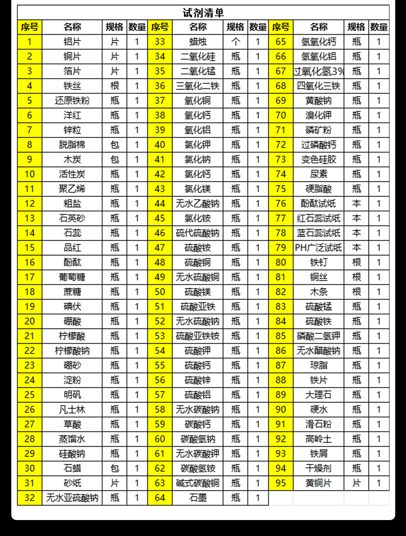 중학교 중학교 화학 실험 장비 전체 세트 세트 시약 비커 시험관 철 중학교 화학 실험