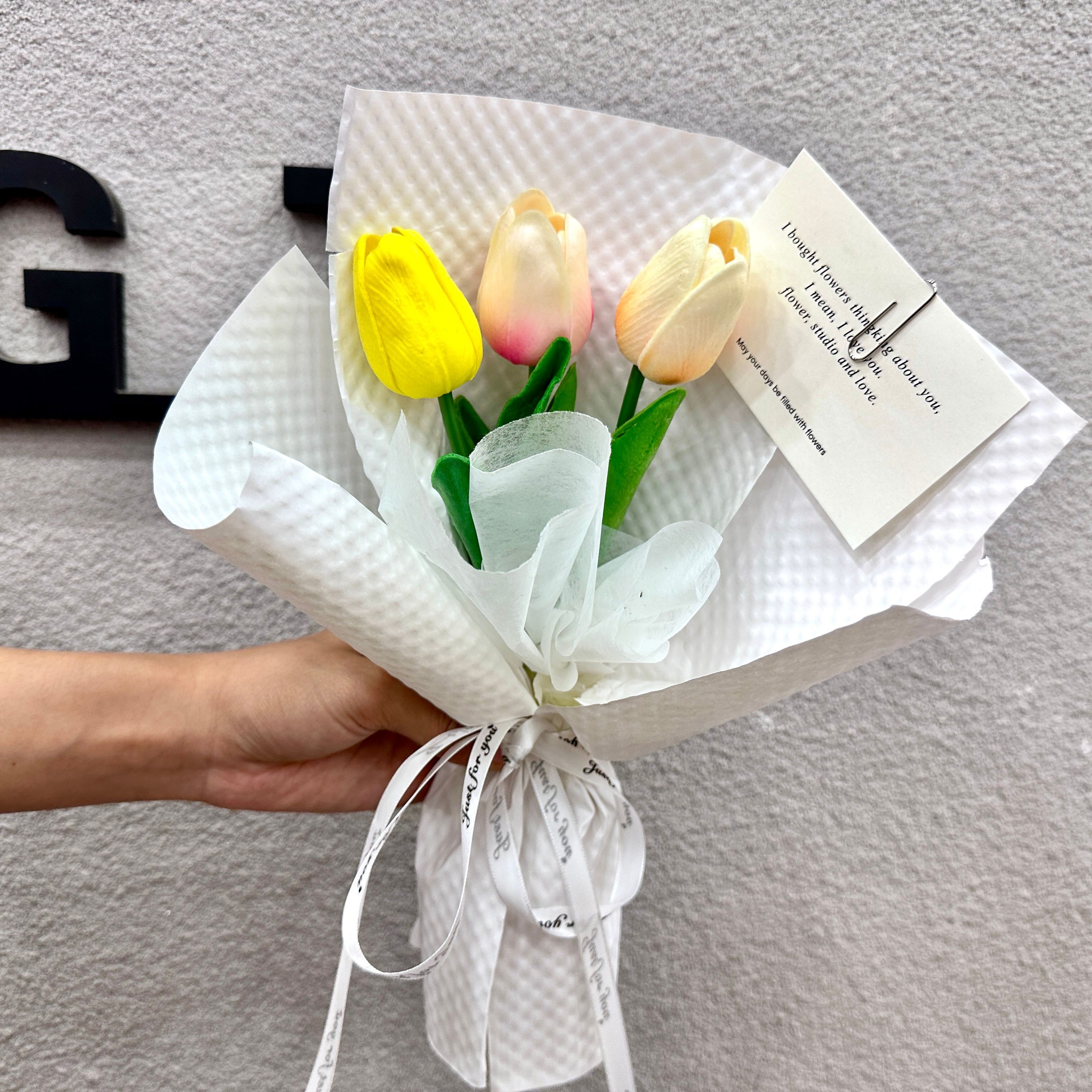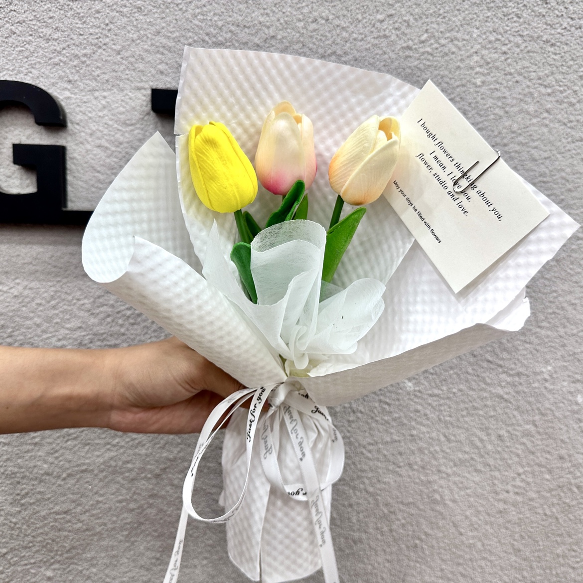 • 한국식 샴페인 라이트 핑크와 옐로우 튤립 3개