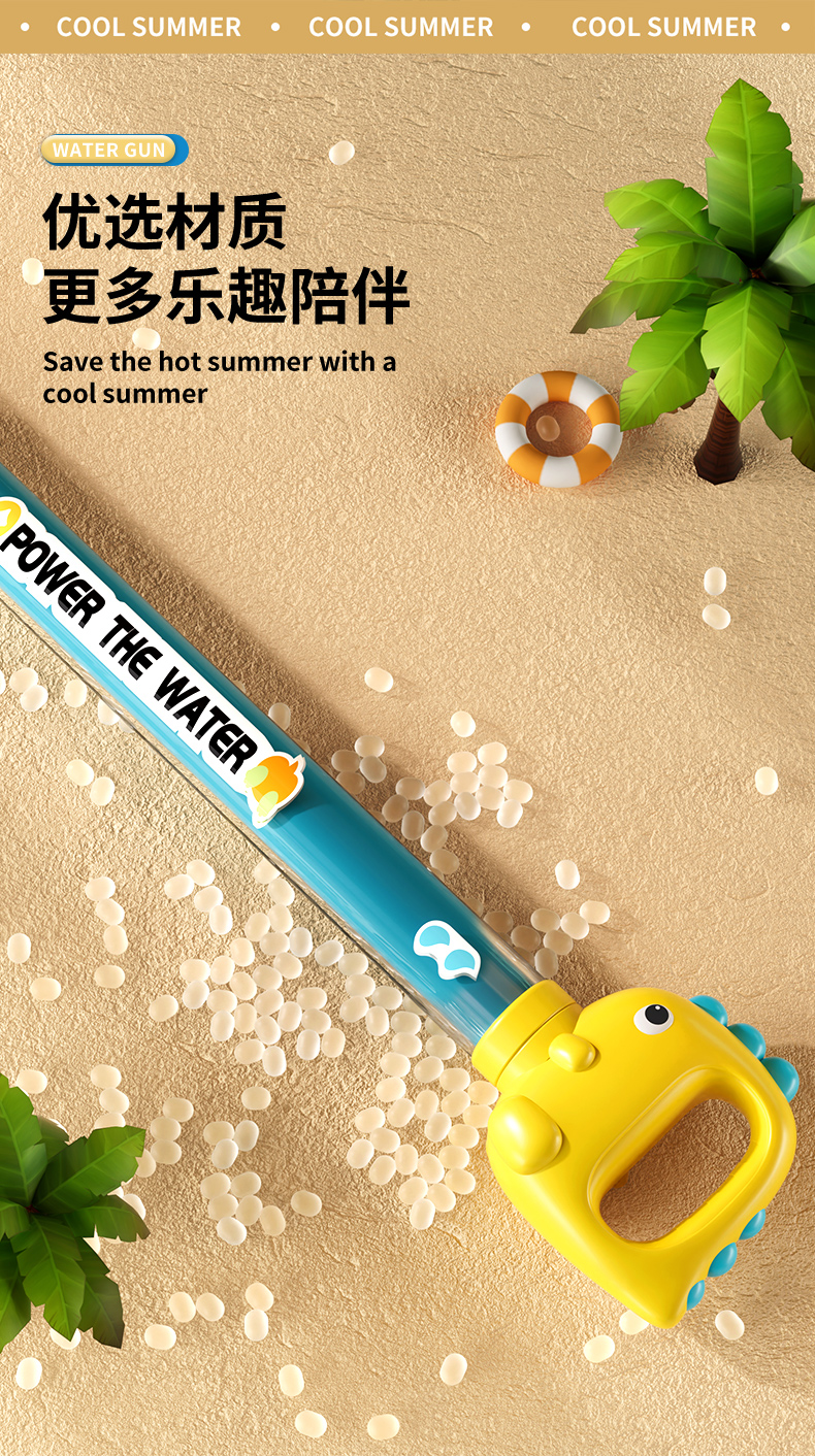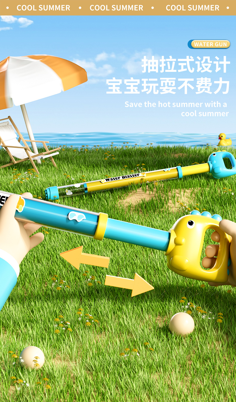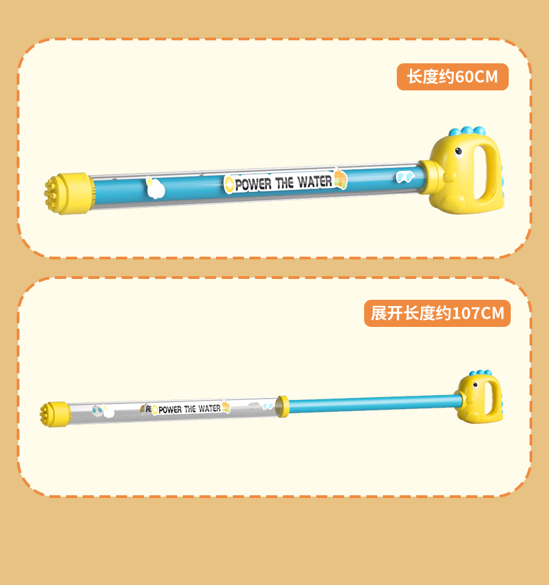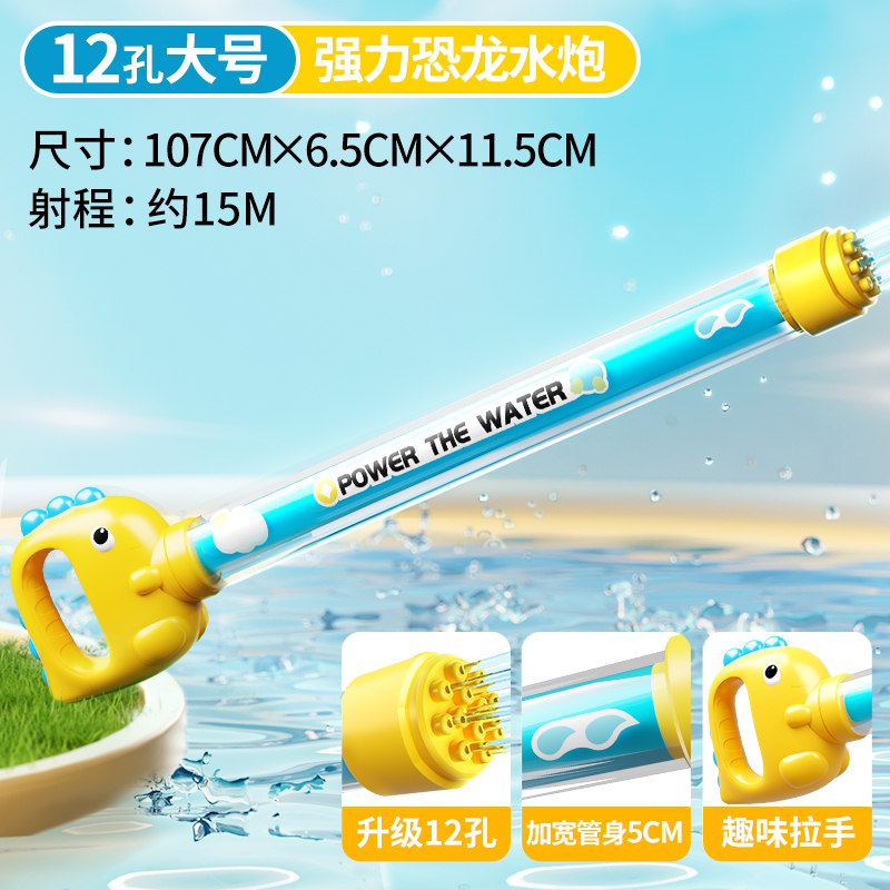 • 107CM 대형 노란색⭐인출식 공룡 물대포 [12홀]