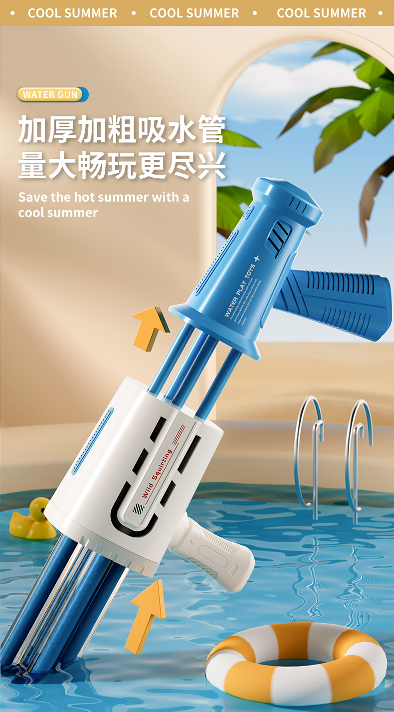 • 105CM 초대형 블루⭐대형 풀아웃 물총 [두꺼운 3개 튜브]