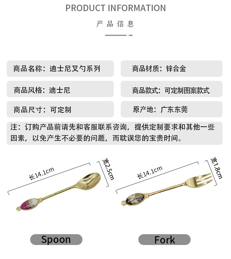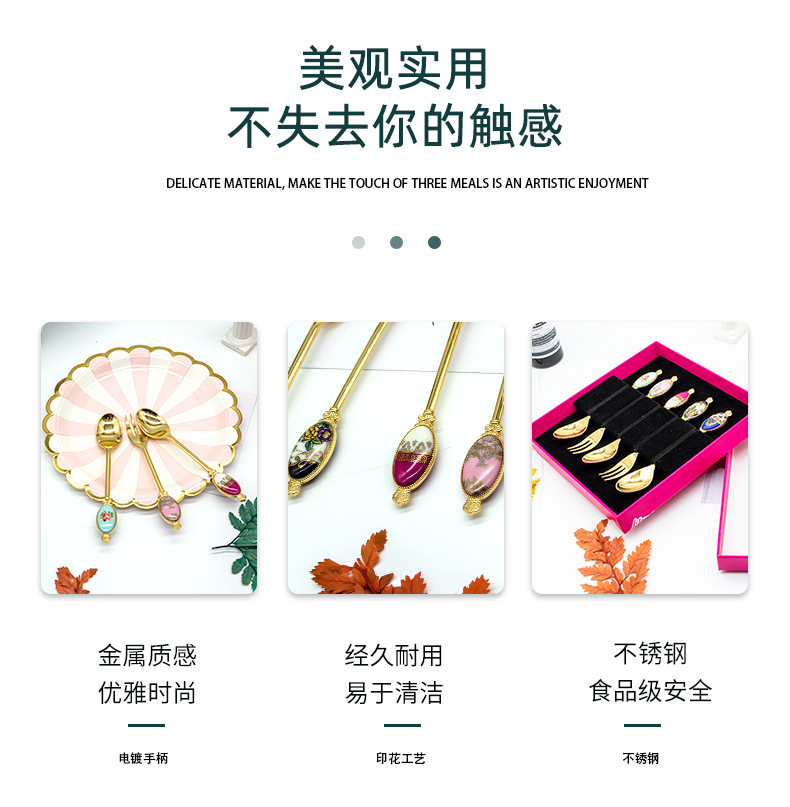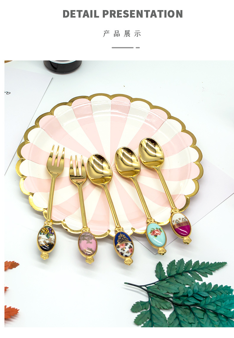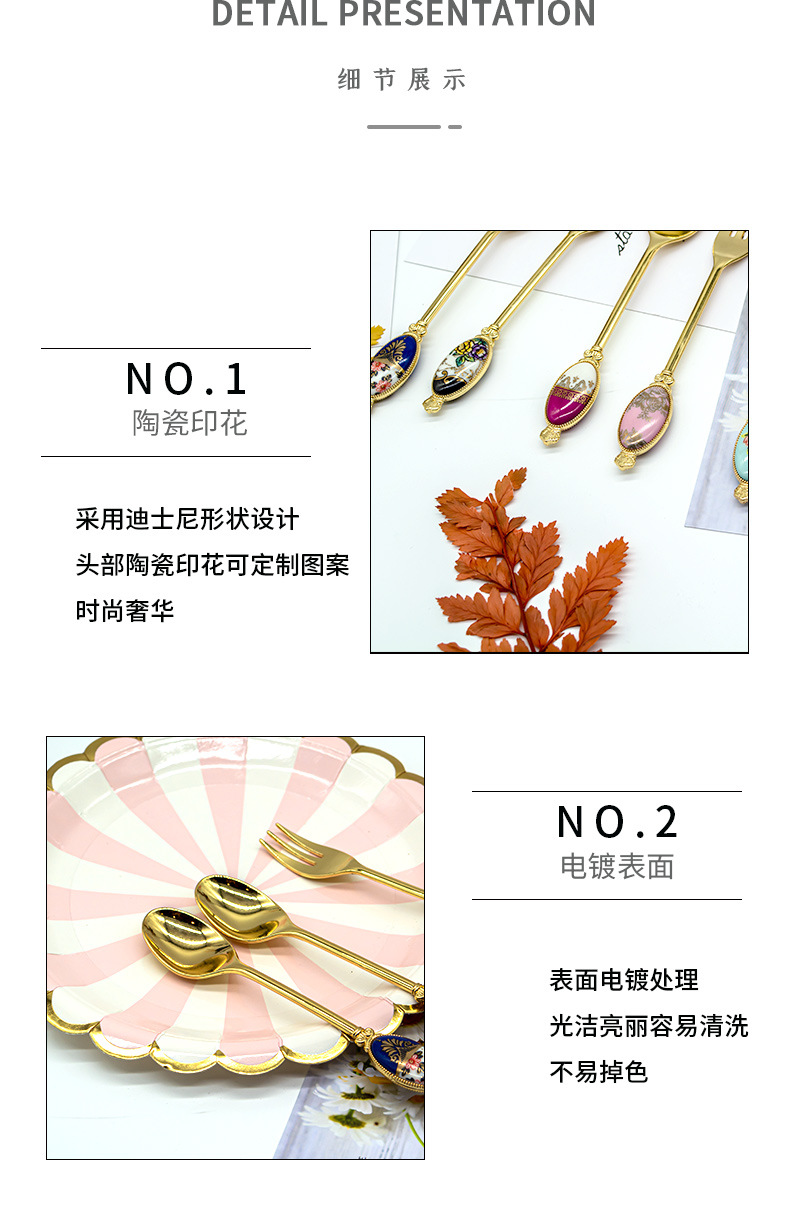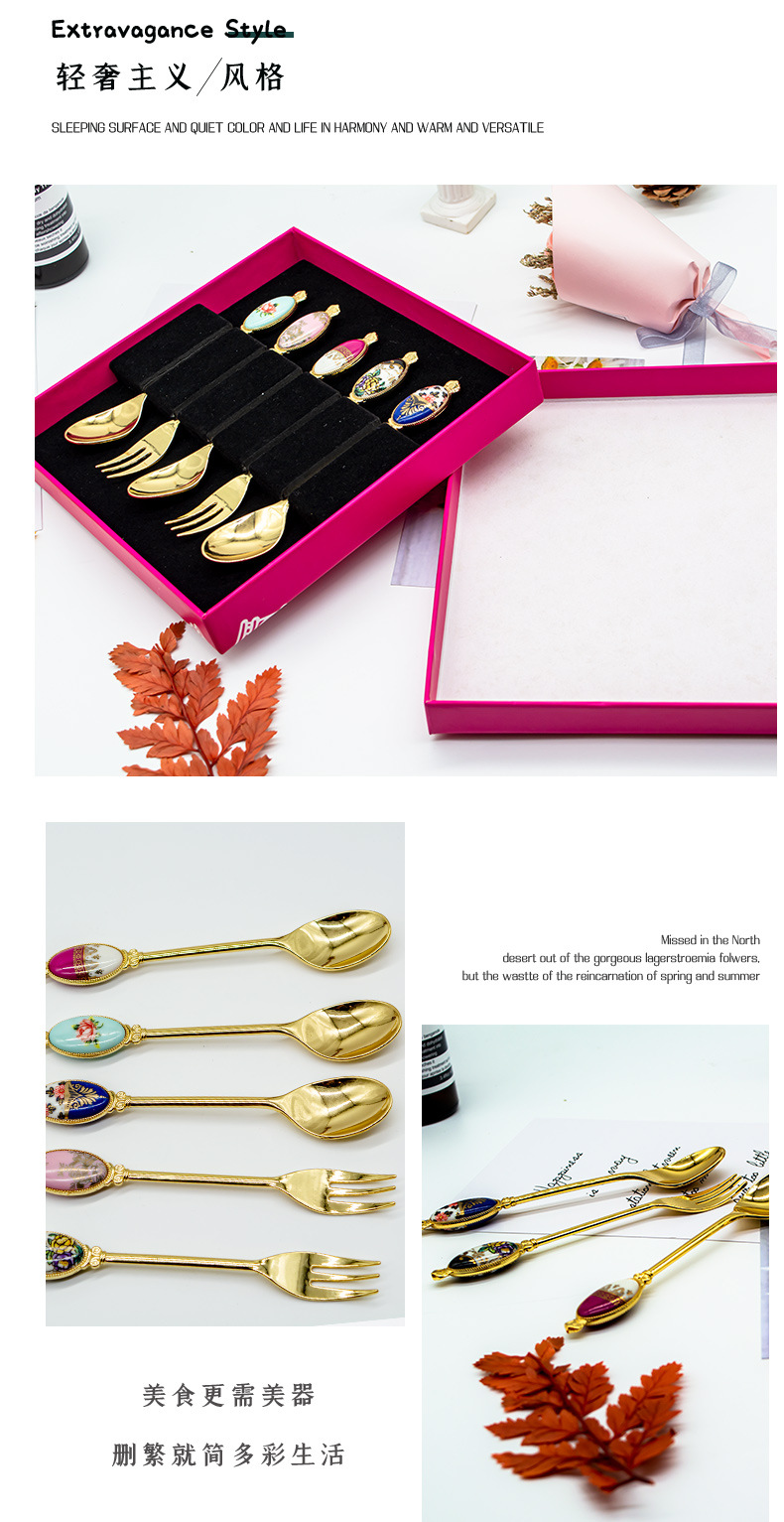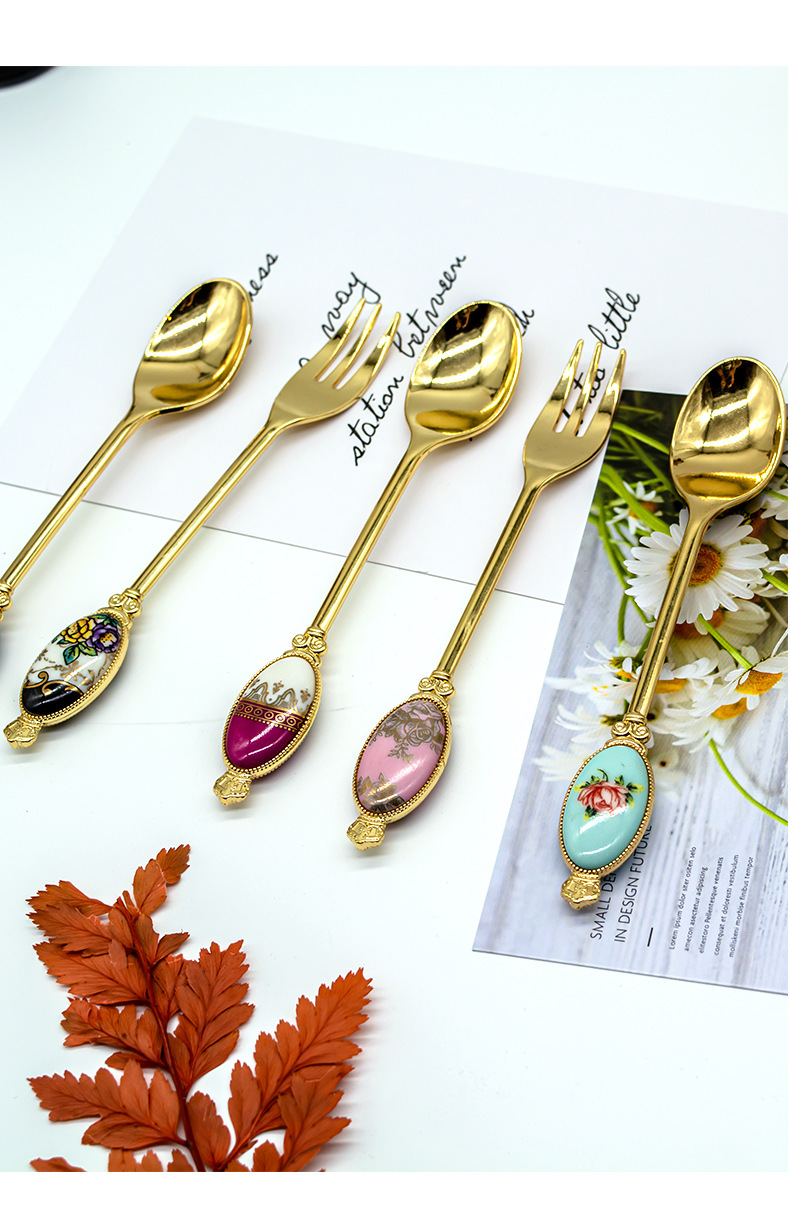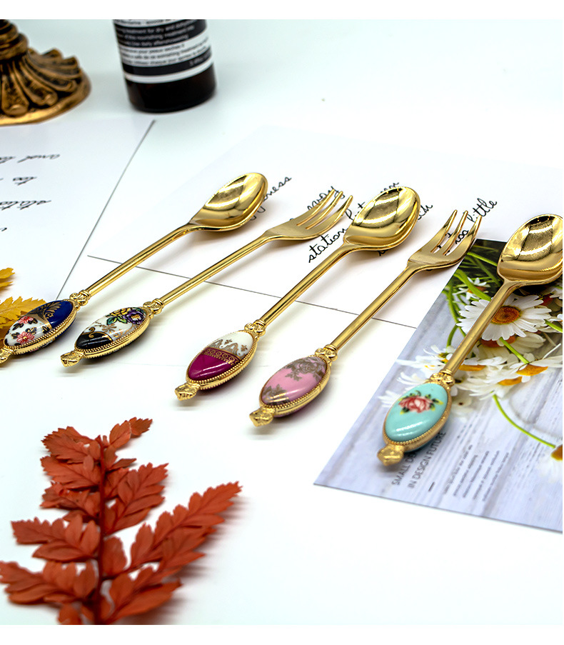 크리 에이 티브 아연 합금 세라믹 손잡이 서양 음식 포크와 스푼 커피 교반 스푼 선물 세트 2 차원 포크와 스푼 사용자 정의스토어 가기