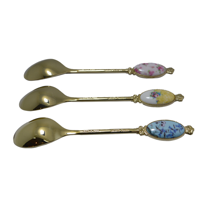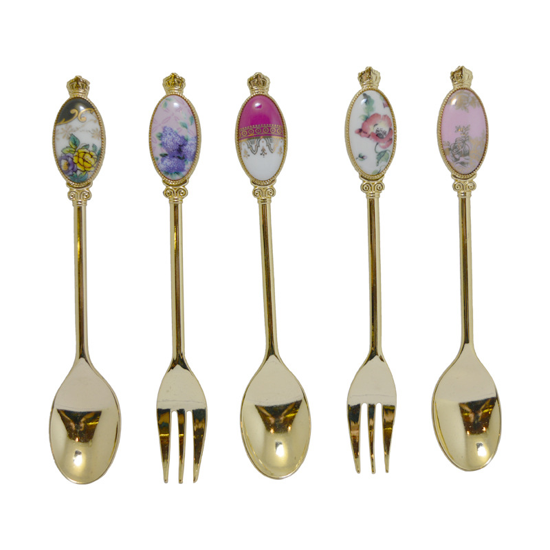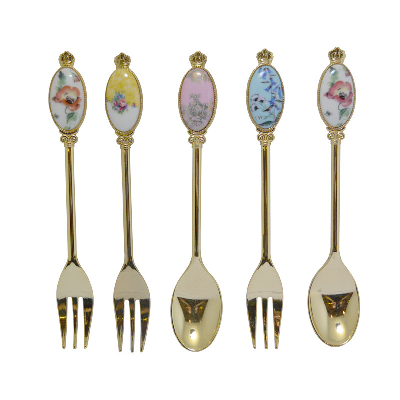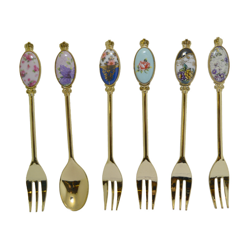 크리 에이 티브 아연 합금 세라믹 손잡이 서양 음식 포크와 스푼 커피 교반 스푼 선물 세트 2 차원 포크와 스푼 사용자 정의