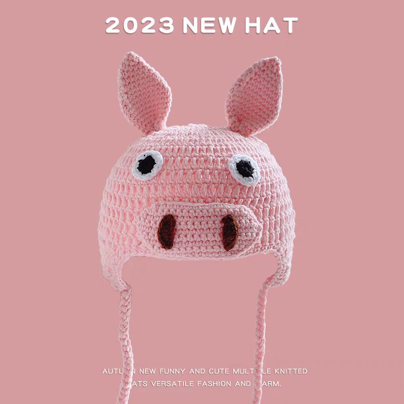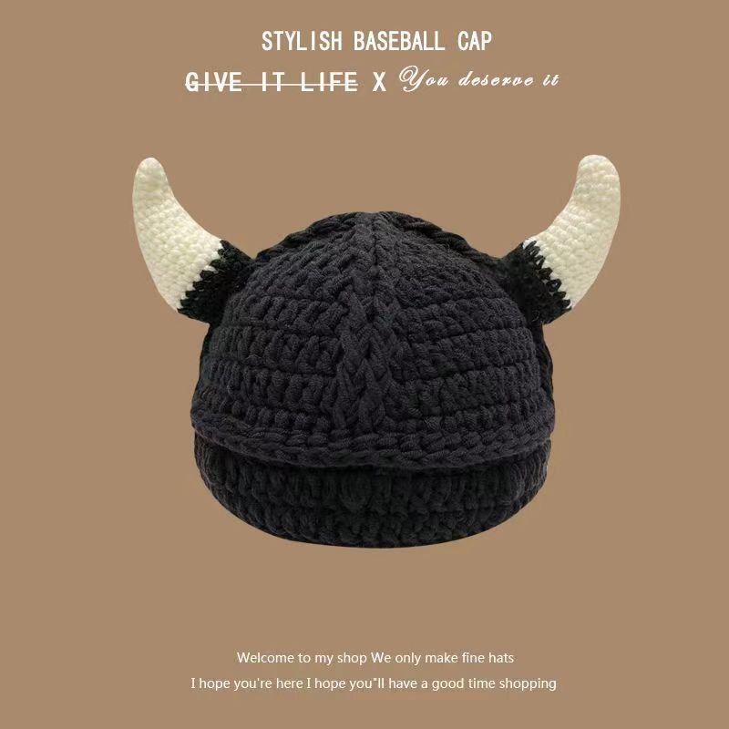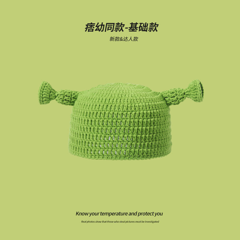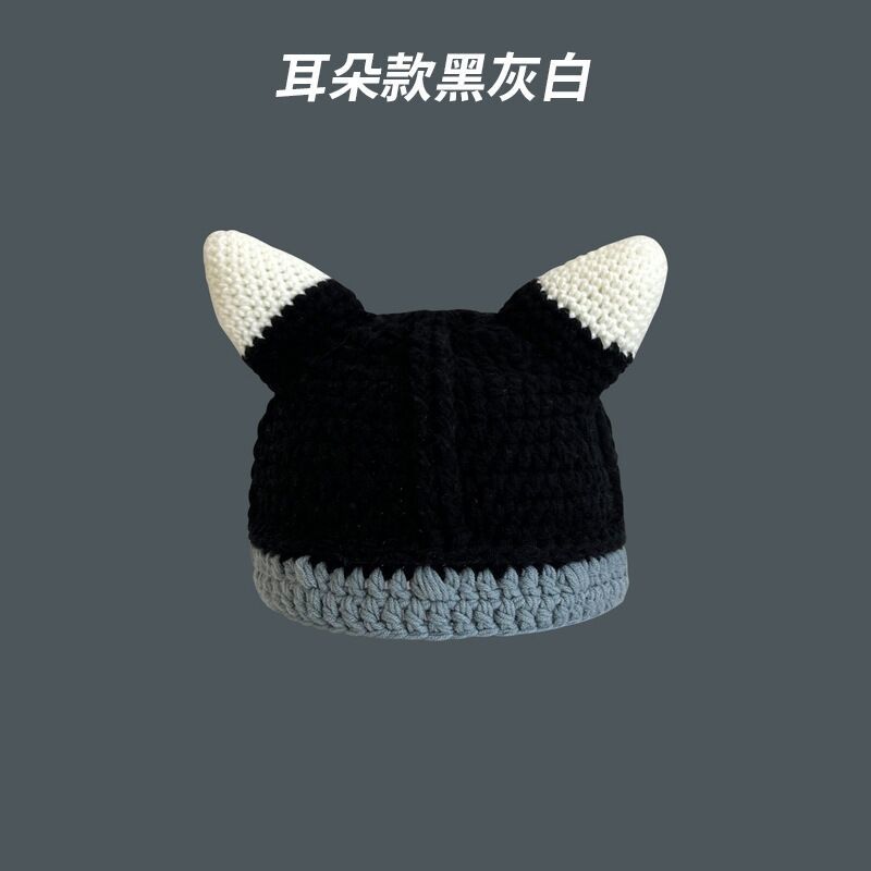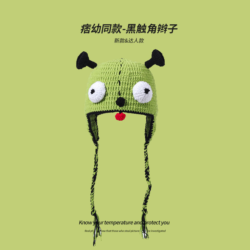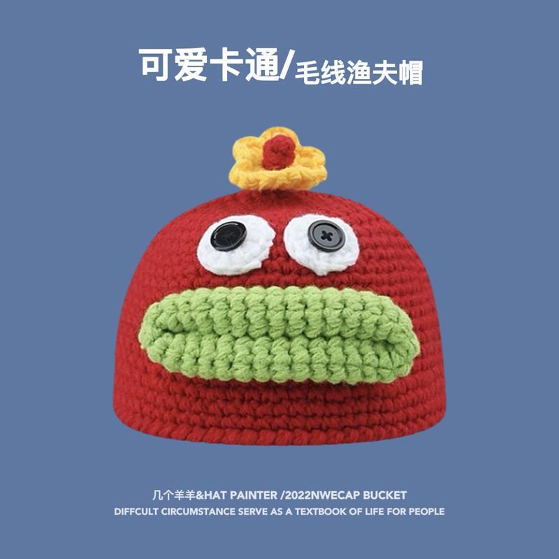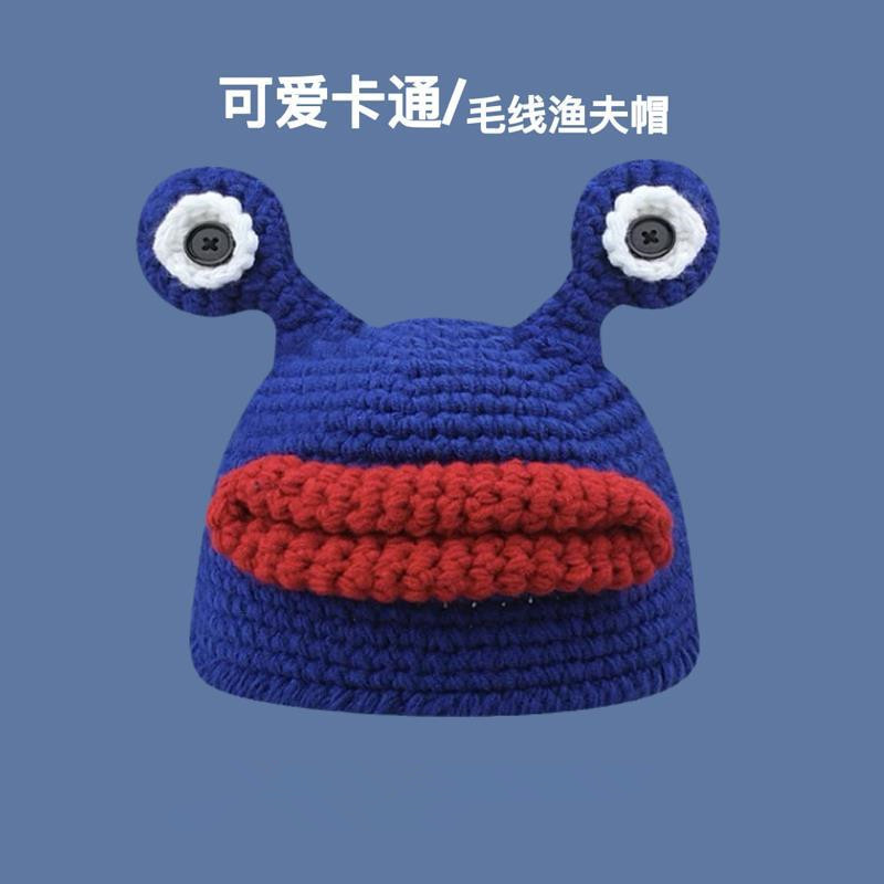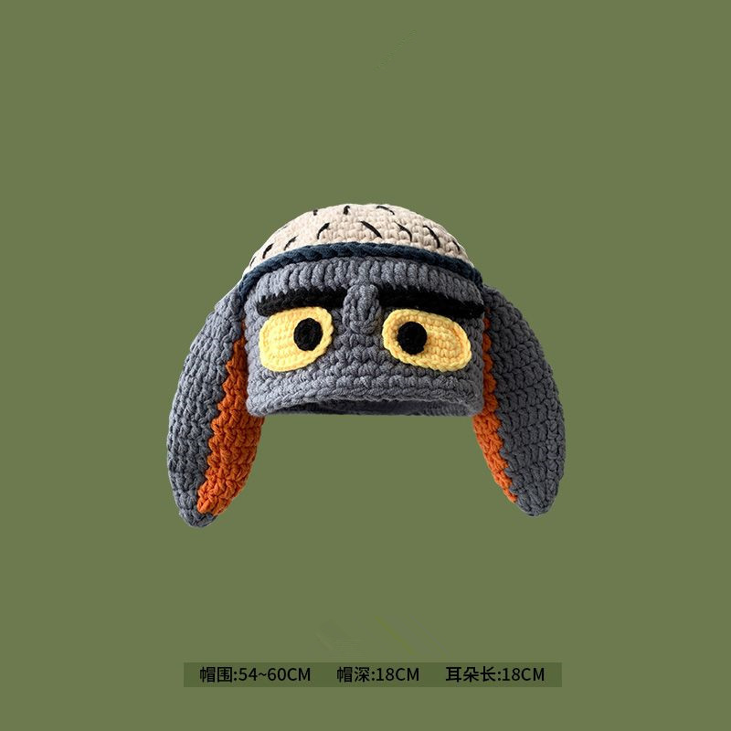 만화 부처 모자 한국 스타일 손으로 짠 따뜻한 보온 독특한 재미 남자와 여자의 니트 모자 귀 보호 가을 겨울 양모 모자스토어 가기