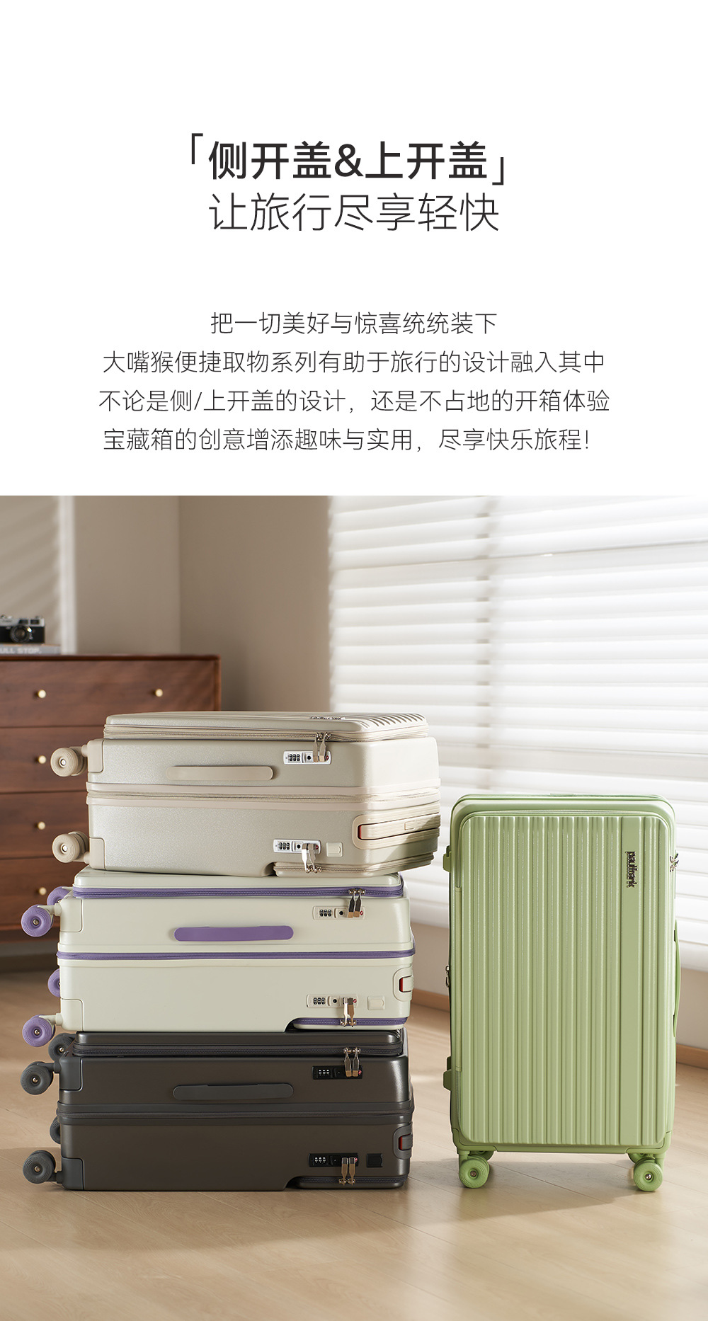 빅마우스 몽키 사이드 오픈형 여행가방 여성용 확장형 전면 개방형 순수 PC 여행가방 비밀번호 대용량 캐리어