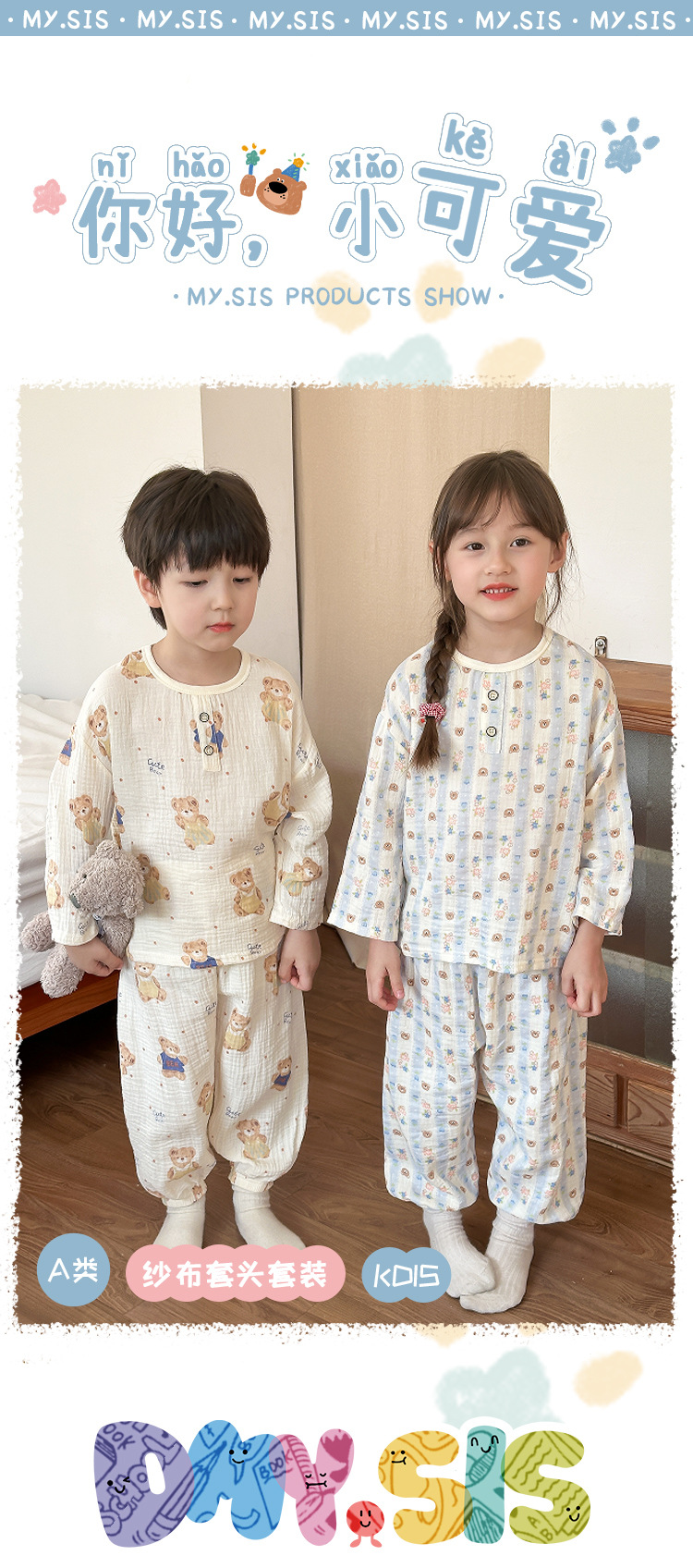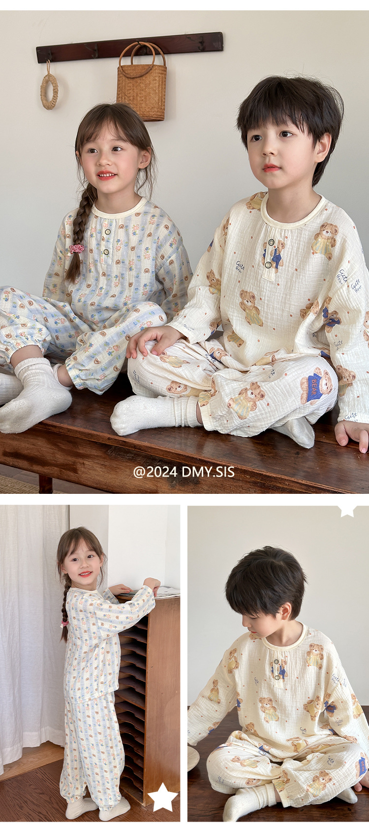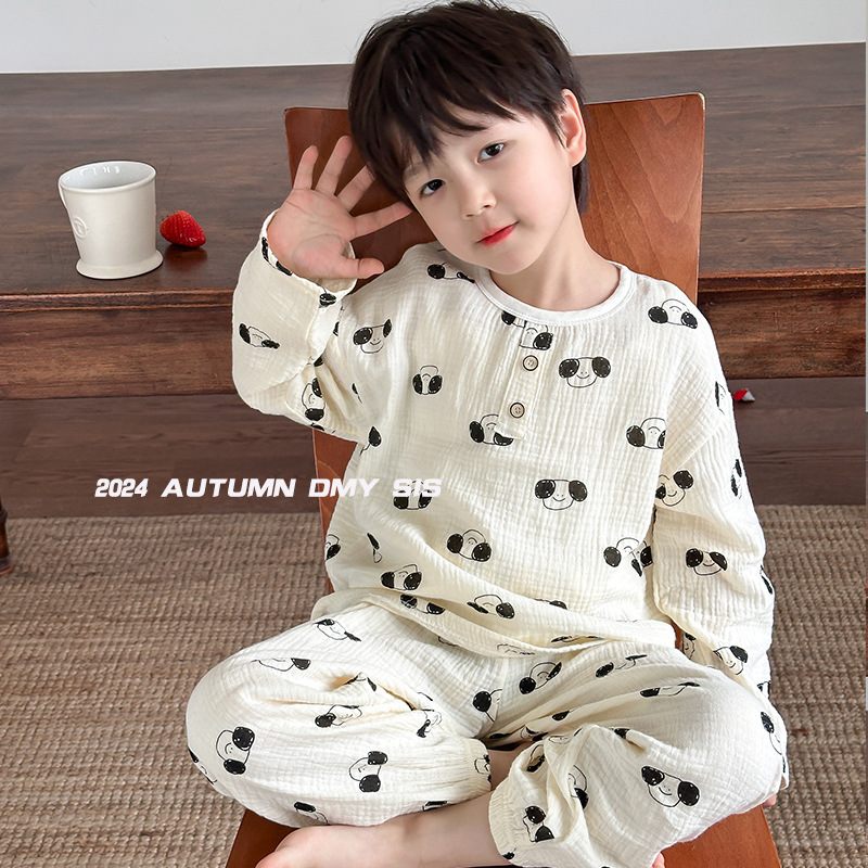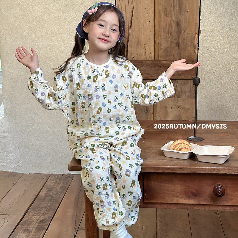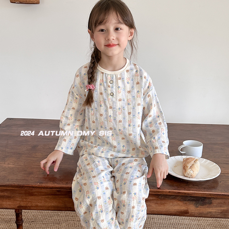 MYSIS 거즈 속옷 세트 순면 홈웨어 잠옷 가을옷 아동용 A급 곰돌이스토어 가기