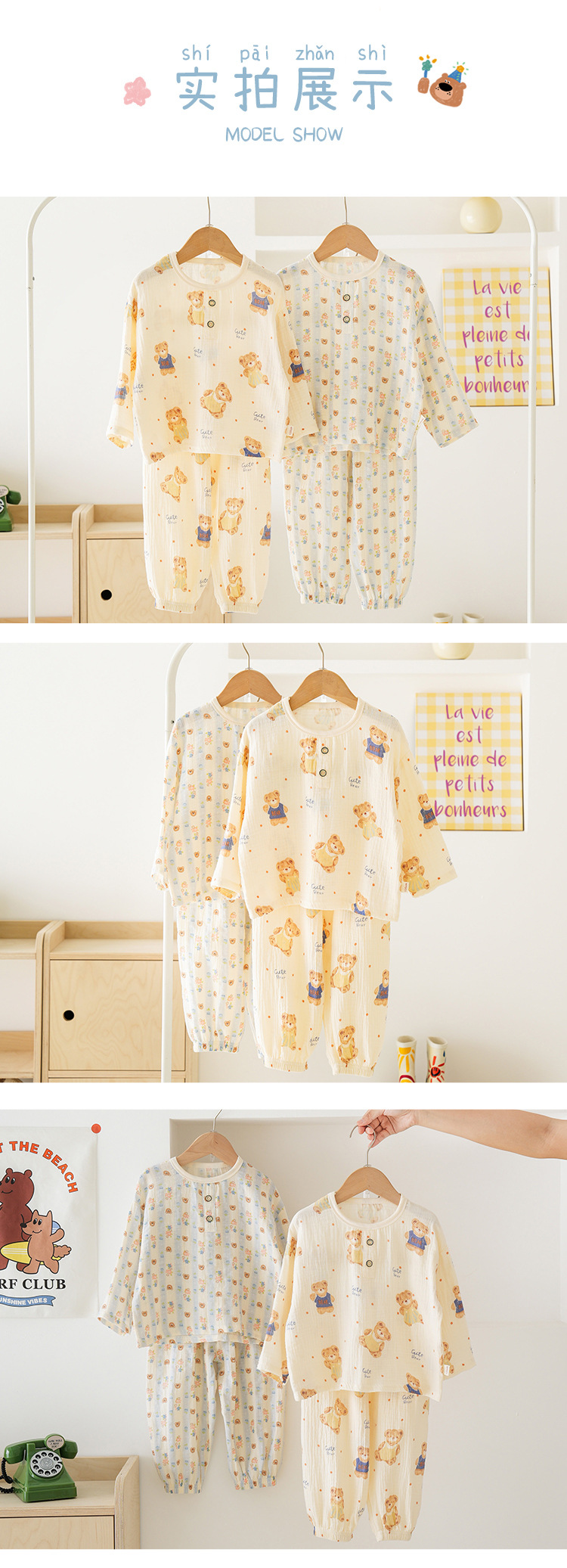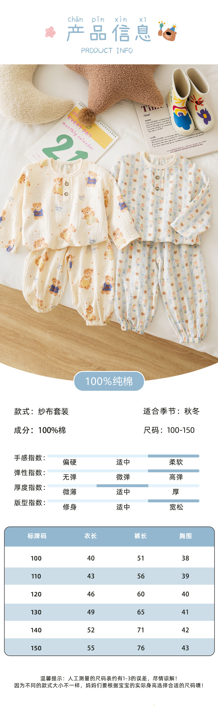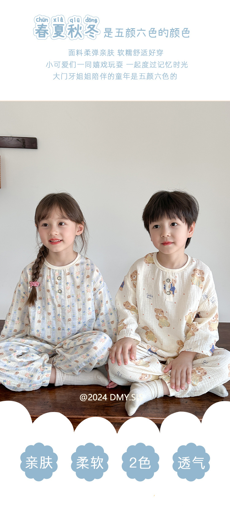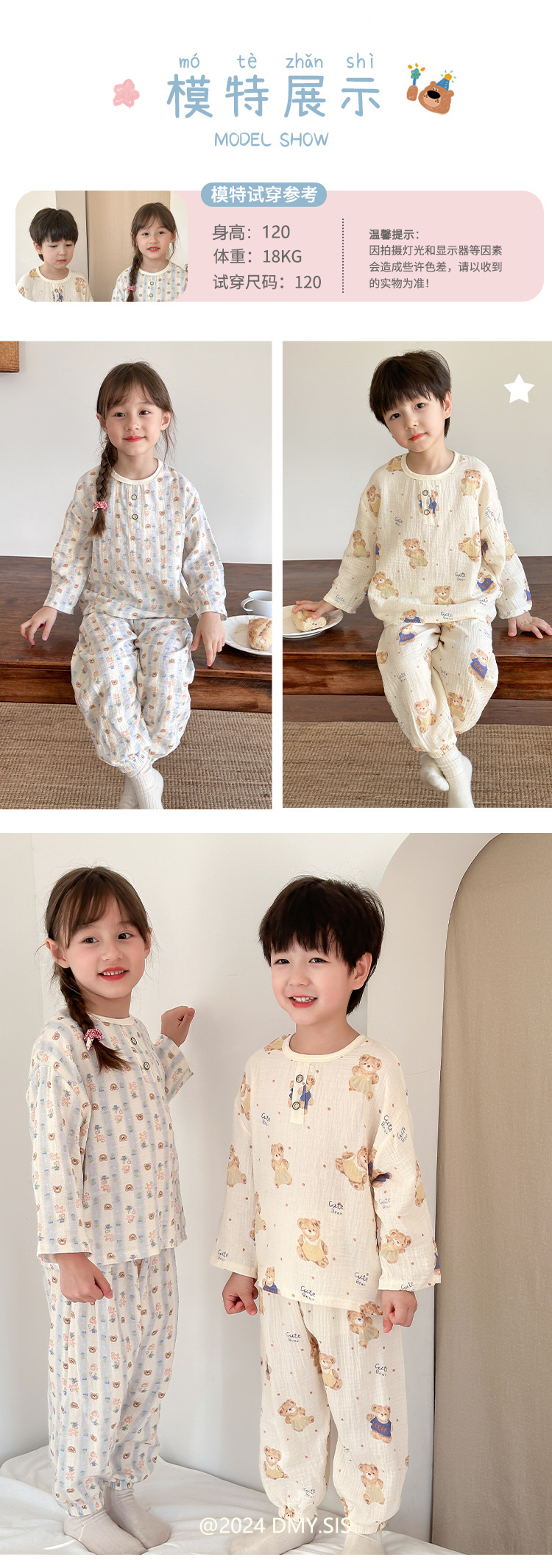 MYSIS 거즈 속옷 세트 순면 홈웨어 잠옷 가을옷 아동용 A급 곰돌이스토어 가기