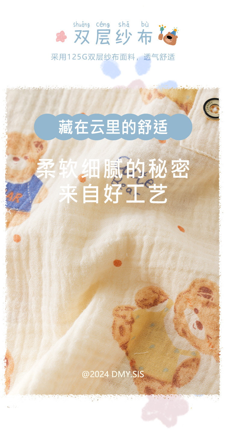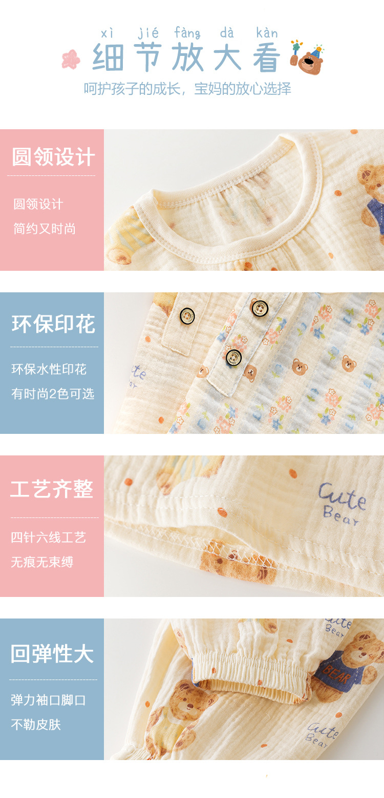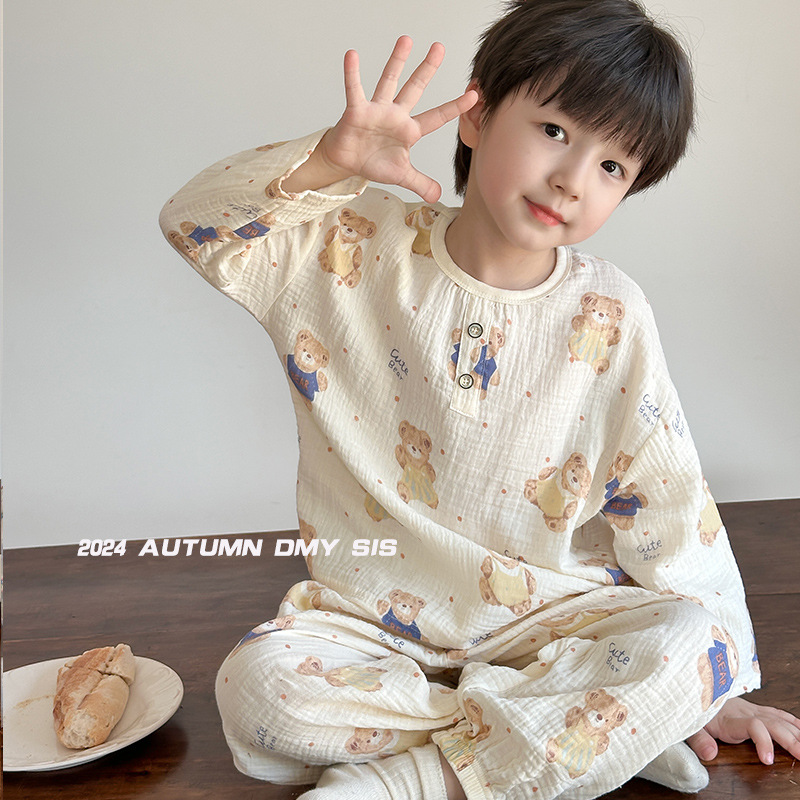 MYSIS 거즈 속옷 세트 순면 홈웨어 잠옷 가을옷 아동용 A급 곰돌이