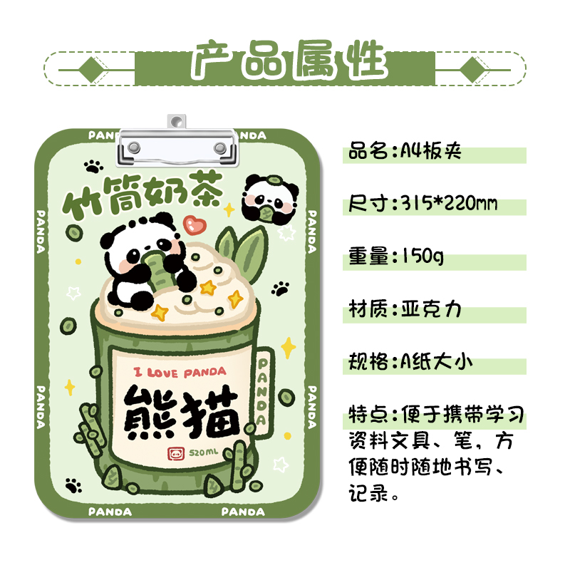 대나무 팬더 플레이트 클립 a4 아크릴 쓰기 패드 작업 고정 투명 메뉴 보드 학생 높은 컬러 값 쓰기스토어 가기
