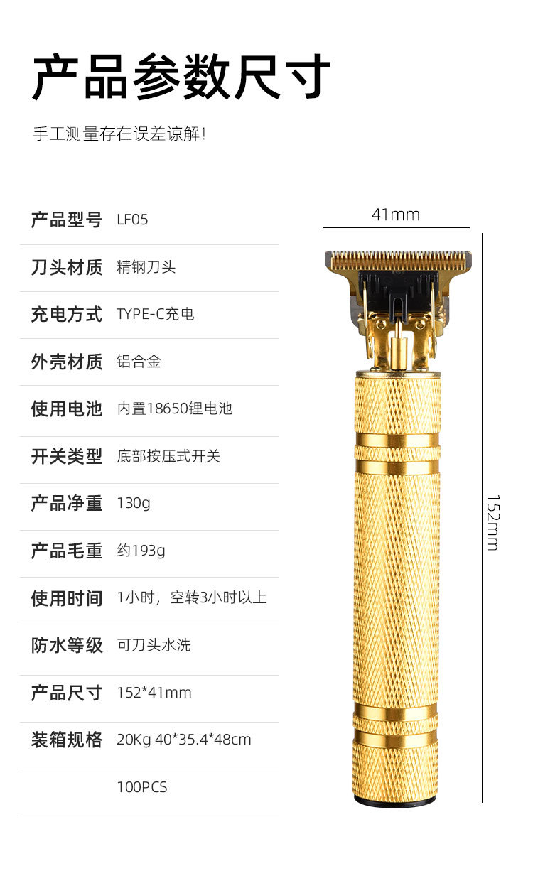 공장 직접 금 knurled 다기능 헤어 클리퍼 강한 전원 긴 내구성 알루미늄 합금 전기 클리퍼