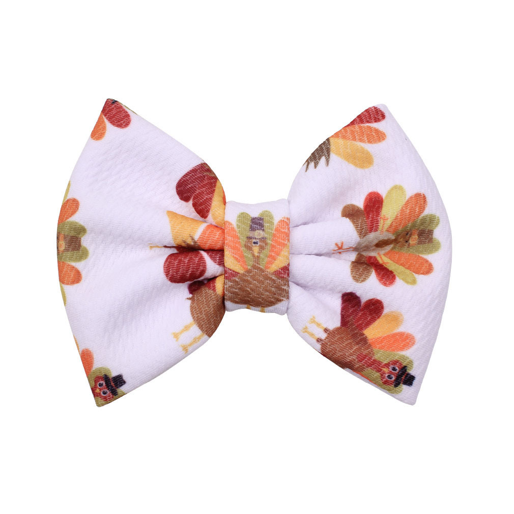 名称:5英寸印花泡泡布蝴蝶结发夹配件