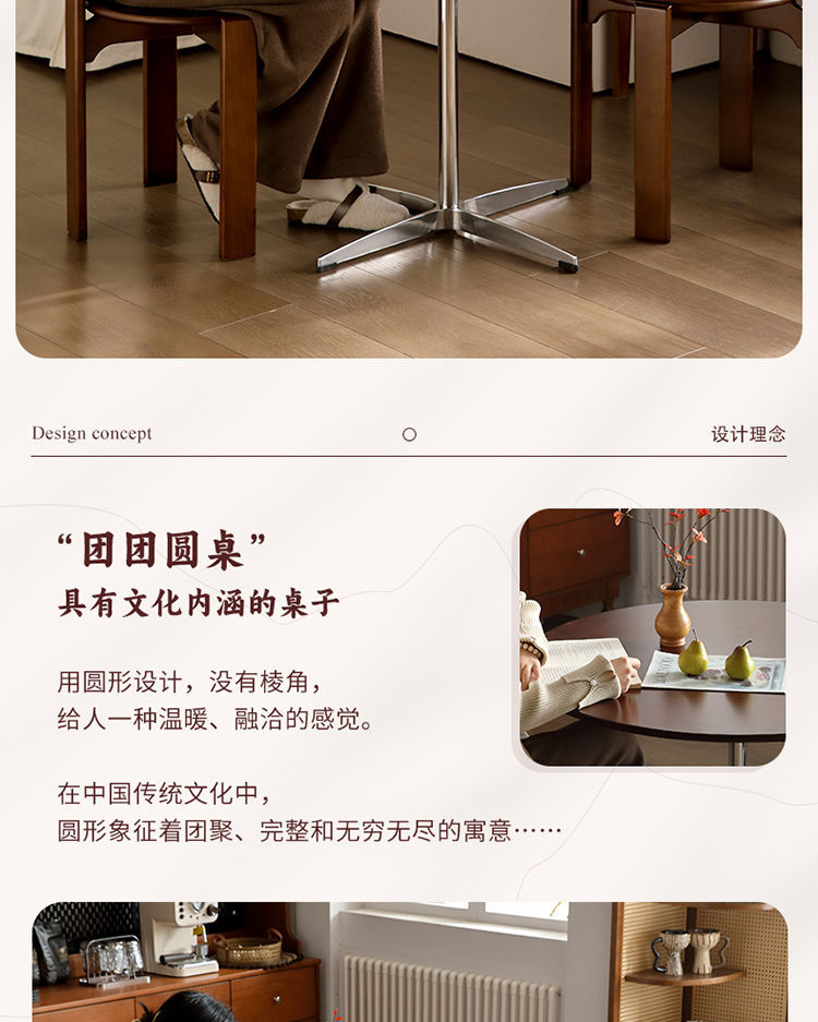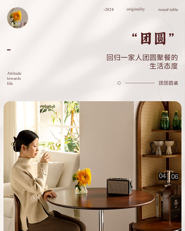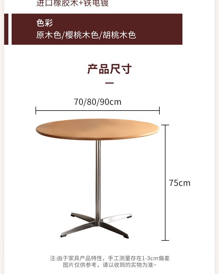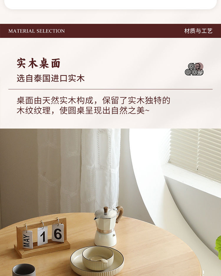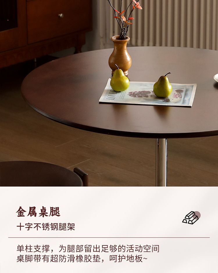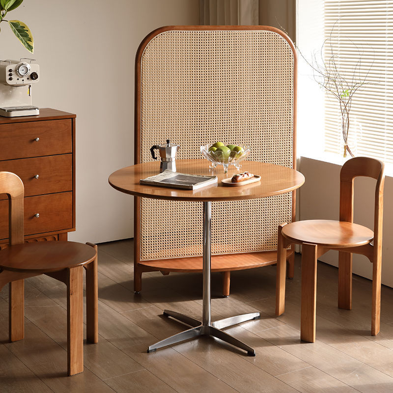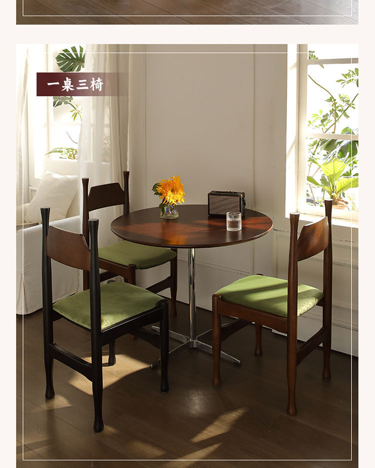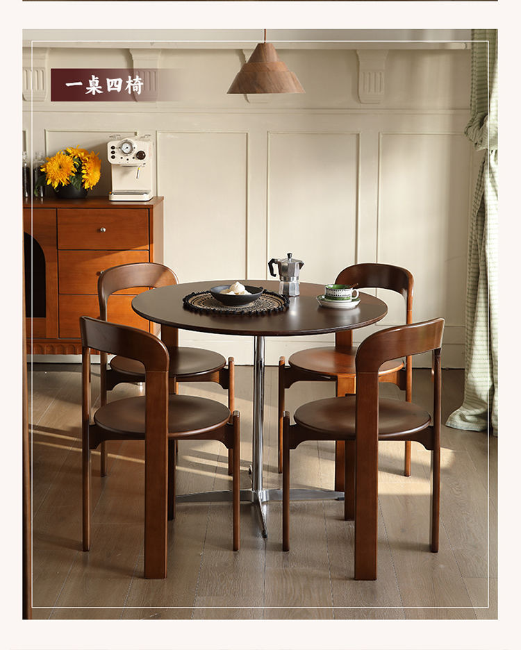 월넛 컬러 솔리드 우드 작은 라운드 테이블 작은 아파트 가정용 빈티지 식탁 및 의자 카페 중동 고대 발코니 커피 테이블 식사 테이블