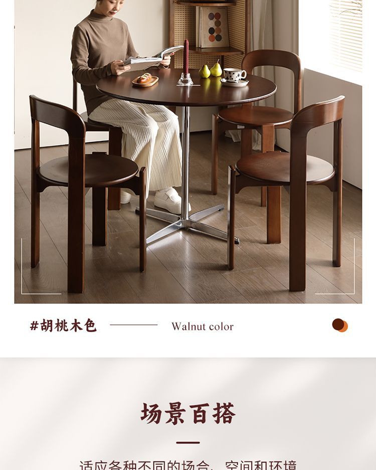 월넛 컬러 솔리드 우드 작은 라운드 테이블 작은 아파트 가정용 빈티지 식탁 및 의자 카페 중동 고대 발코니 커피 테이블 식사 테이블스토어 가기