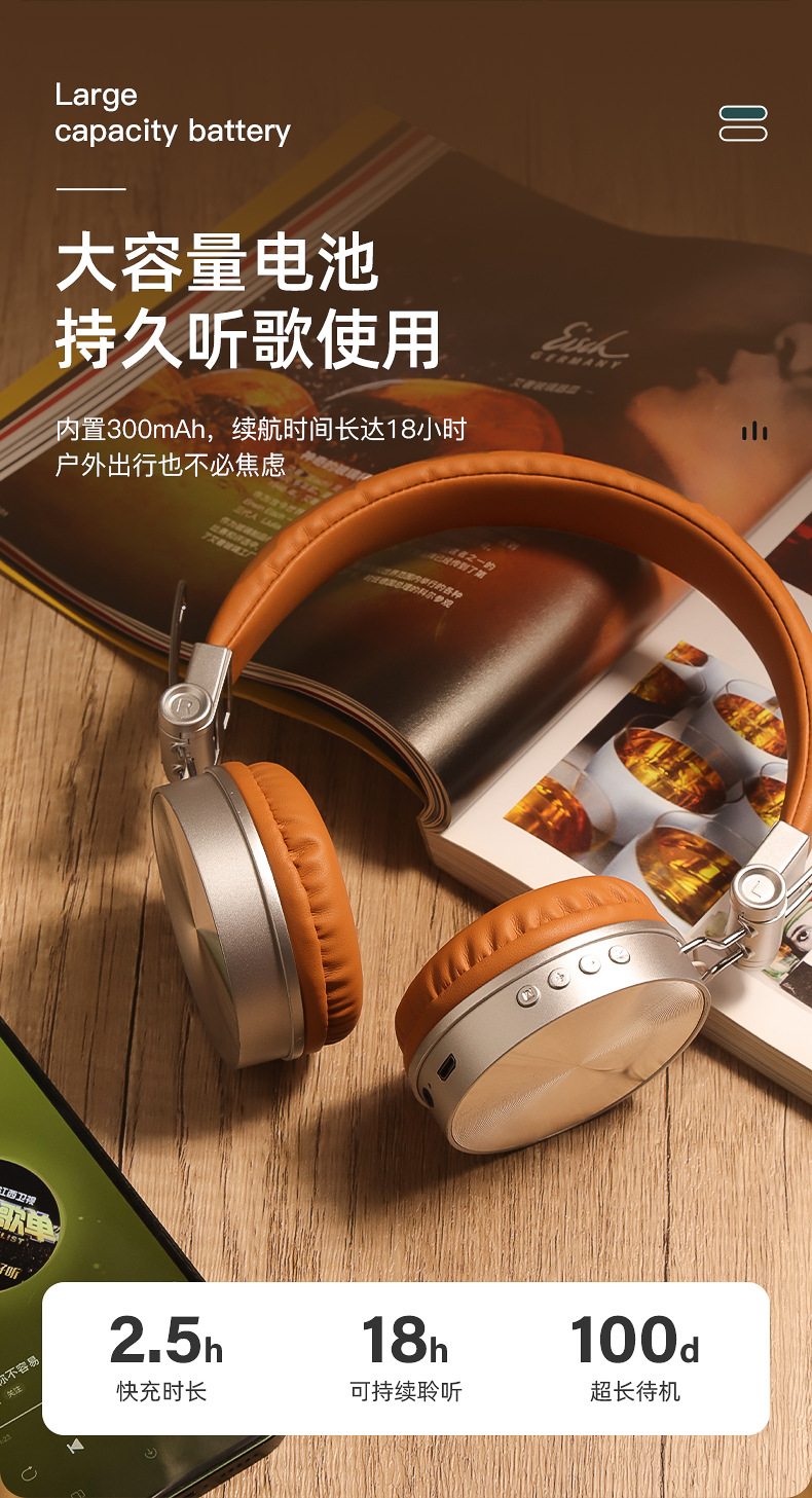 SV-01 미국 복고풍 스타일 VJ901 블루투스 헤드셋 헤드셋 긴 대기 배터리 수명 접이식 카드 헤드셋스토어 가기