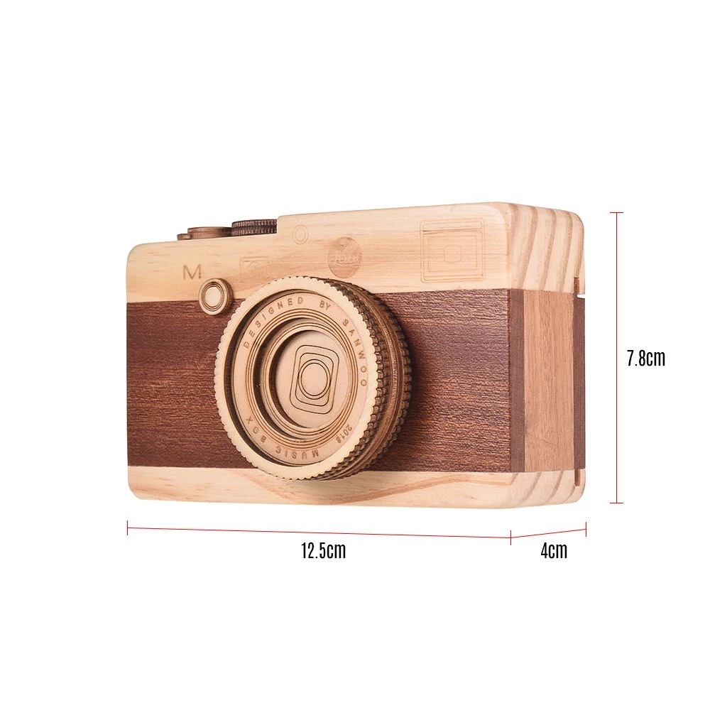 特点: 机械手摇音乐盒,只需手动给音乐盒上弦,然后打开开关即可播放音乐。 演奏优美的古典旋律。(旋律随机发货) 木质材料和复古相机造型设计,精致而有特色。 可以很好地装饰你的梳妆台、写字台、书架等。 送给家人、朋友、同事等的一份很棒的节日或生日礼物 规格: