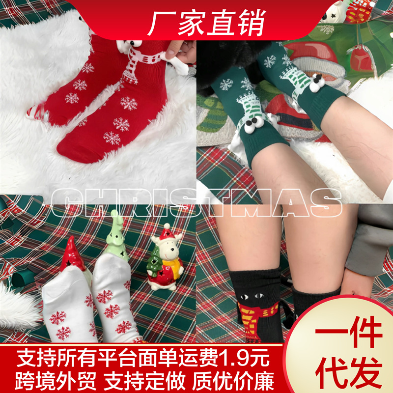 남성과 여성 친구를위한 크리스마스 선물 빨간색 크리스마스 양말 커플 가을, 겨울 만화 중간 튜브 양말 통기성 커플 스타일스토어 가기