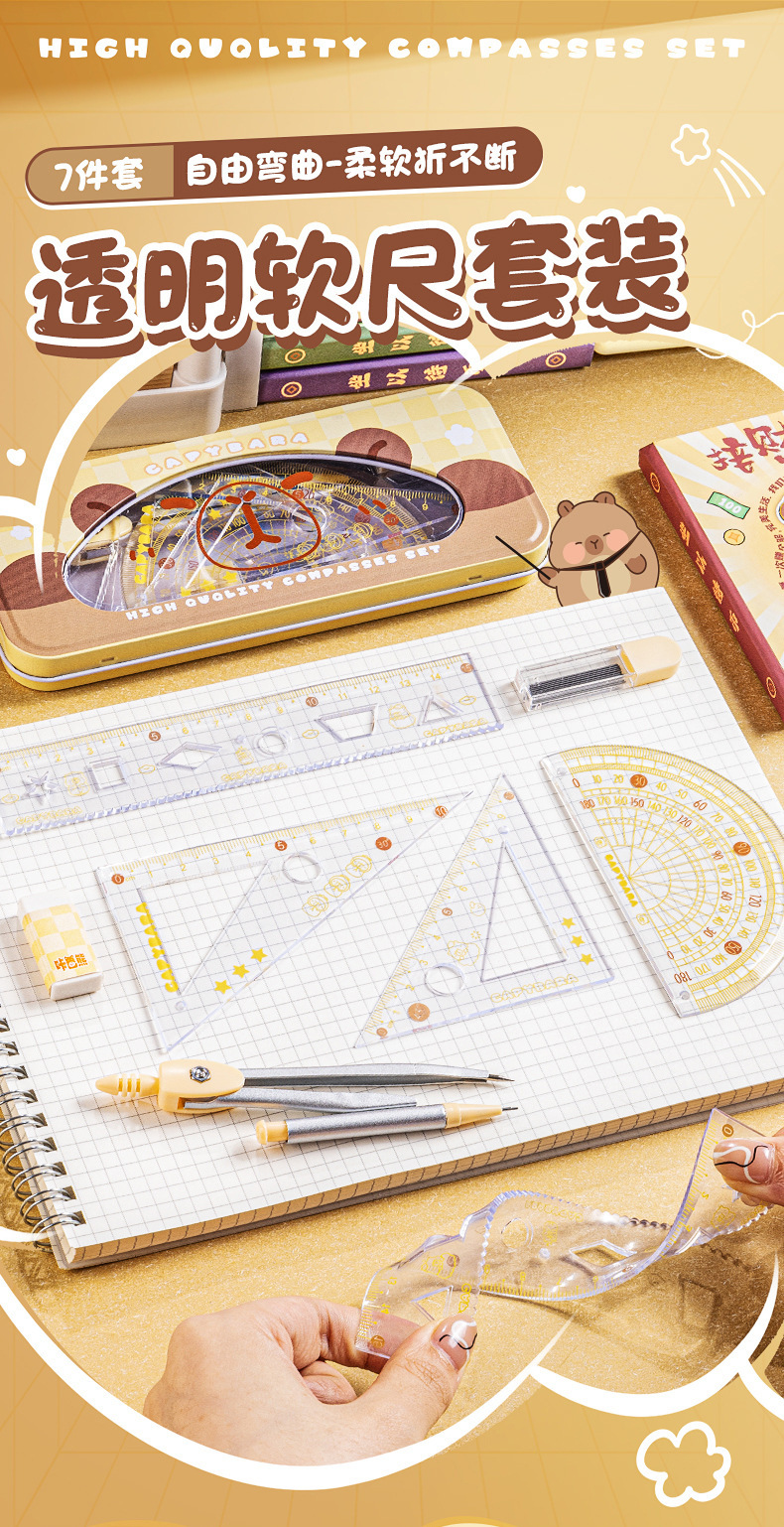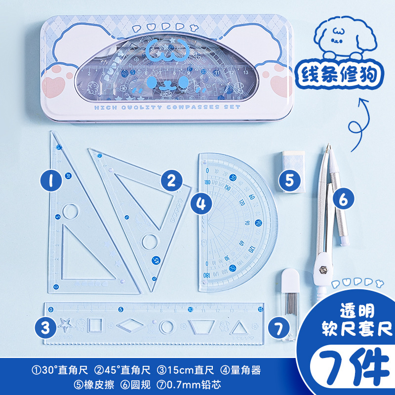 문구 세트, 통치자 세트, 학생의 특수 삼각형 통치자는 조합 시험 도면, 사무실 그림, 철 상자의 전체 세트를 나침합니다스토어 가기