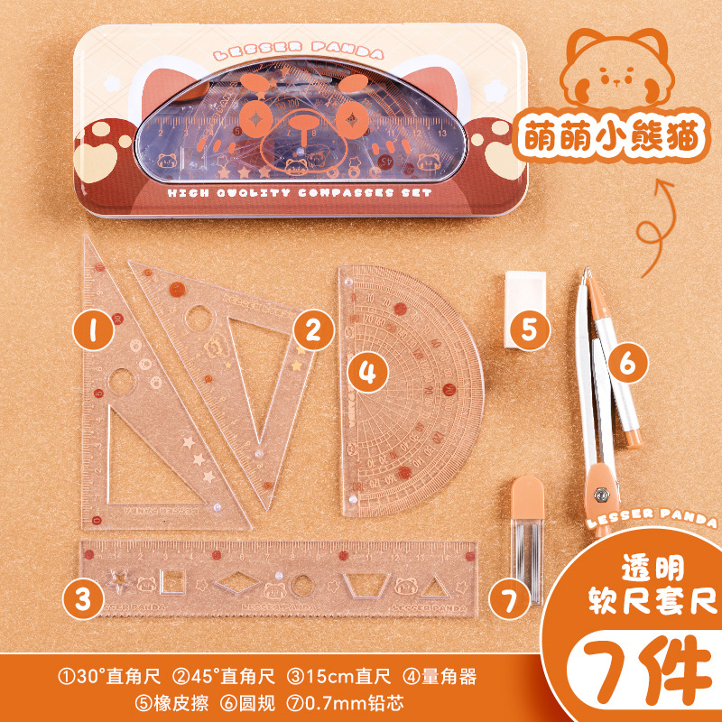 • 철제 상자 소프트 눈금자 세트 - 귀여운 붉은 팬더