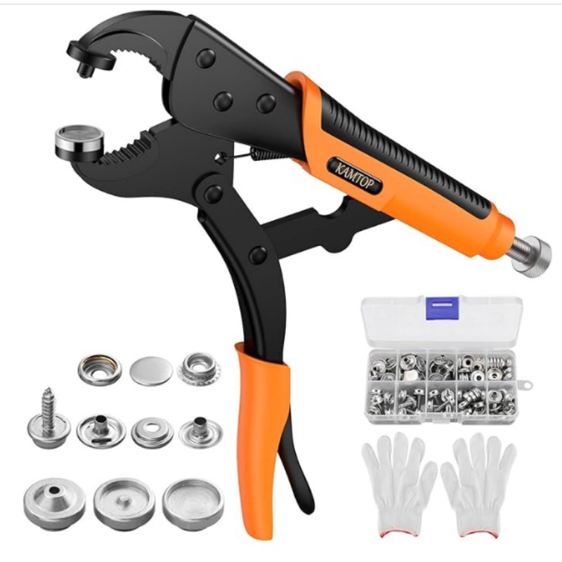 橙黑色(或者其他色)大力钳+3个模具+1副手套+15套螺丝大白扣+15套大白扣+10格收纳盒+飞机盒