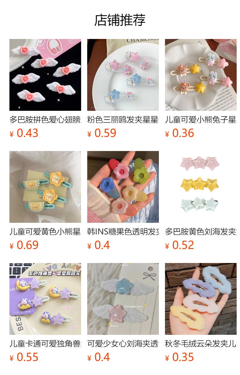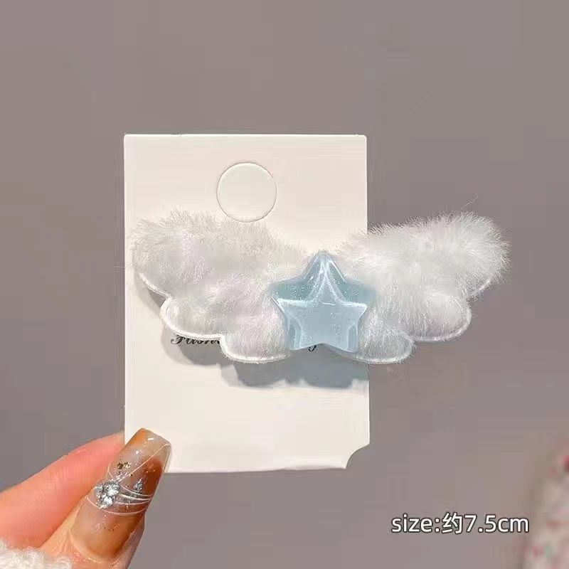 귀여운 스타 봉제 날개 머리핀 여성용 단편형 머리 조각 단편 달콤한 소녀의 덕빌 클립 머리핀 머리옷스토어 가기
