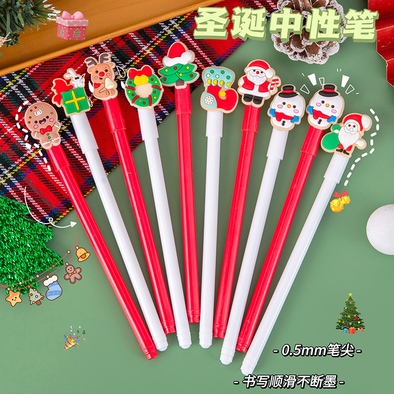 국경 귀여운 창조적 인 높은 가치 크리스마스 젤 펜 선물 학생 시험 브러시 검은 펜 문구 도매스토어 가기