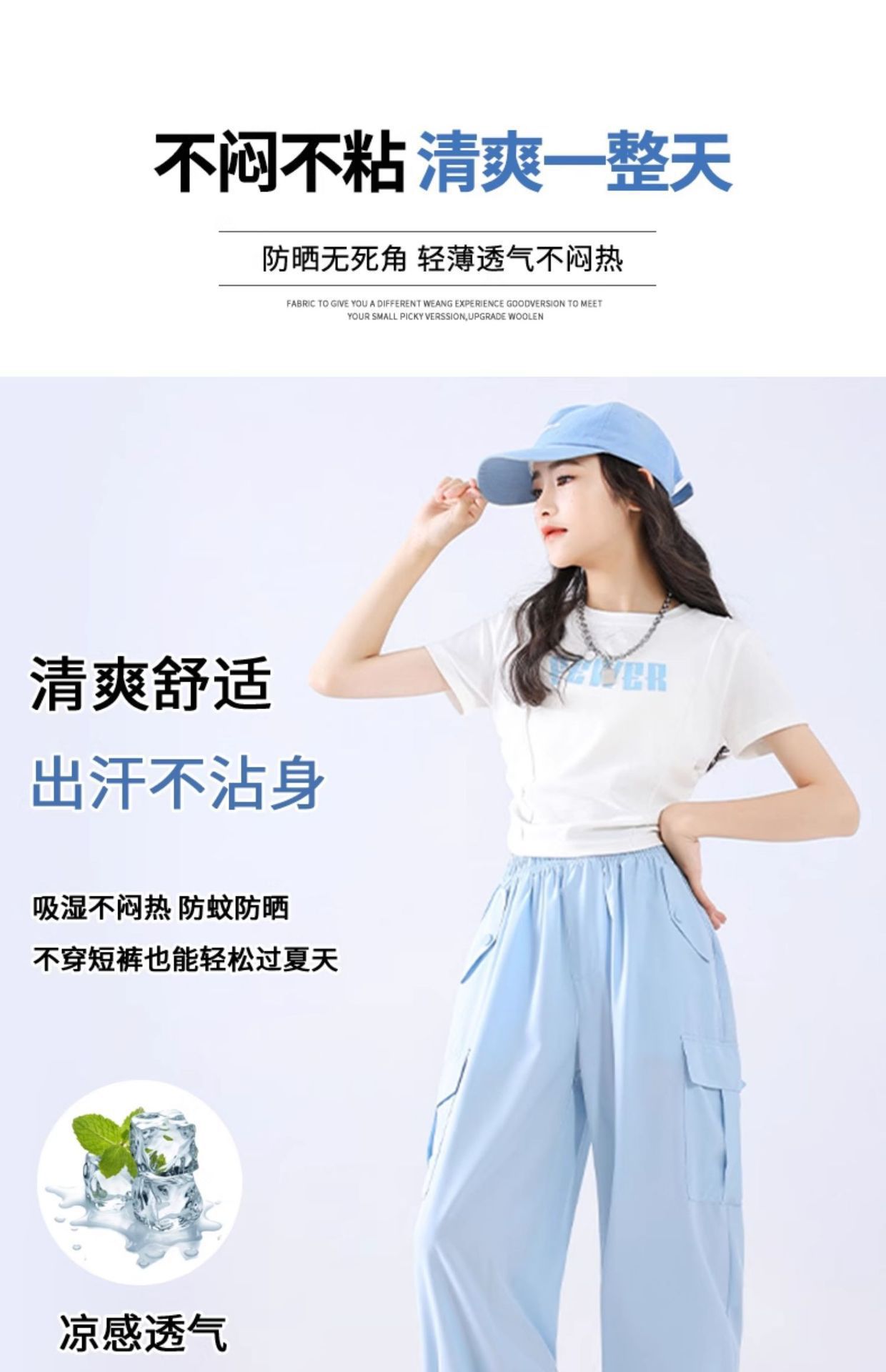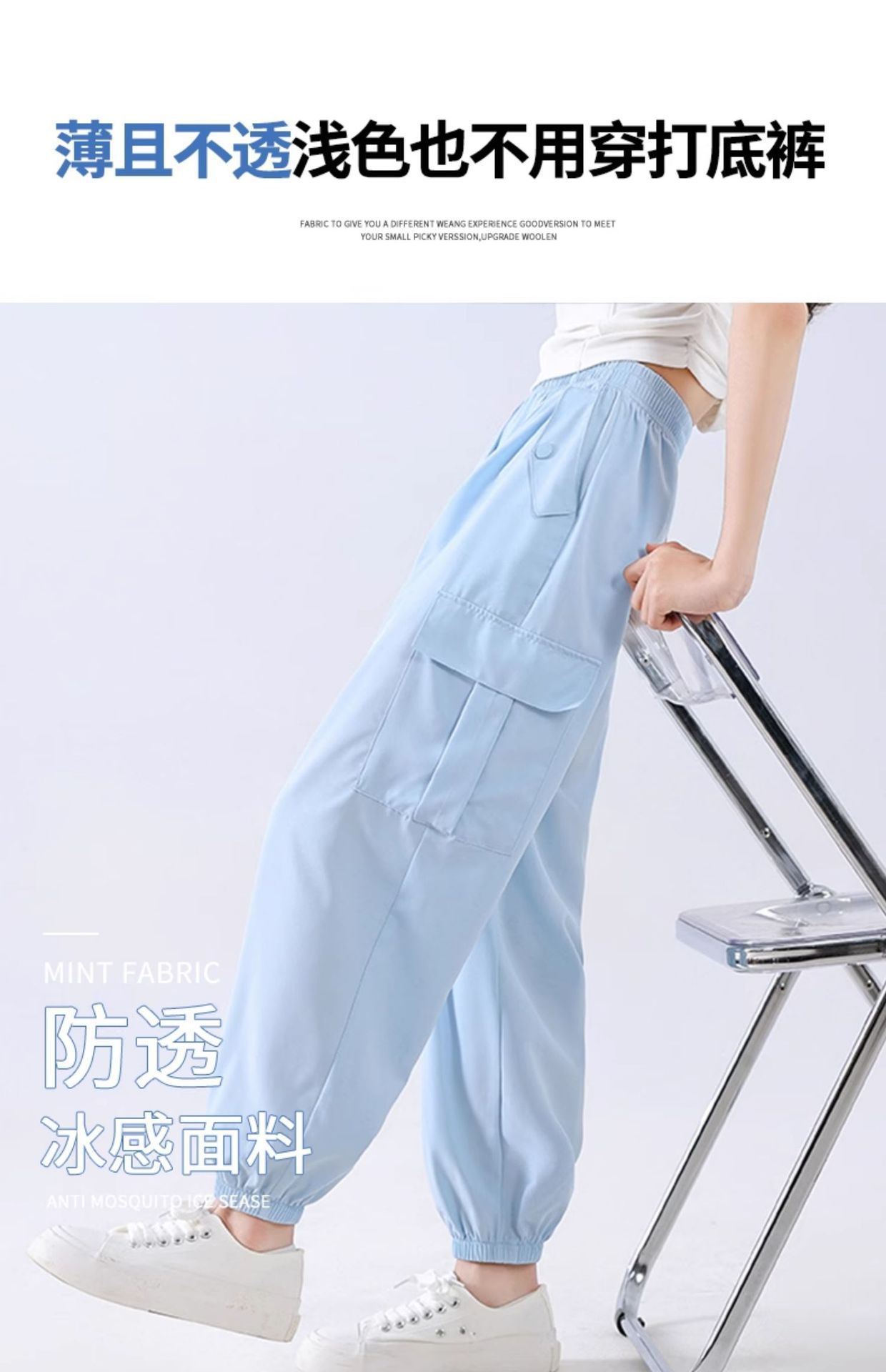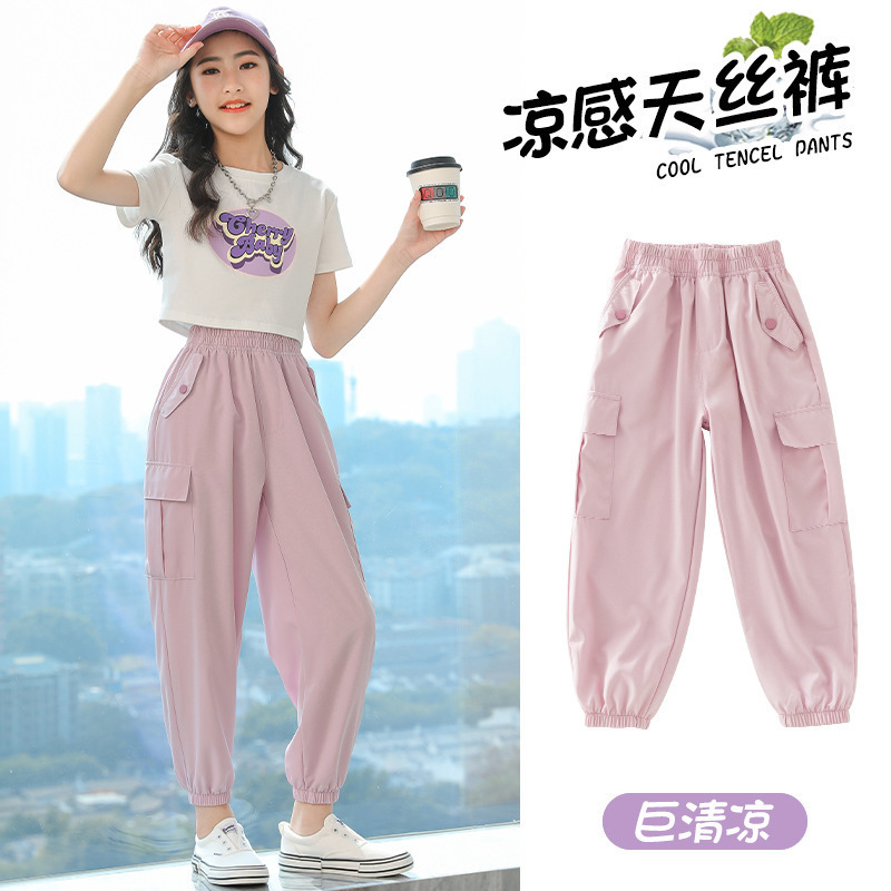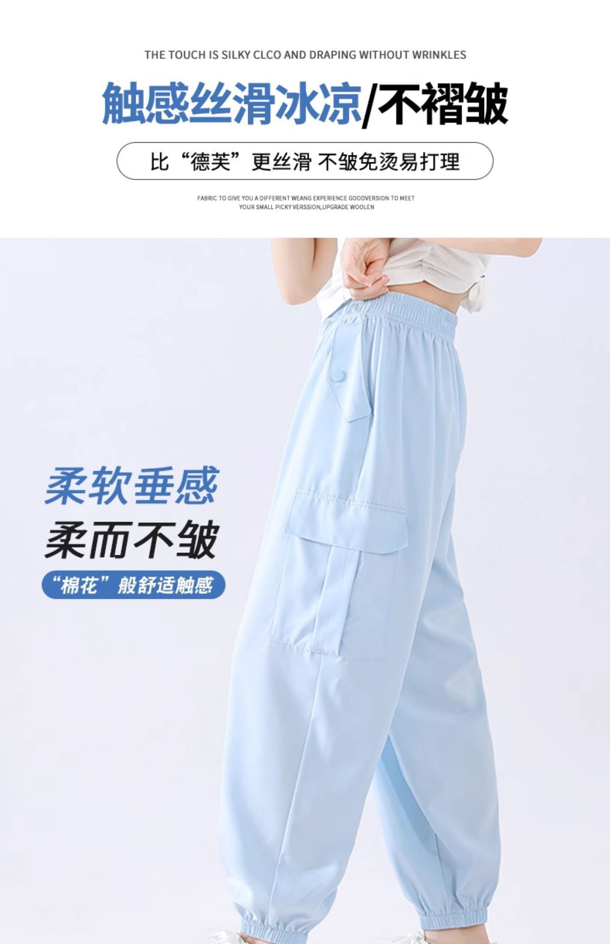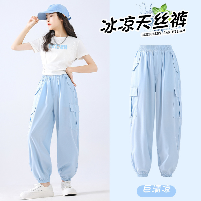 소녀 바지 여름 큰 아이들 2024 새로운 얼음 실크 안티 모기 빠른 건조 여름 착용 어린이 여름 스포츠 캐주얼 바지