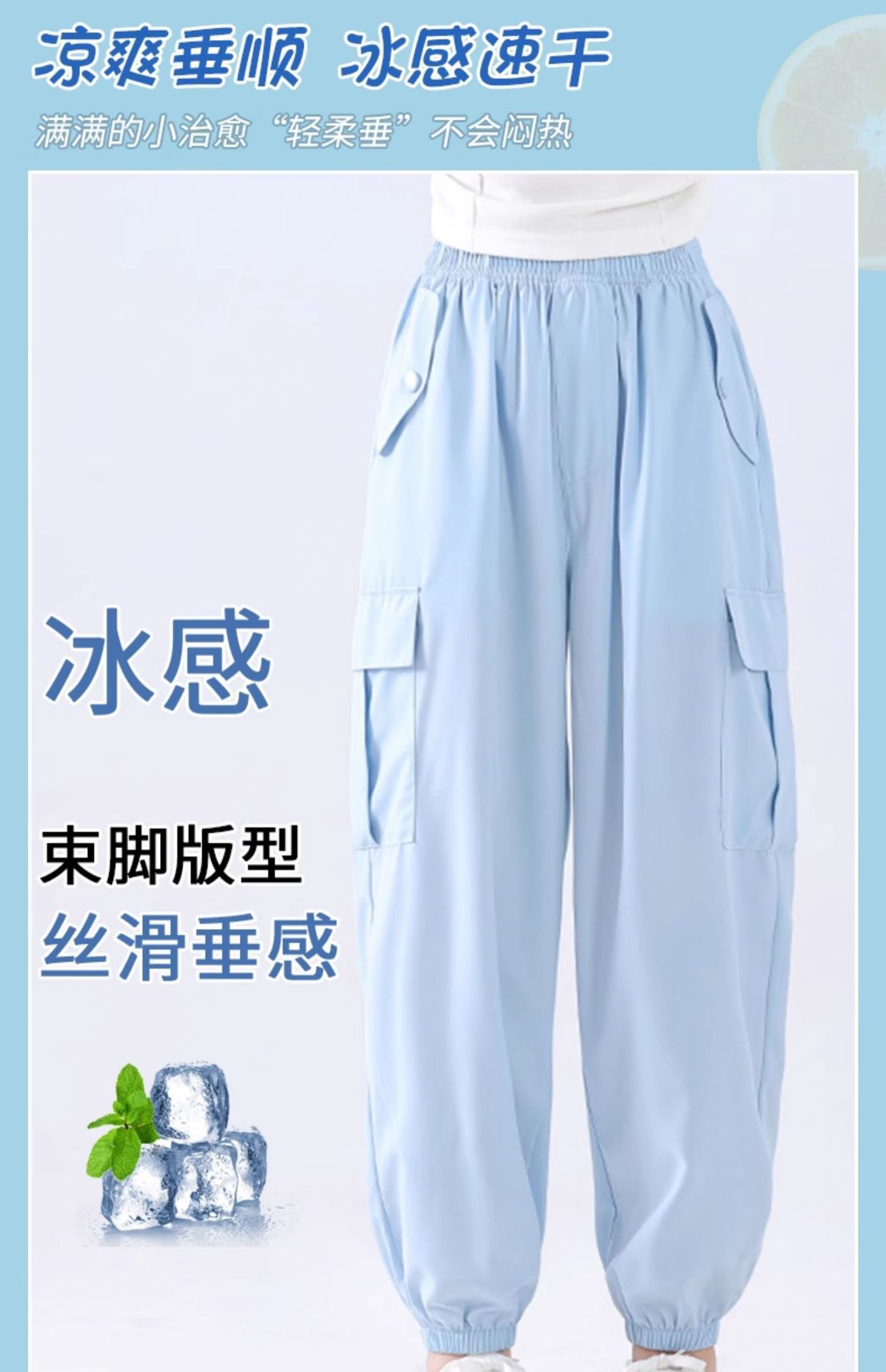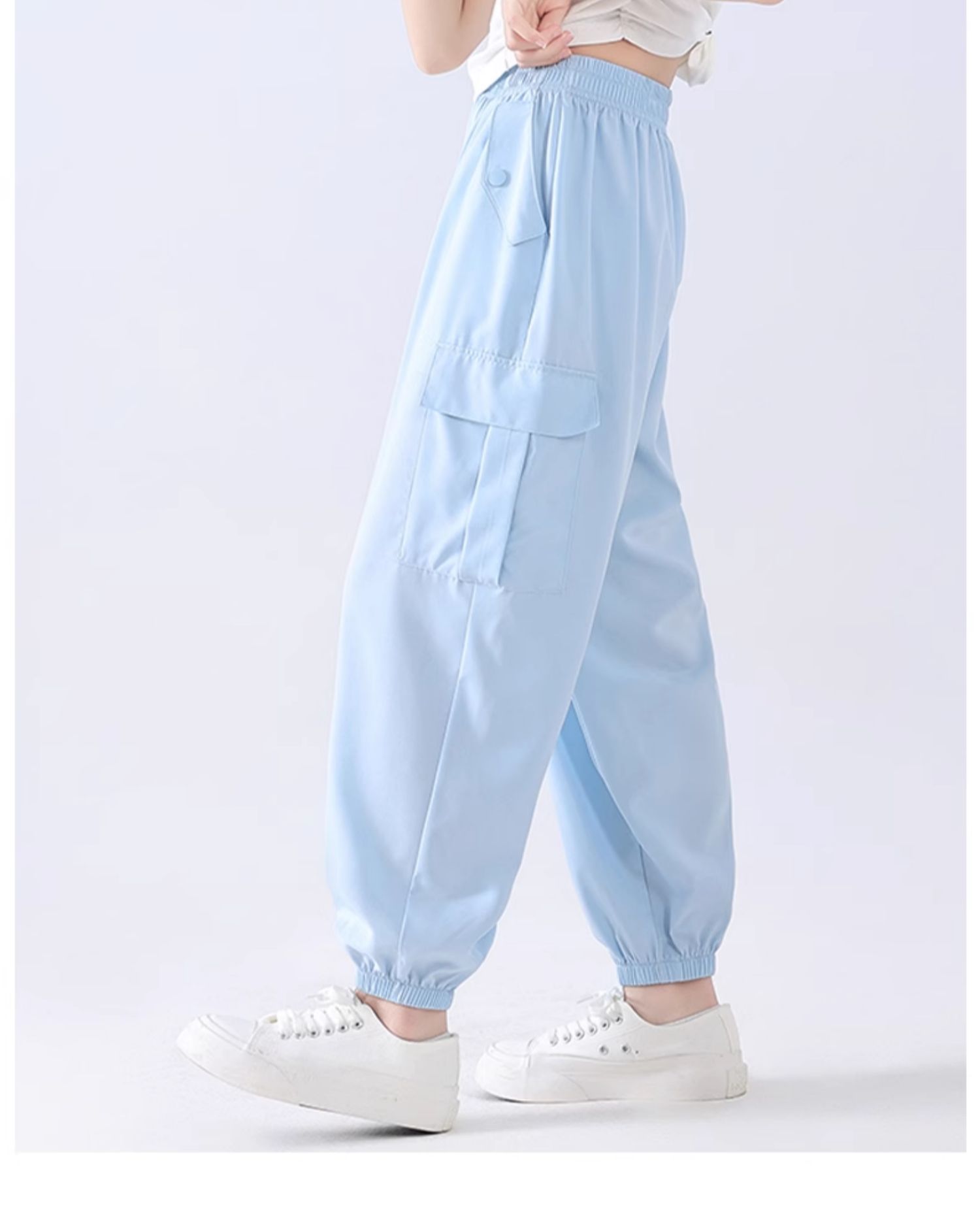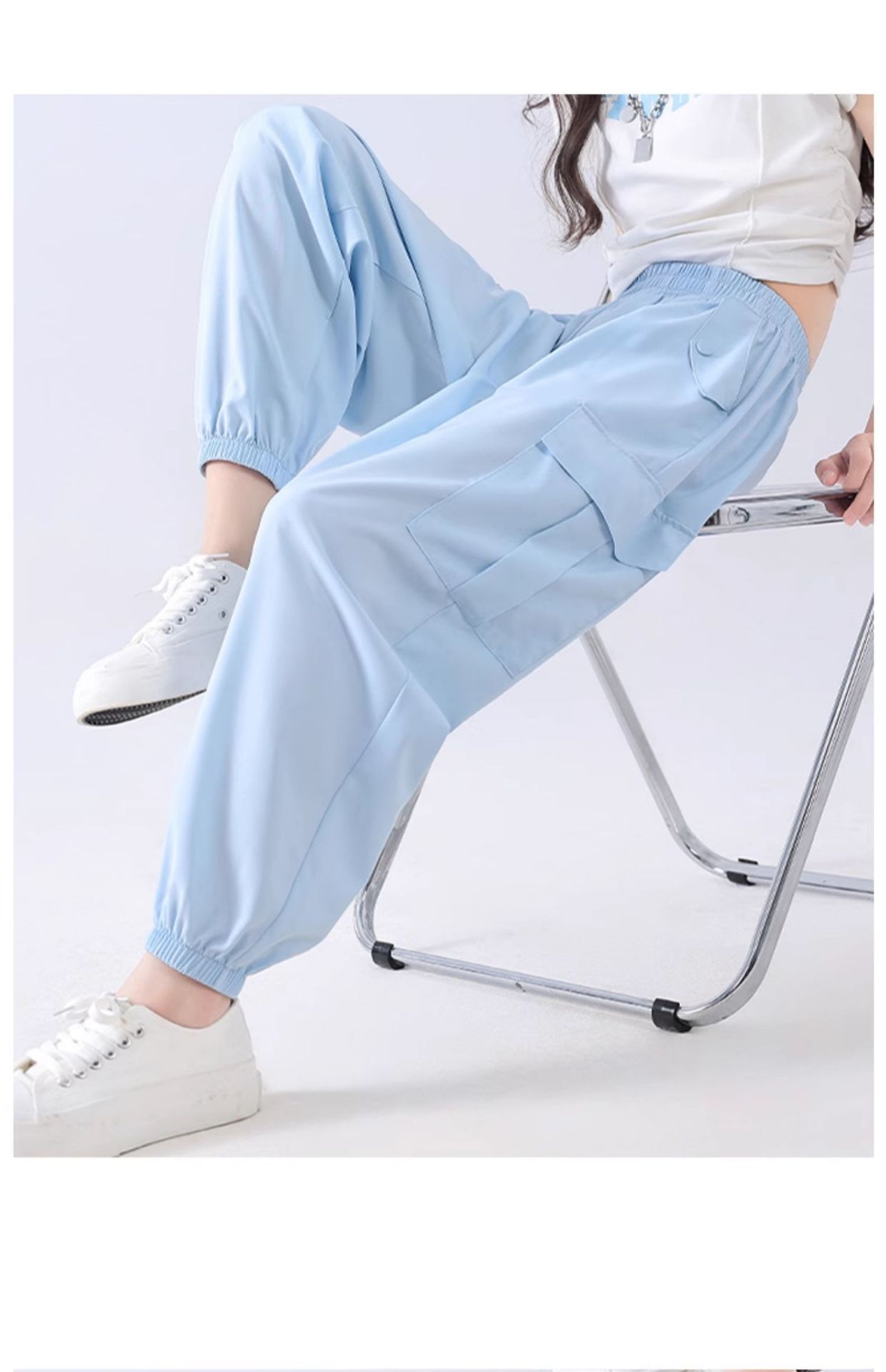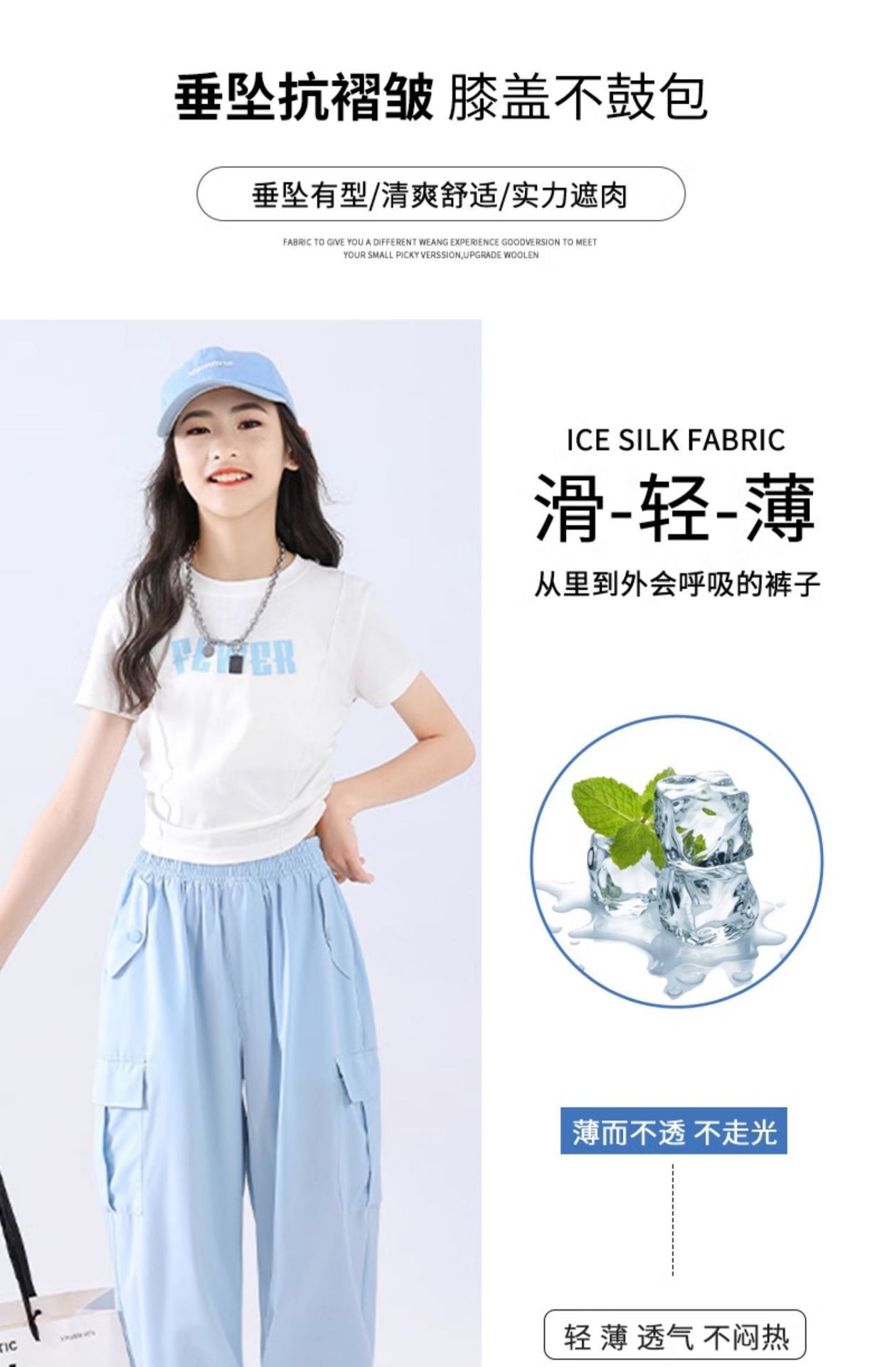 소녀 바지 여름 큰 아이들 2024 새로운 얼음 실크 안티 모기 빠른 건조 여름 착용 어린이 여름 스포츠 캐주얼 바지