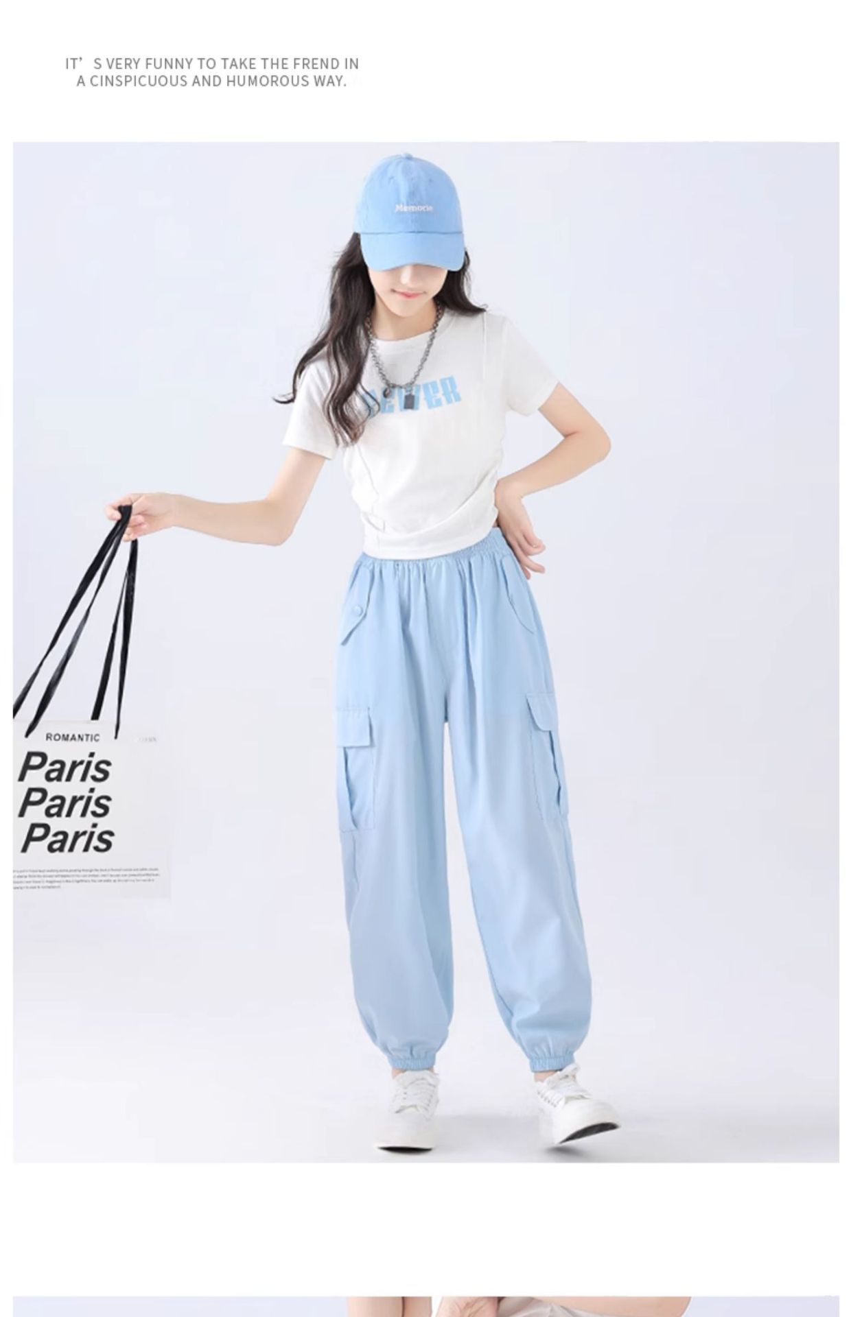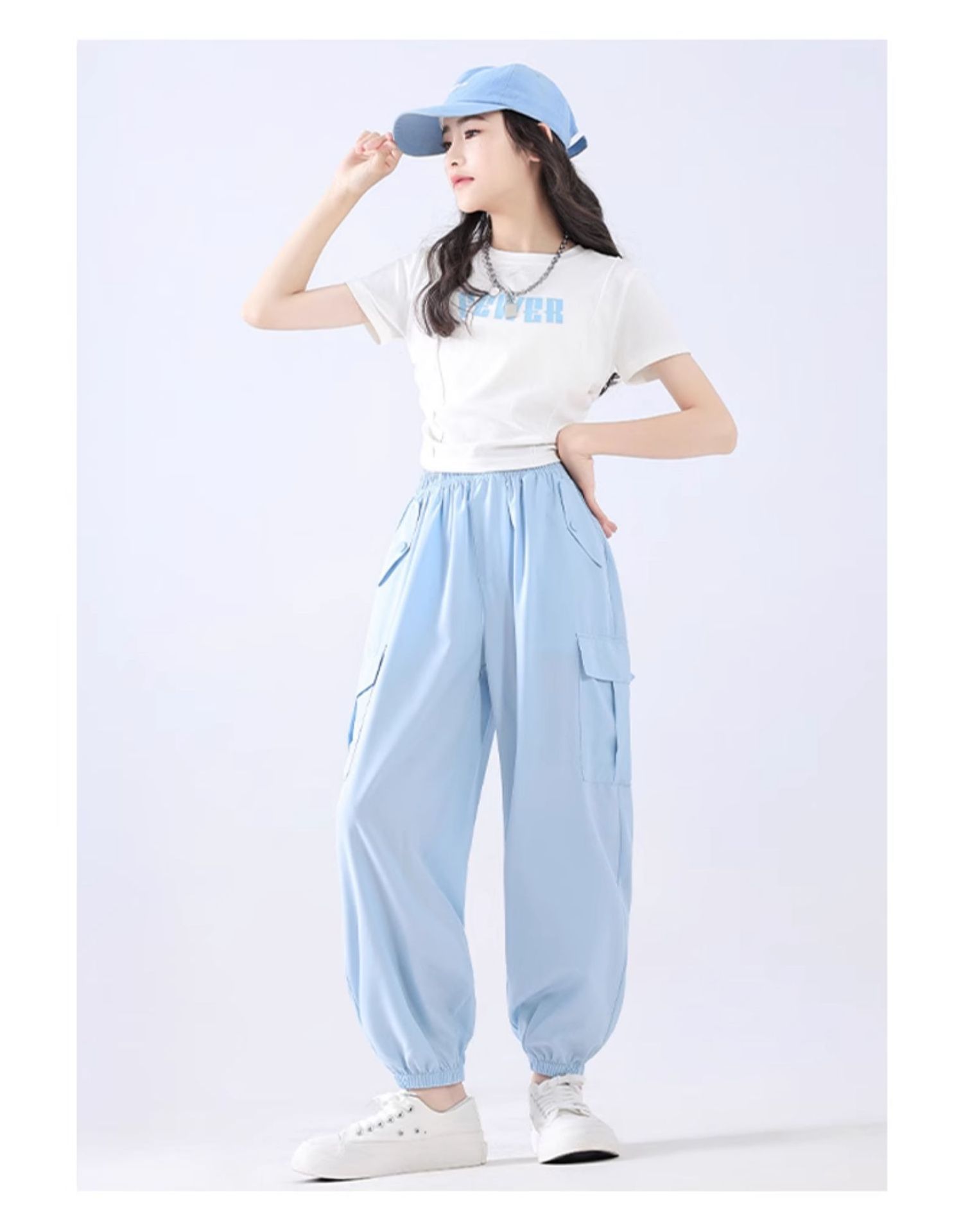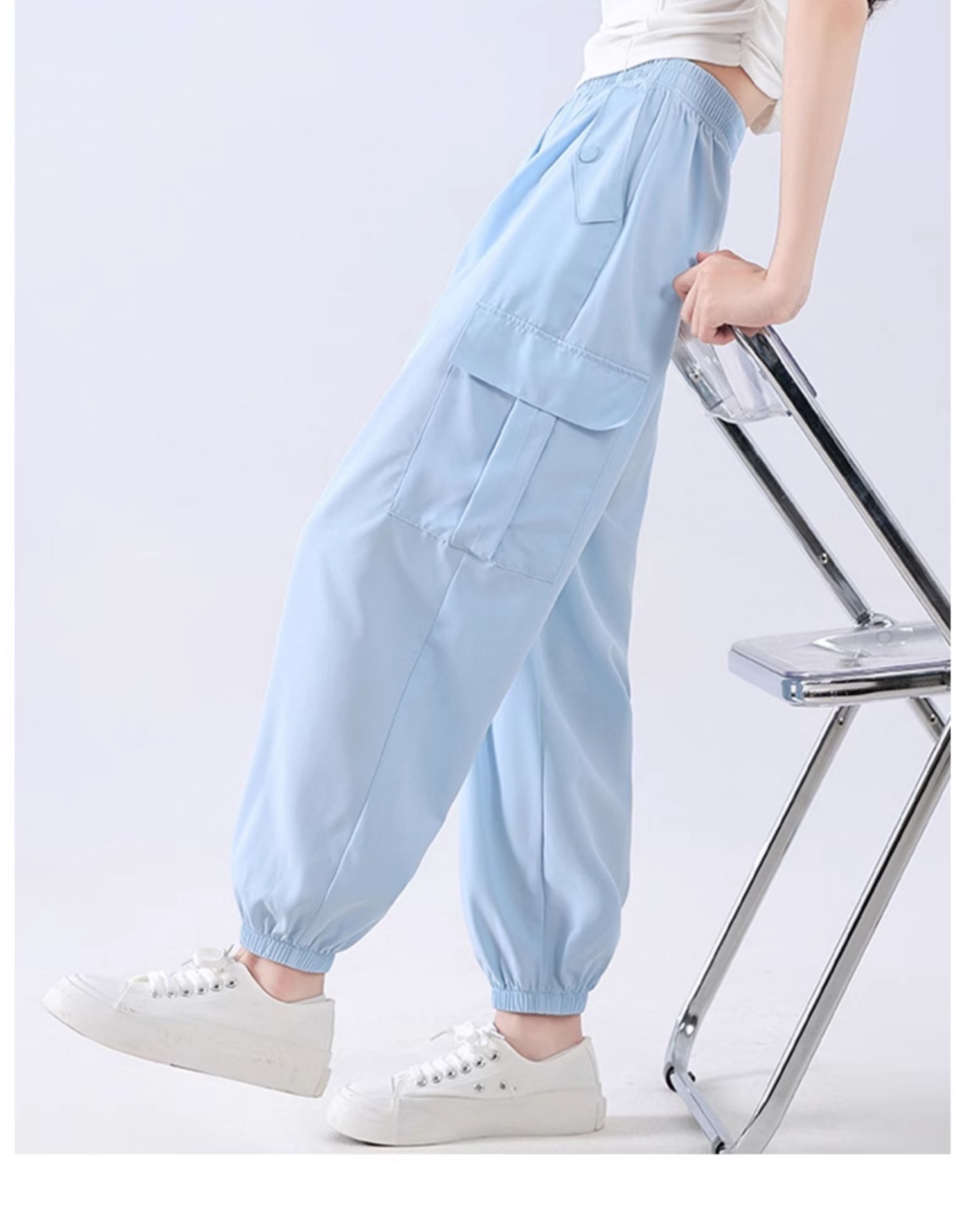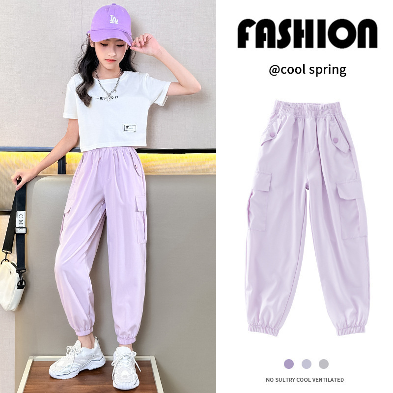 소녀 바지 여름 큰 아이들 2024 새로운 얼음 실크 안티 모기 빠른 건조 여름 착용 어린이 여름 스포츠 캐주얼 바지