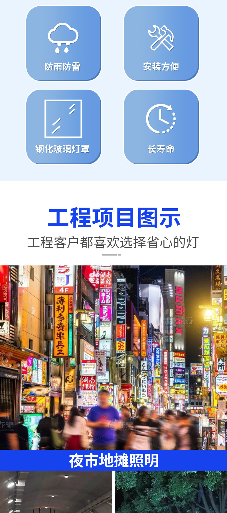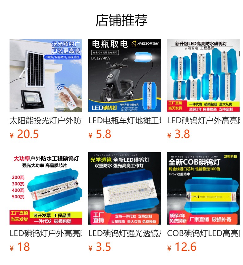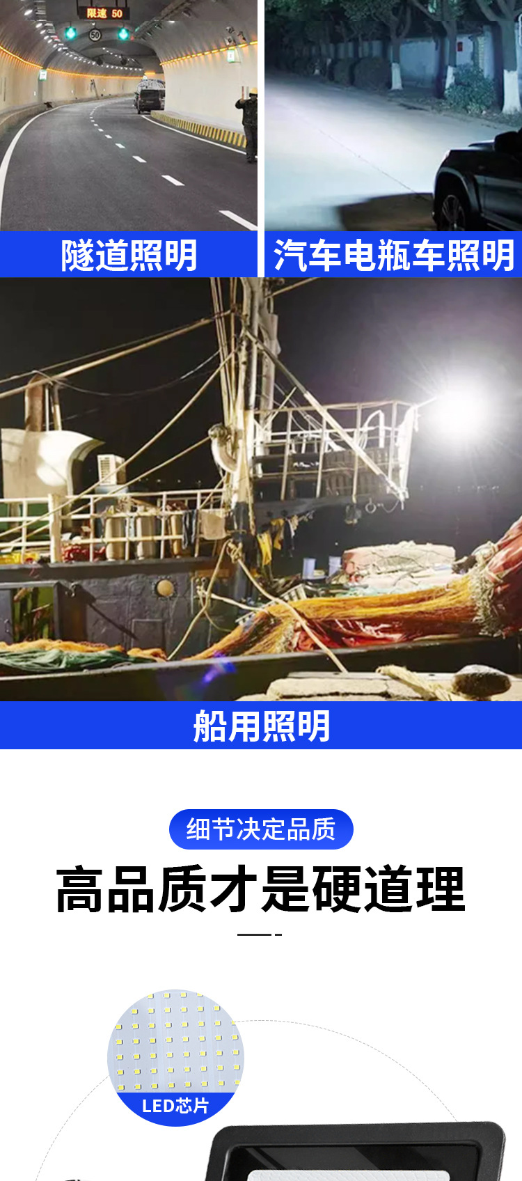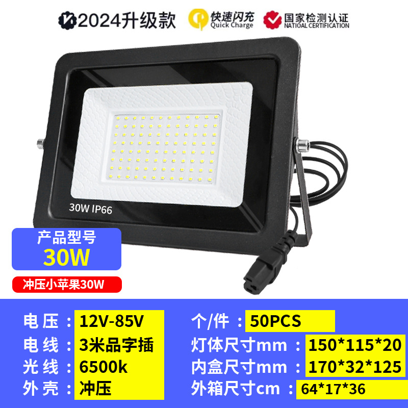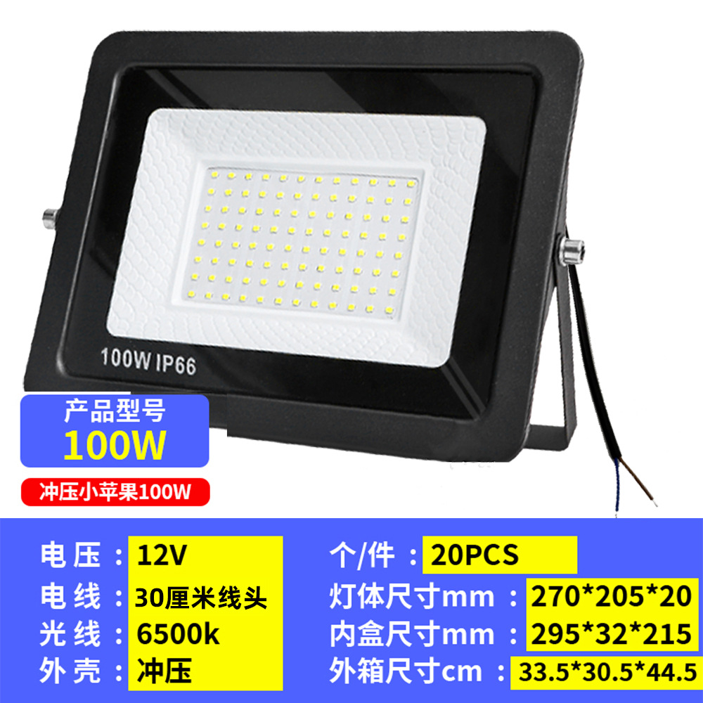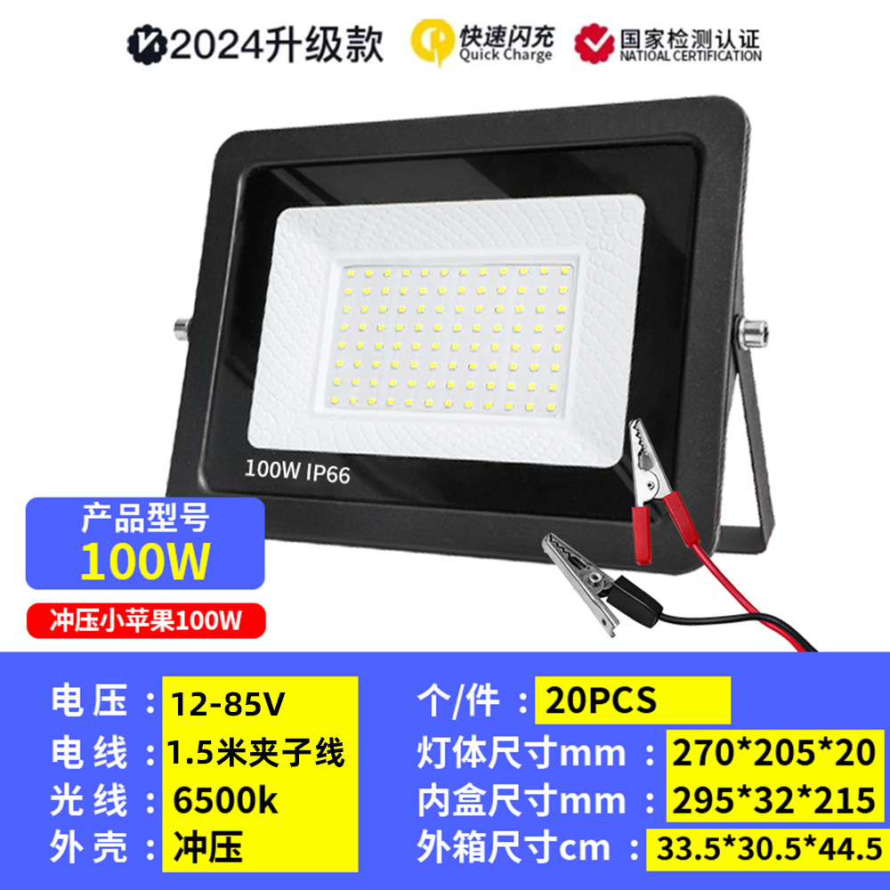 地摊低压投光灯10w20w30w50W100w户外防水电瓶摆摊户外灯12-85V模组夜市照明灯/12V24V渔船灯直流电瓶夜市灯海上照明泛光灯36V48V