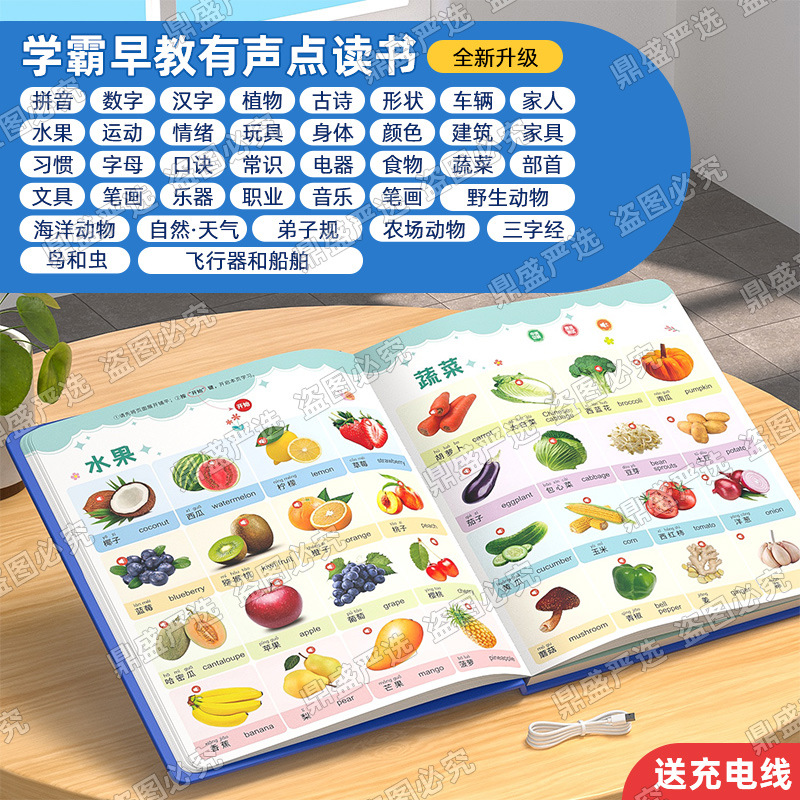 말하는 아이들의 조기 교육 오디오 북 아기 교육 계몽주의 학습 기계 충전식 장난감 음성 포인트 읽기