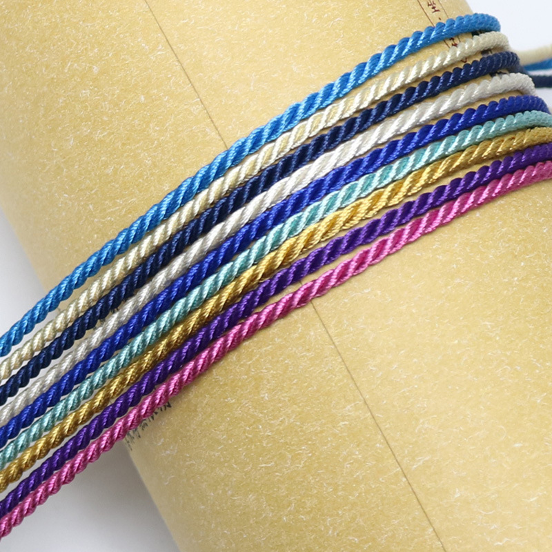 재고 공급 고급 선물 상자 휴대용 로프 3-5mm 폴리 에스테르 3 가닥 꼬인 로프 컬러 트위스트 손 로프 장식 로프