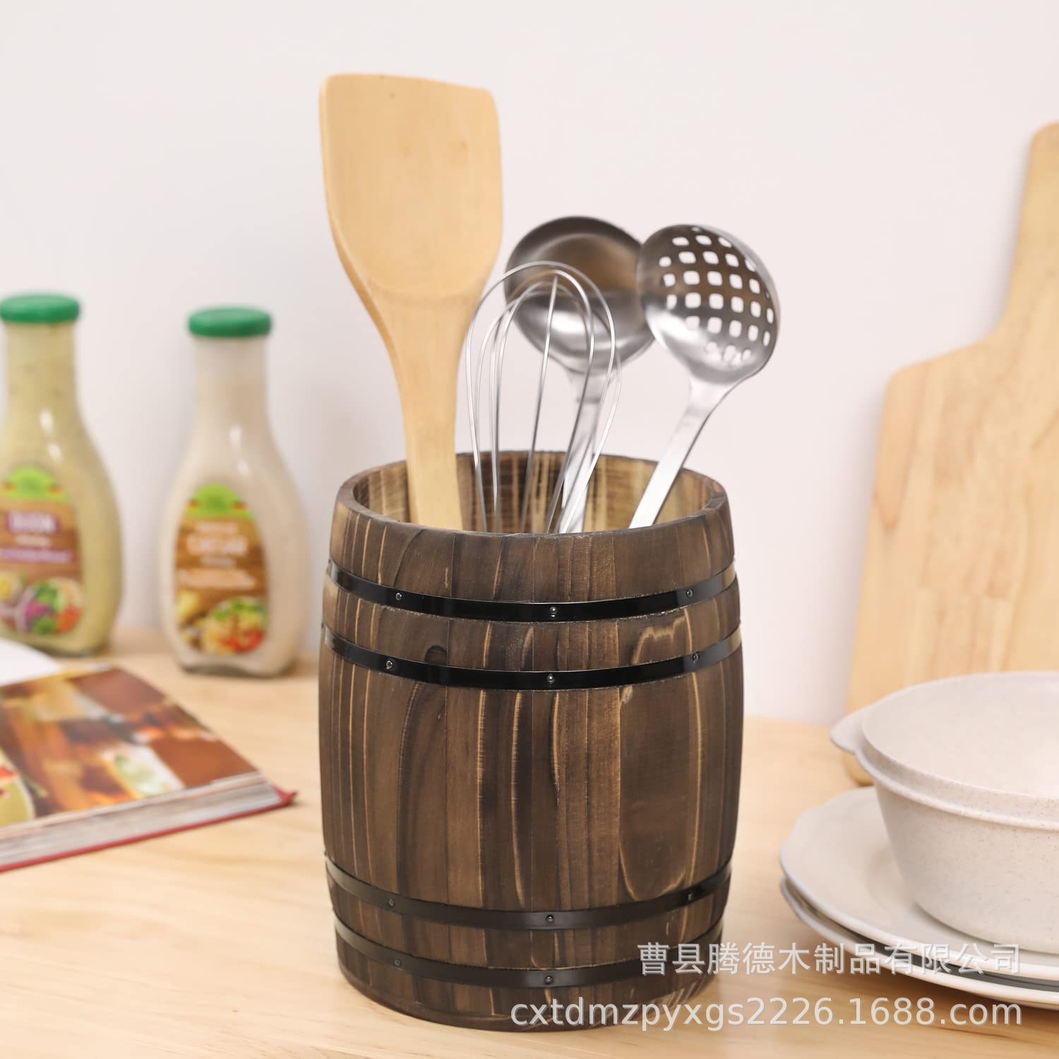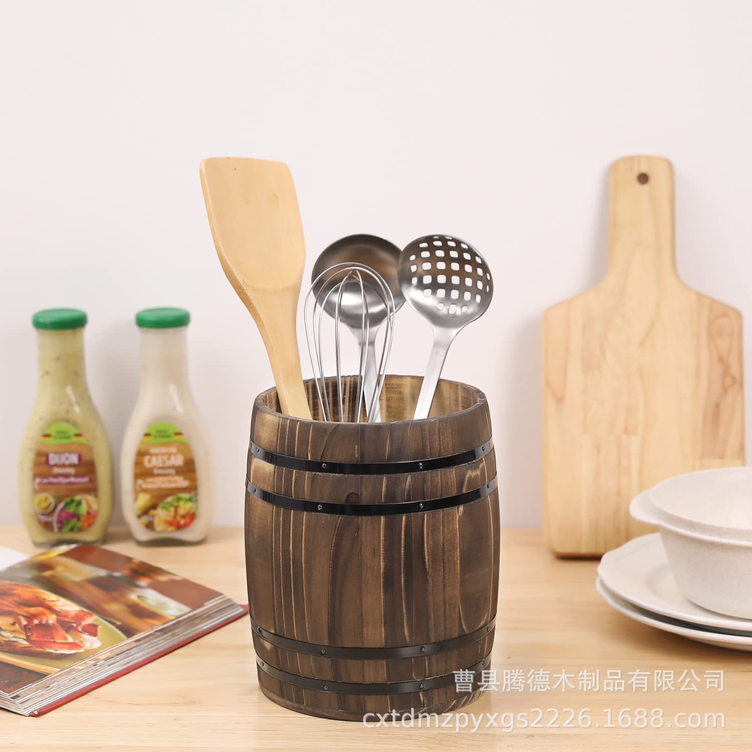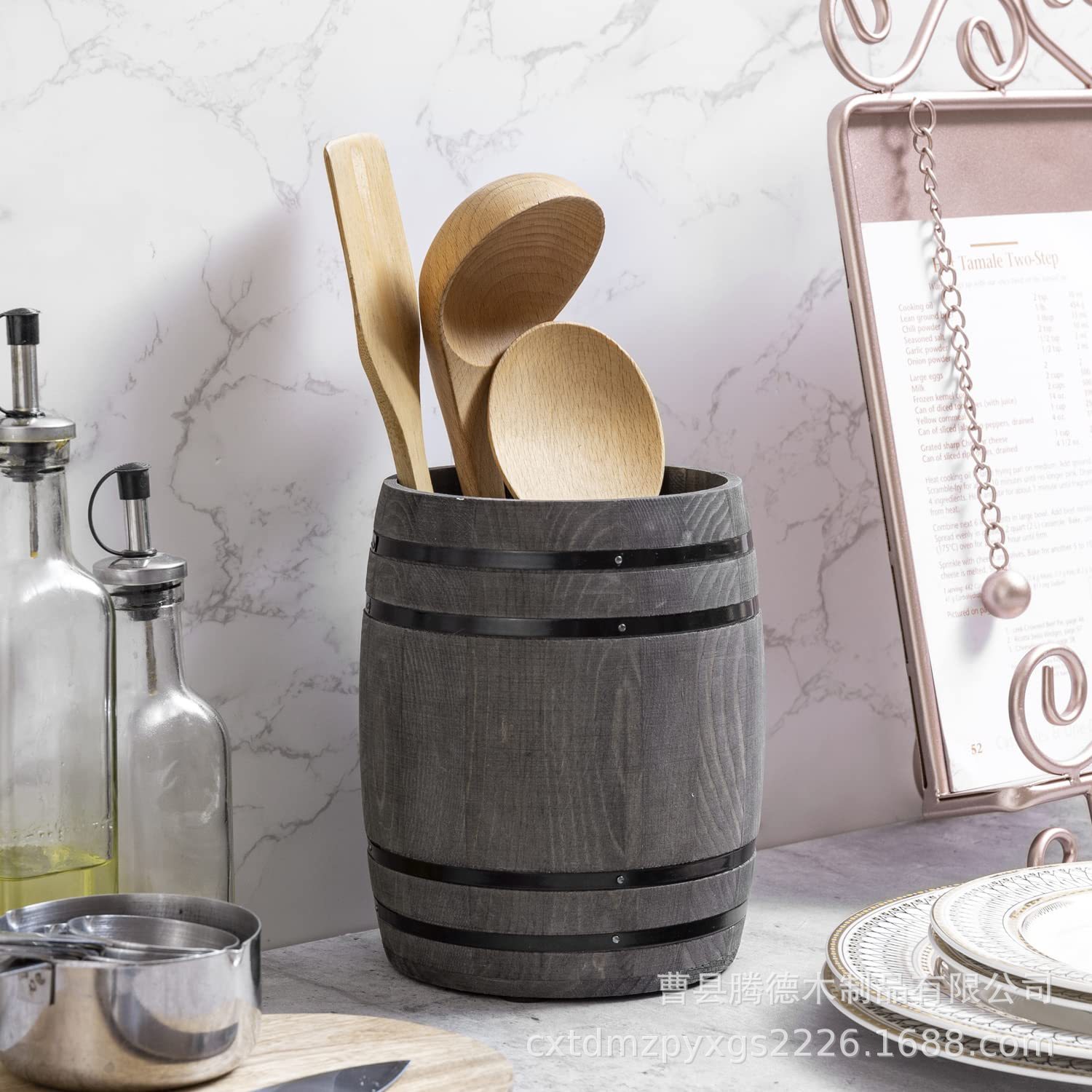 준비된 재고 나무 식기 보관함, 와인통 모양 나무 식기 보관함, 주방 조리대 식기 보관함스토어 가기