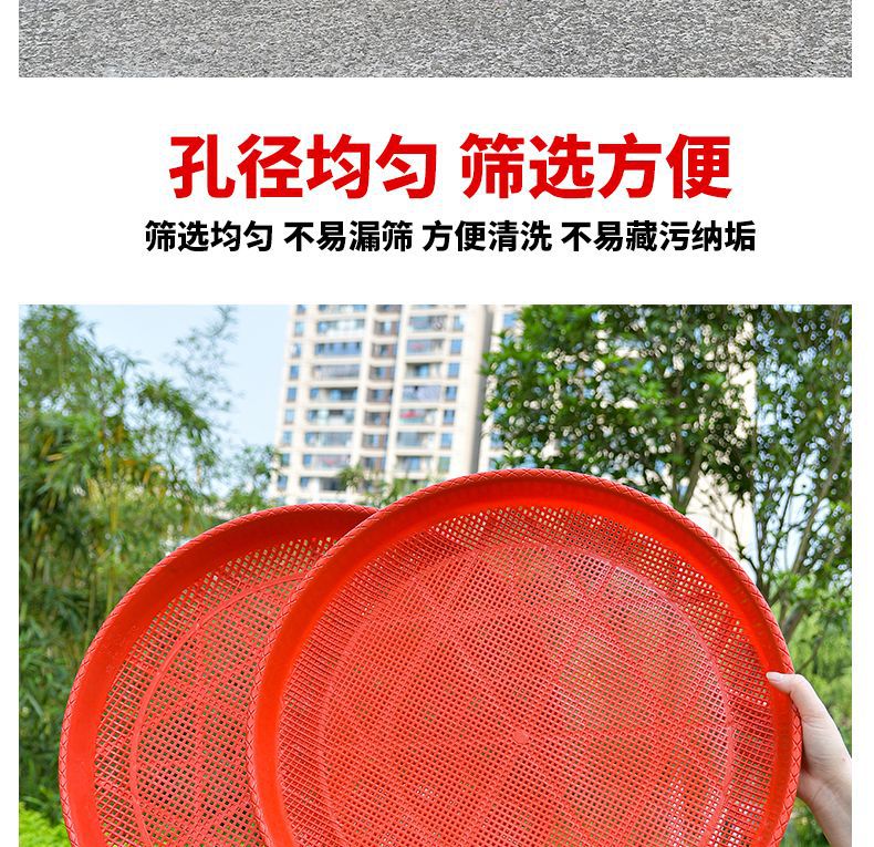 두꺼운 플라스틱 먼지 팬 대형 가구 라운드 체 쌀 곡물 체 마스크 비 다공성 먼지 팬 건조 멀티 사용 구식 체