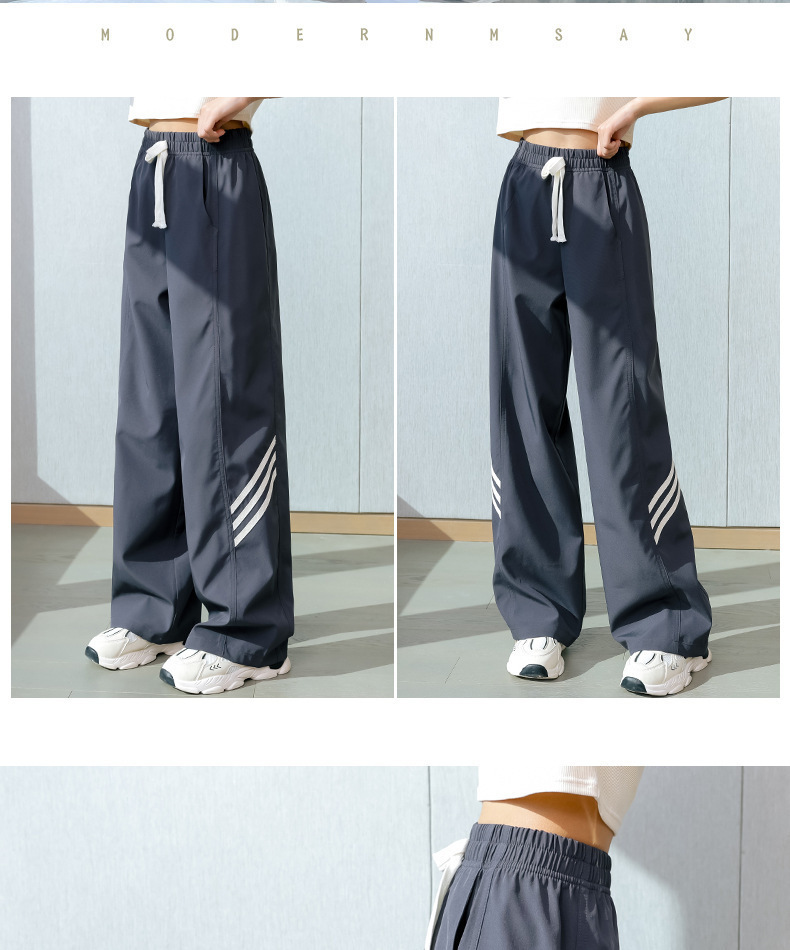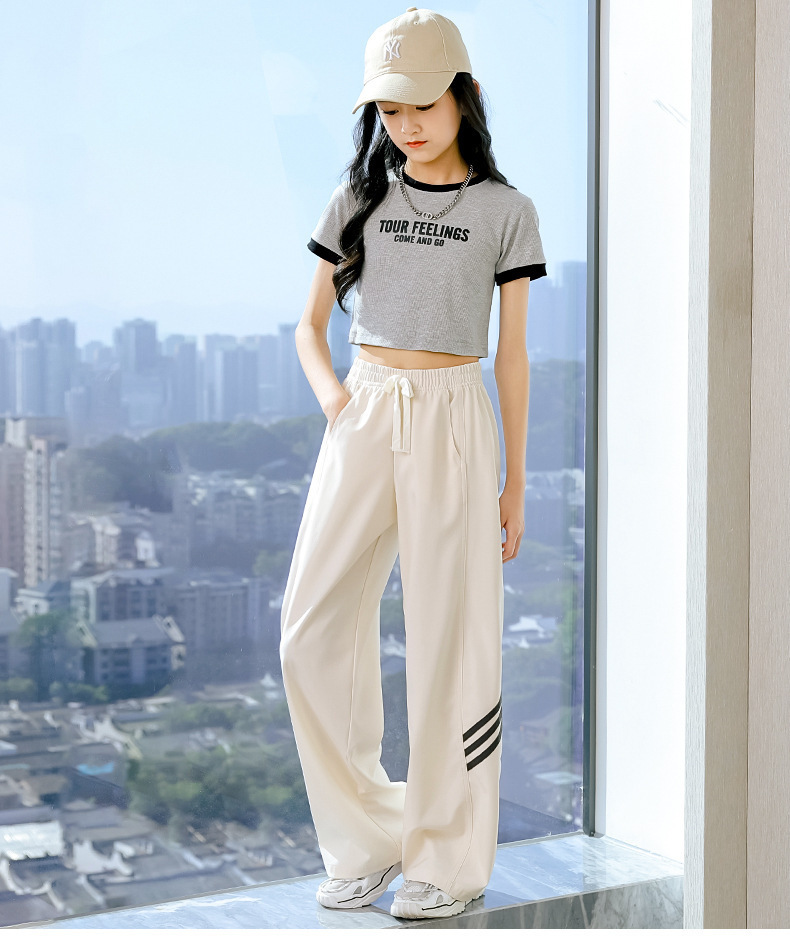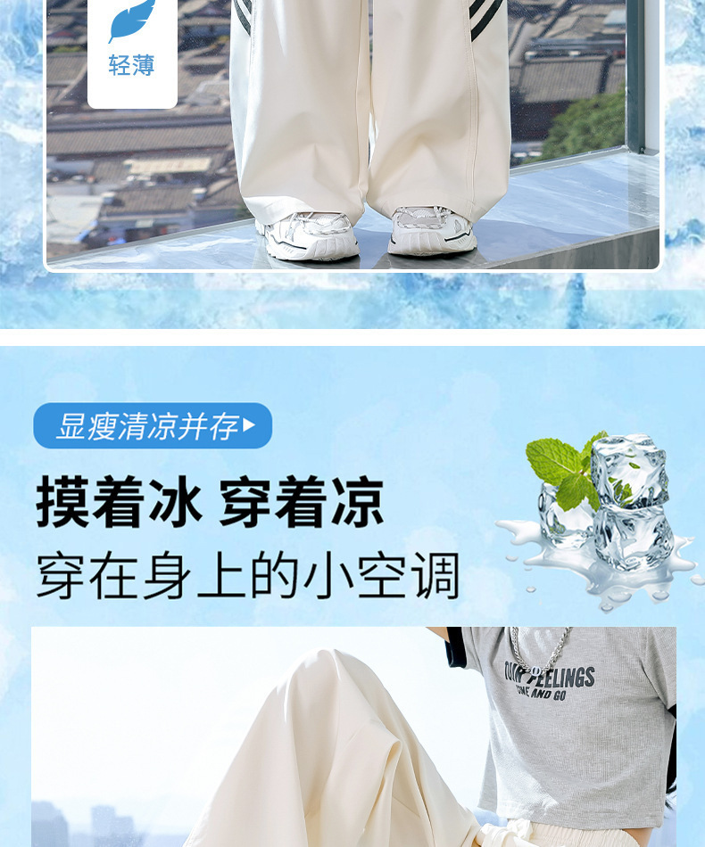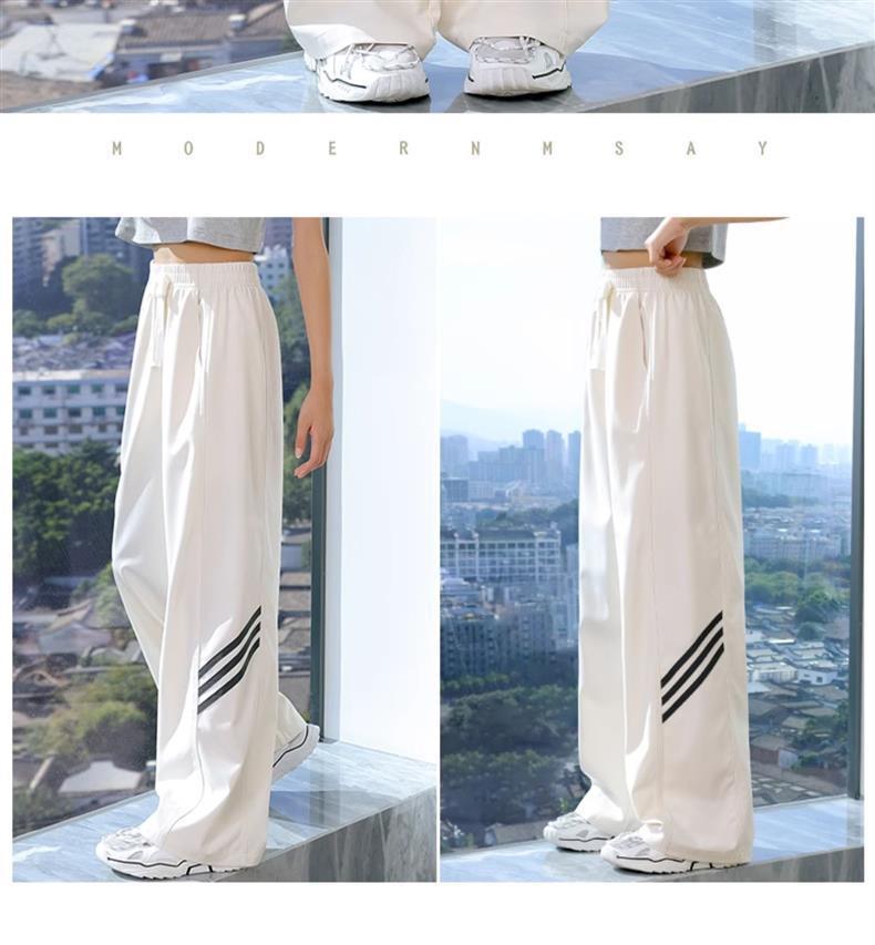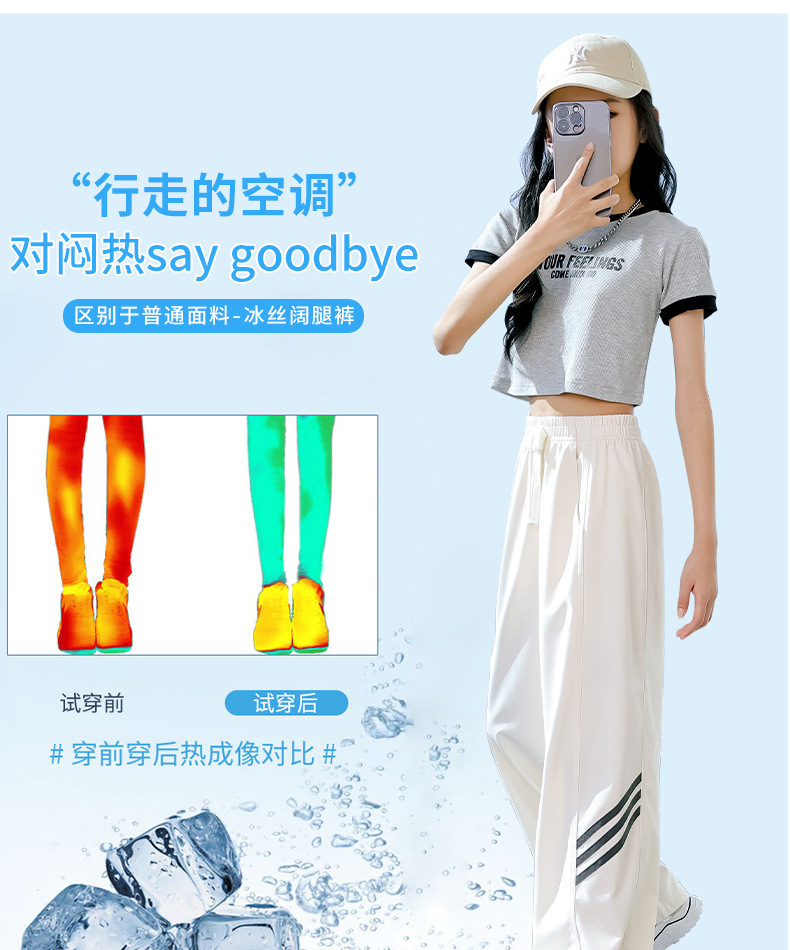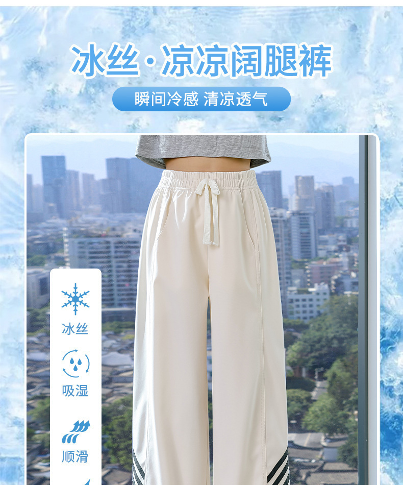 소녀 넓은 다리 바지 2024 새로운 어린이 바지 여름 얇은 얼음 실크 스트레이트 바지 큰 어린이 여성 여름 옷 빠른 건조스토어 가기
