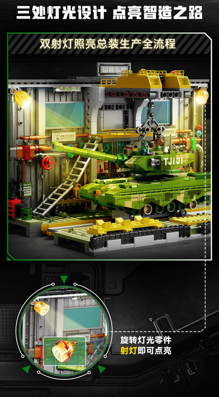 Senbao 203189 빌딩 블록 99A 주요 전투 탱크 조립 공장 장면 어린이 퍼즐 빌딩 블록 군사 장난감 선물