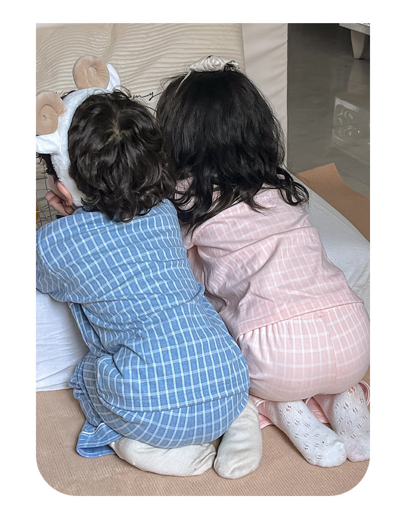 【무료 배송】아동용 가정복 세트 가을 신상 남녀 아동 체크무늬 긴팔 긴바지 아기 드롱 잠옷스토어 가기