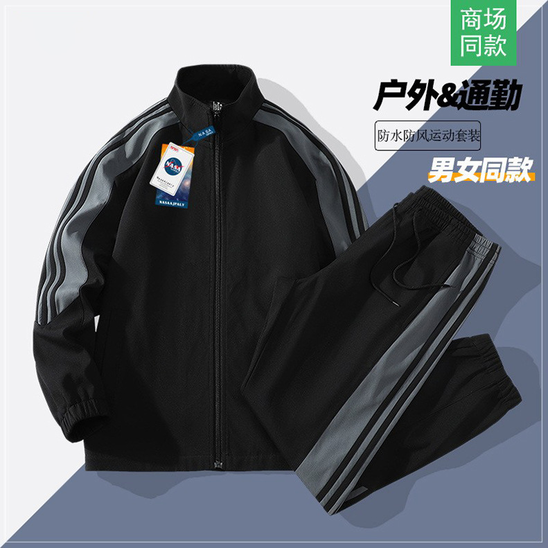 NASA 스포츠 세트 남성 자켓 봄과 가을 줄무늬 자켓 남자 어울리는 옷 투피스 세트 남성 패션 브랜드 방풍