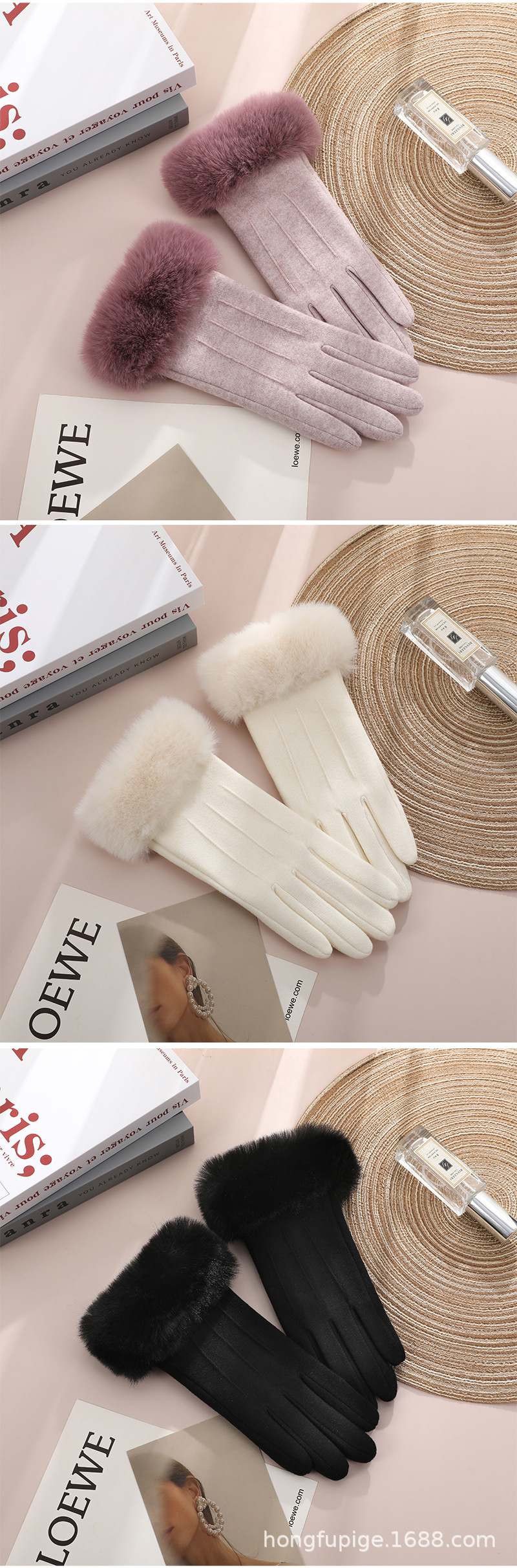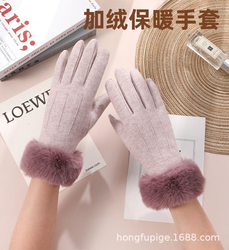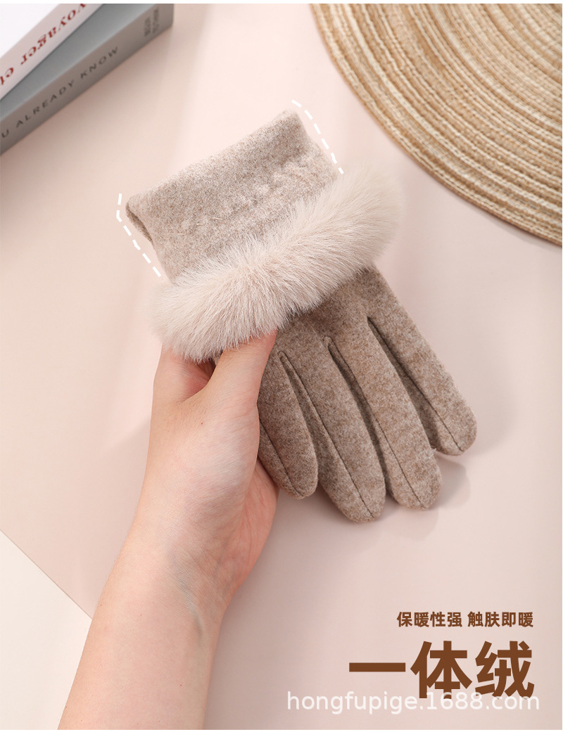 따뜻한 장갑 여성의 겨울 두꺼운 신선한 양 승마 머리 냉장 야외 방풍 열 저장 터치 스크린 장갑